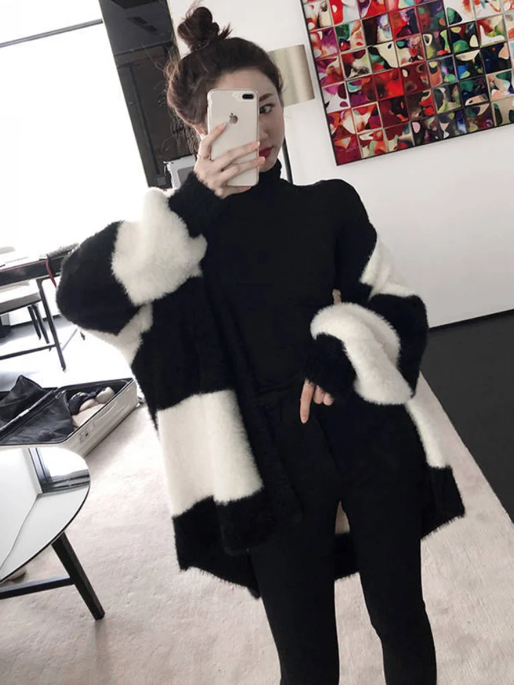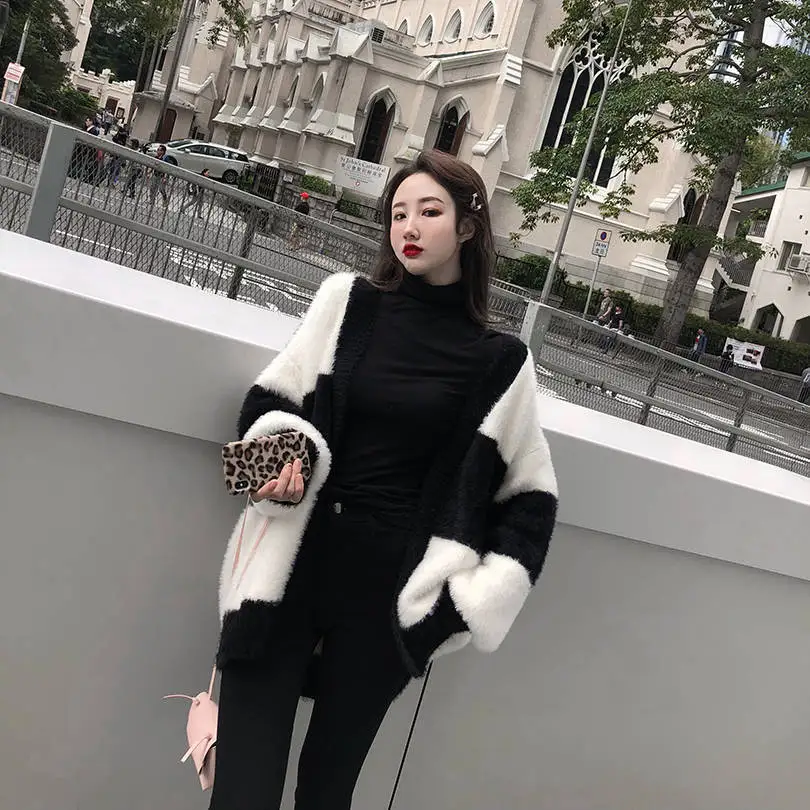 Yipinpay Mink Fur Coat Women 2023 Autumn and Winter New Loose Outerwear Female Jacket