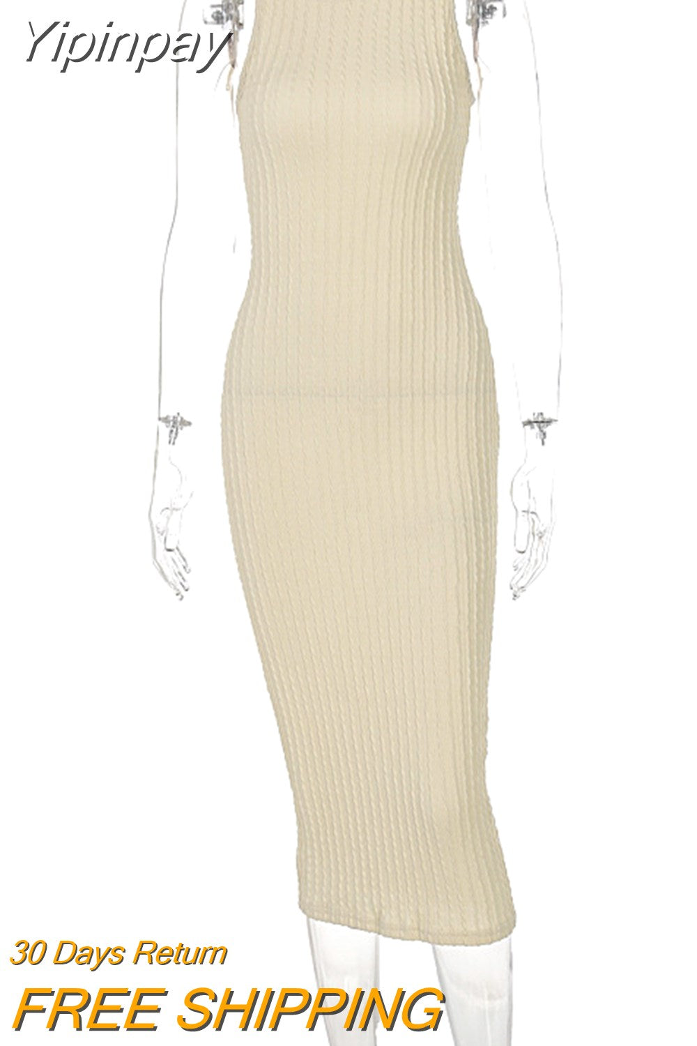 Yipinpay Mo 2023 Bodycon Sleeveless Knitting Dress Mini Women Off Shoulder Sexy Club Party Dresses Black Elegant Summer Vestidos
