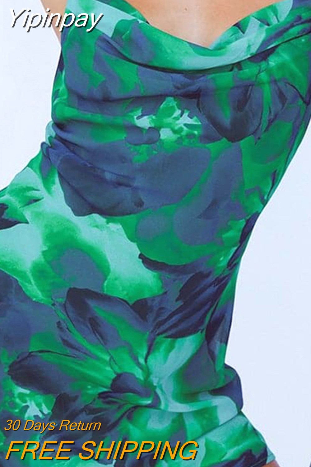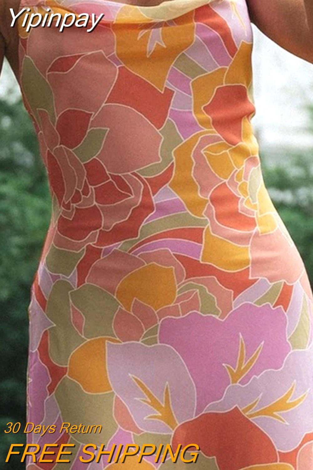 Yipinpay Mo 2023 New Print V Neck Party Mini Dress Backless Spaghetti Strap For Women Sleeveless Club Sexy Slim Dresses Vestidos