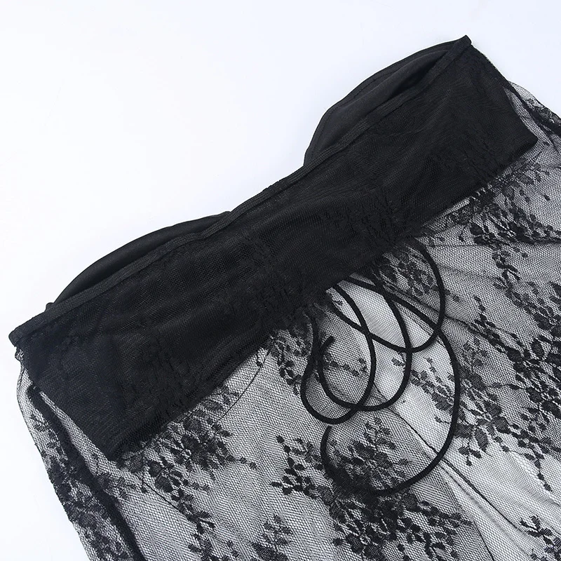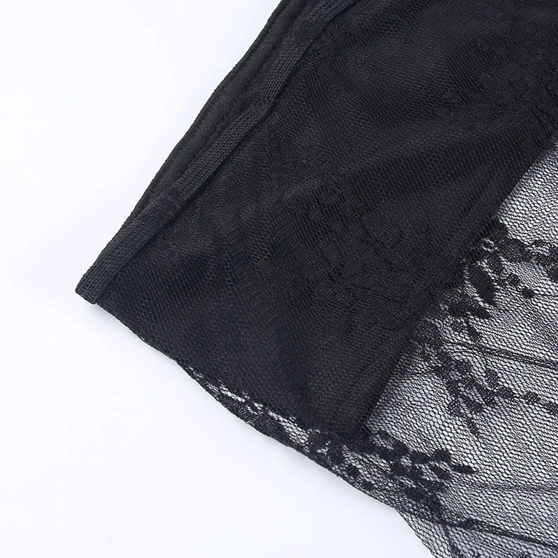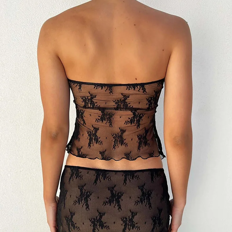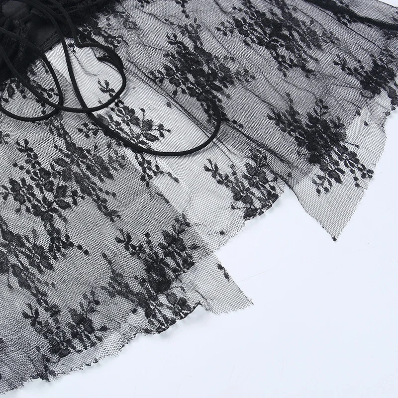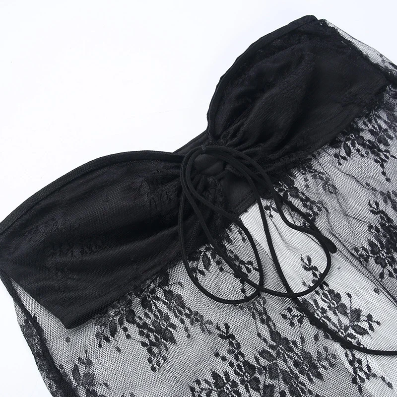 Yipinpay MO 2023 Slim Ruched Mesh Patchwork Lace Crop Tops Women Sexy Bandage Off-shuolder Backless Cropped Top Vest