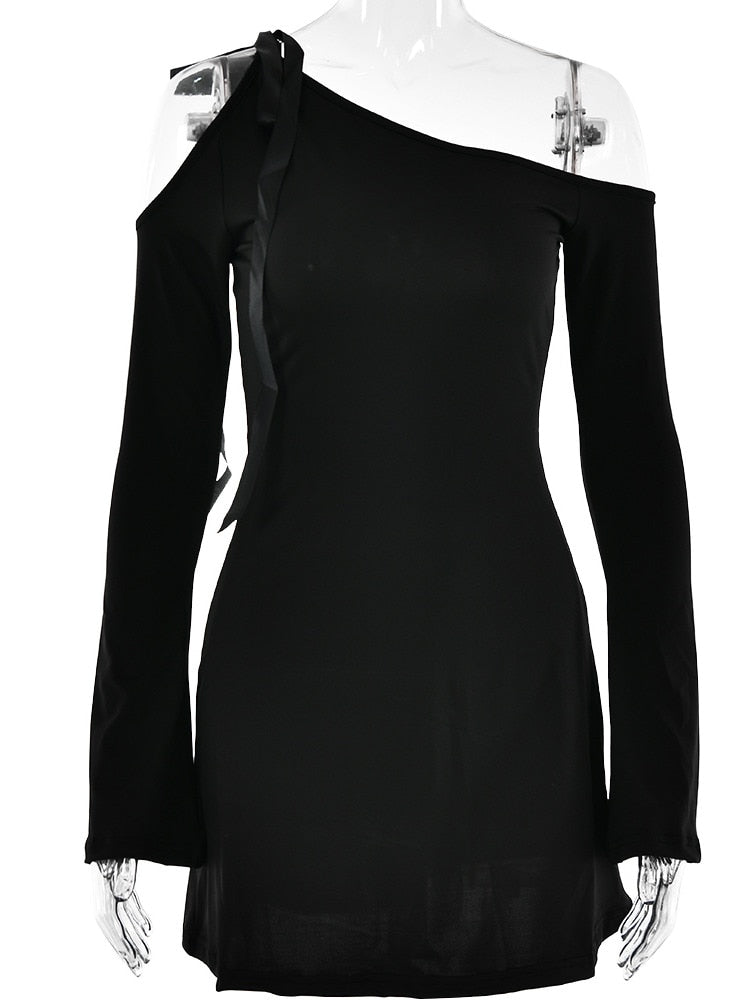 Yipinpay MO 2023 Summer Sexy Strapless Longsleeve Hollow Out Mini Dress For Women Bandage Slim Inclied Shoulder Dress Party Night