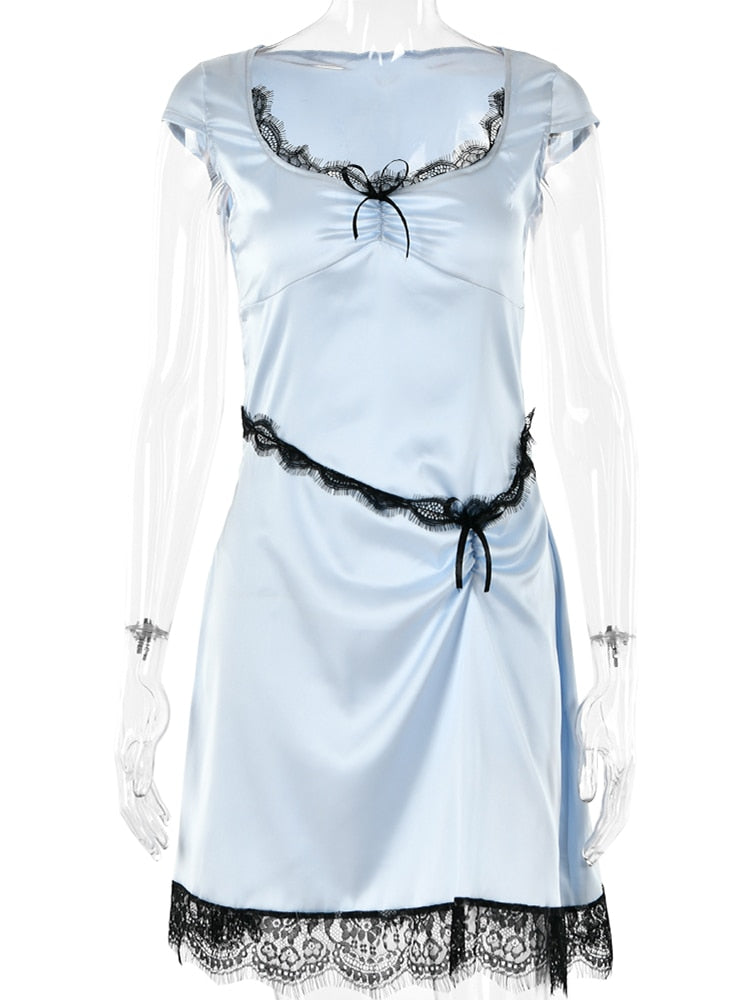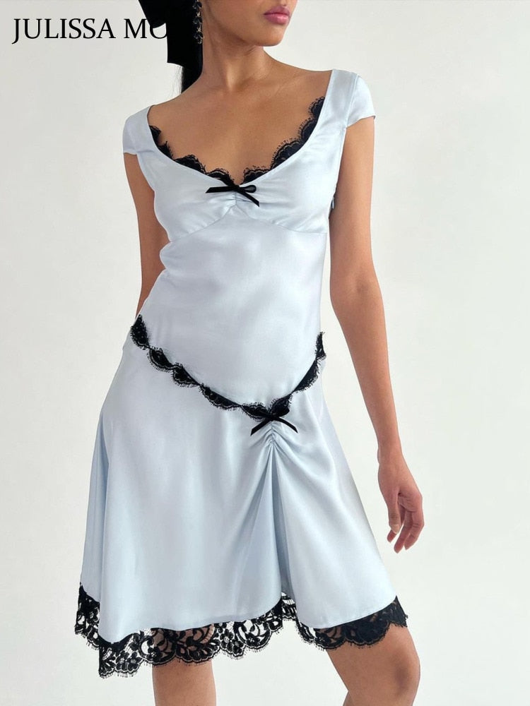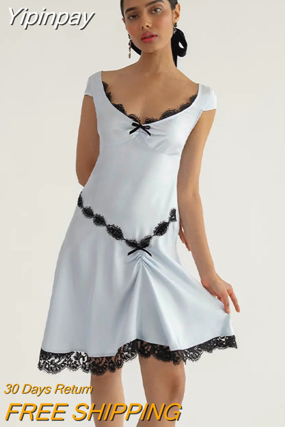 Yipinpay MO Elegant Lace Sleeveless Bow Satin Sexy Dress for Women Club Party Backless Tank Dresses Skinny Fashion Summer 2023
