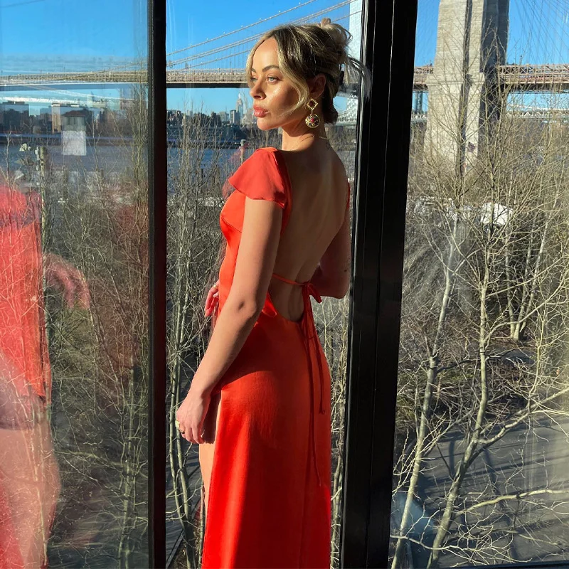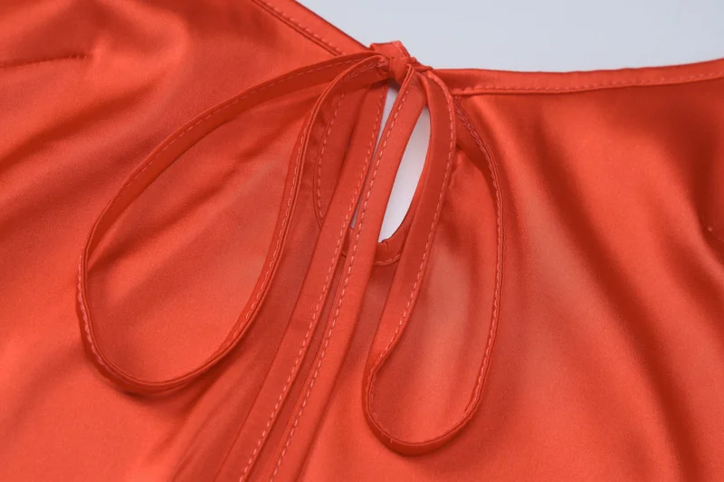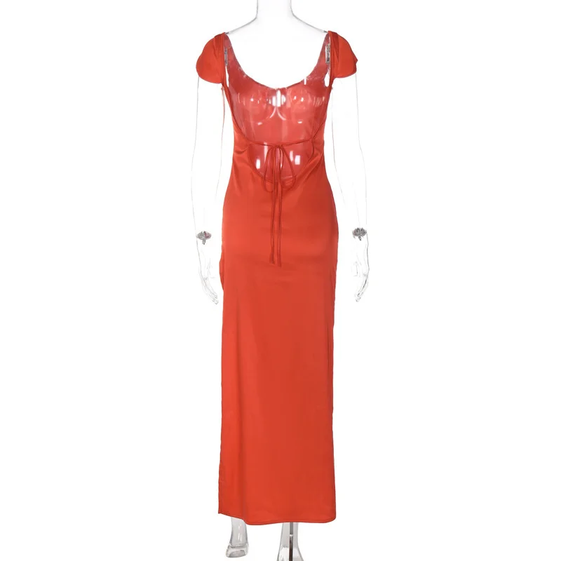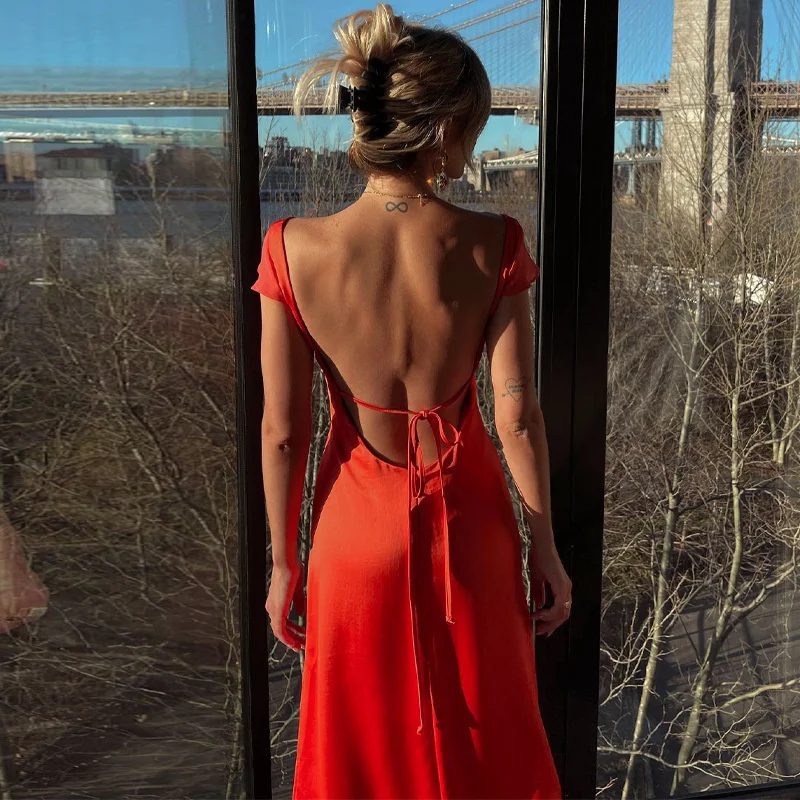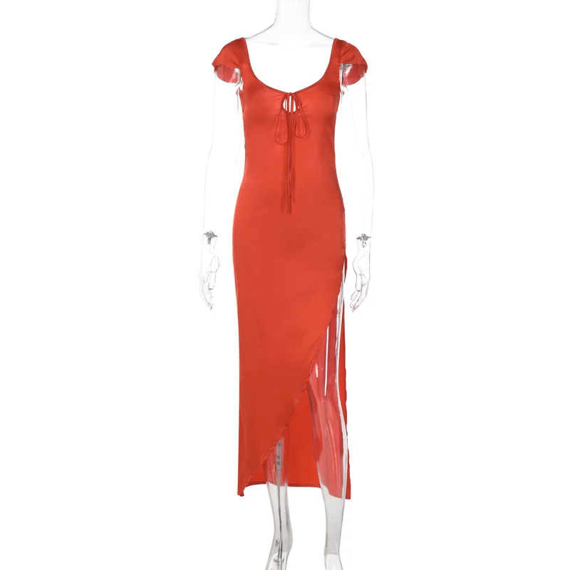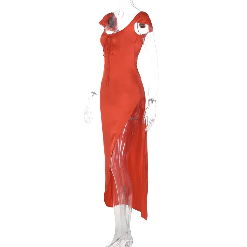Yipinpay MO Elegant Satin Lace-up Split Midi Dress For Women'clothing Backless Slim Short Sleeve Evening Dresses Holiday Vestido