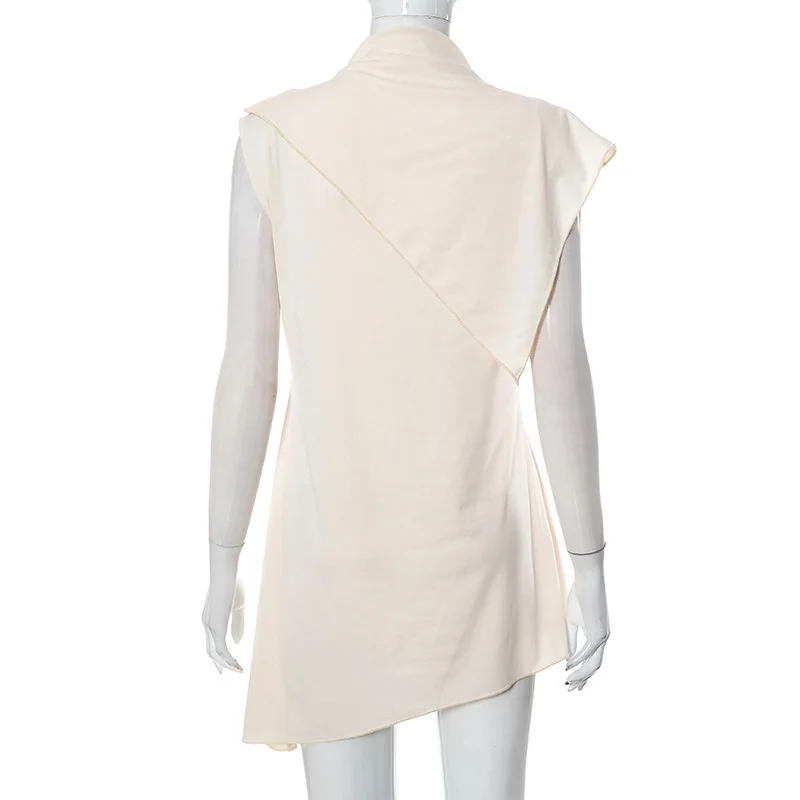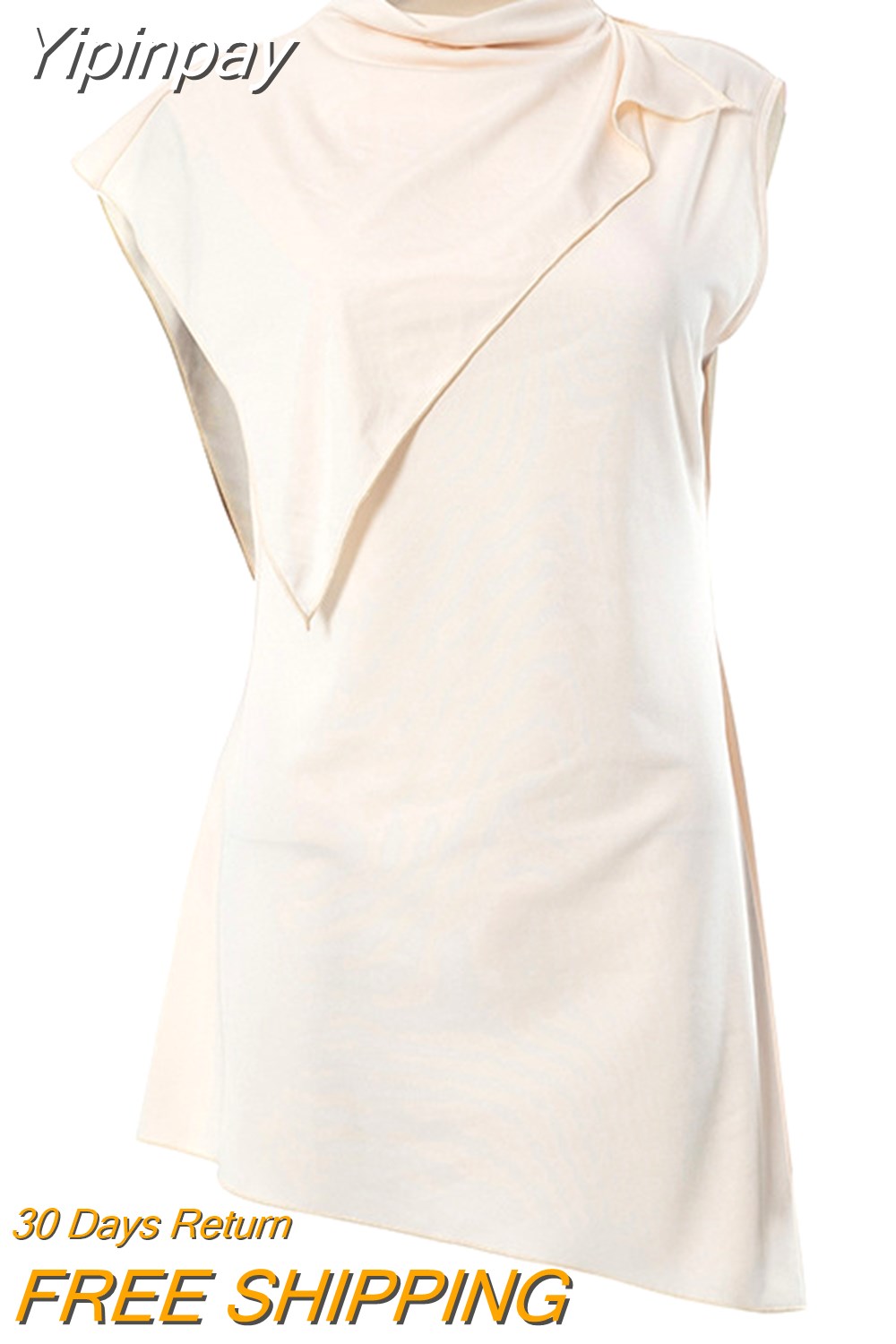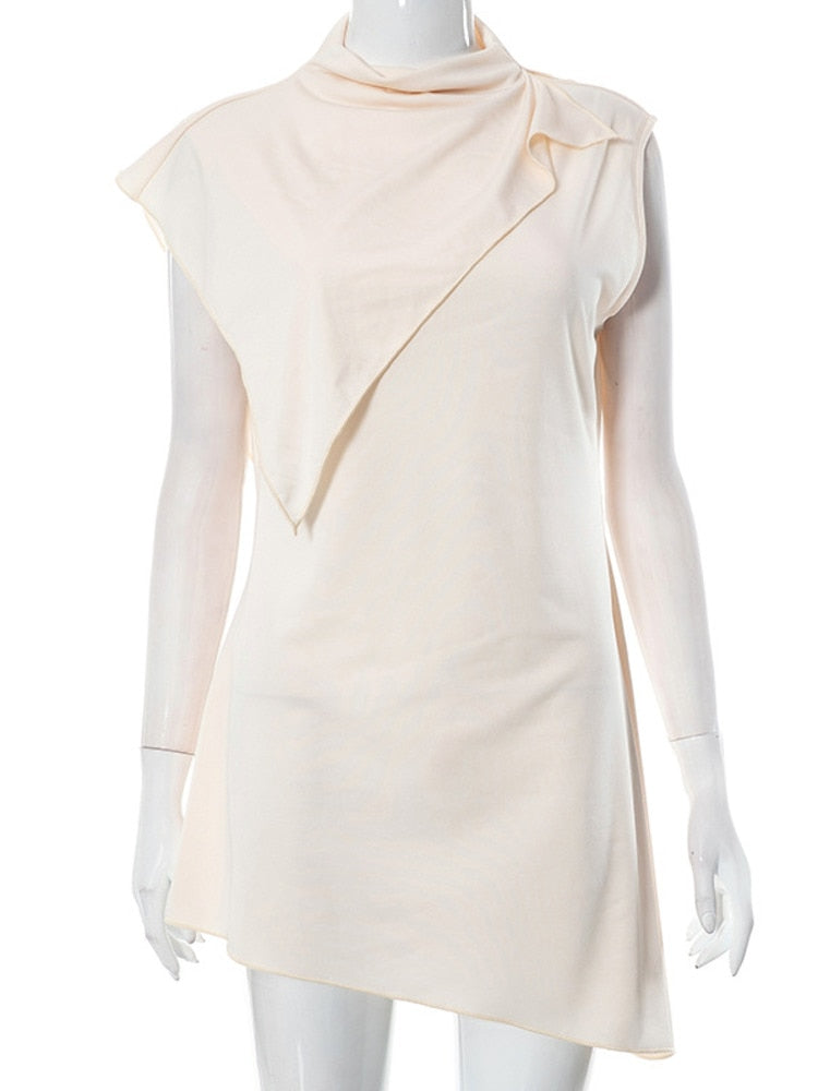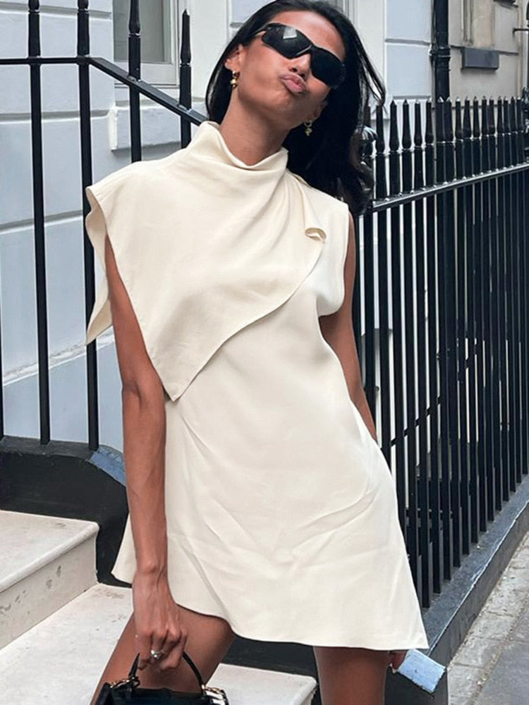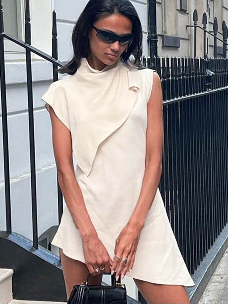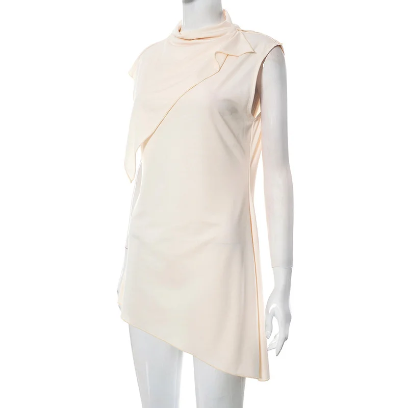 Yipinpay MO Fashion Pile Collar Irregular Solid Sleeveless Mini Dress For Women's Summer Outfits Chic Shawl Slim Sexy Dress 2023