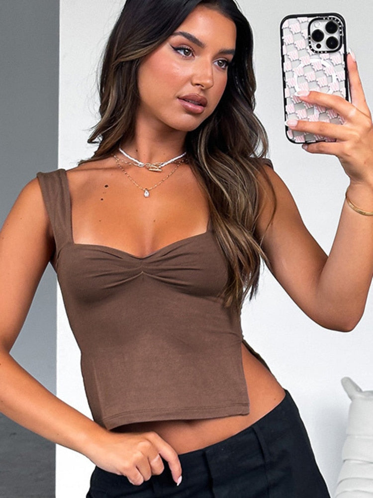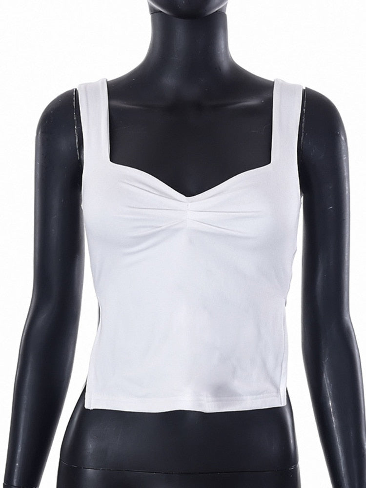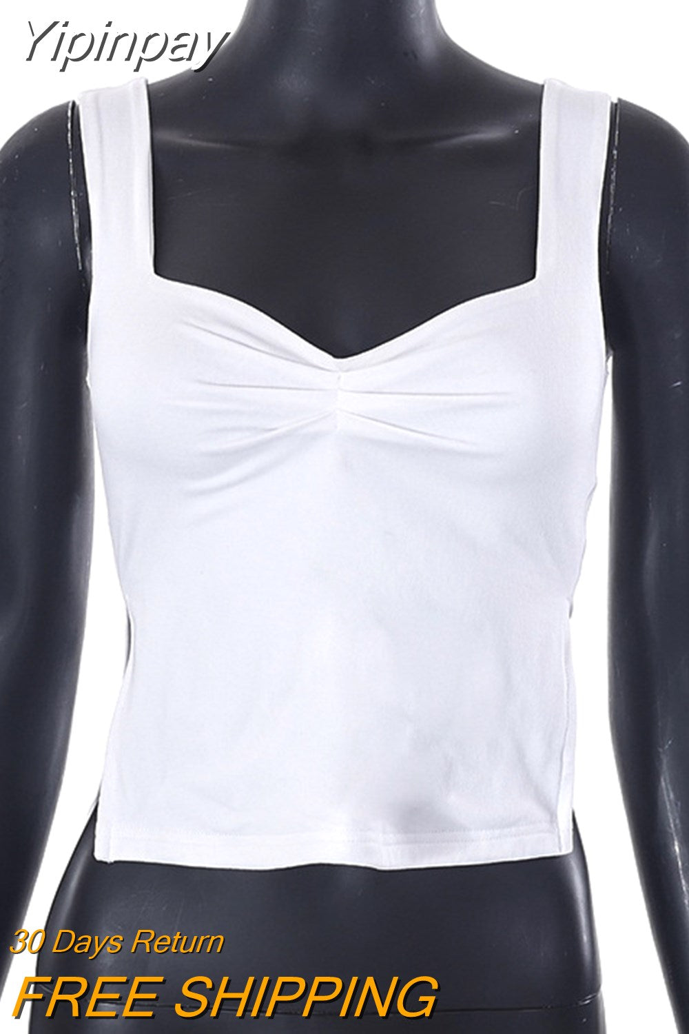 Yipinpay MO Sexy Split Backless V-neck White Crop Top Women 2023 Summer Party Club Sleeveless Spaghetti Strap Slim T-shirt Ladies