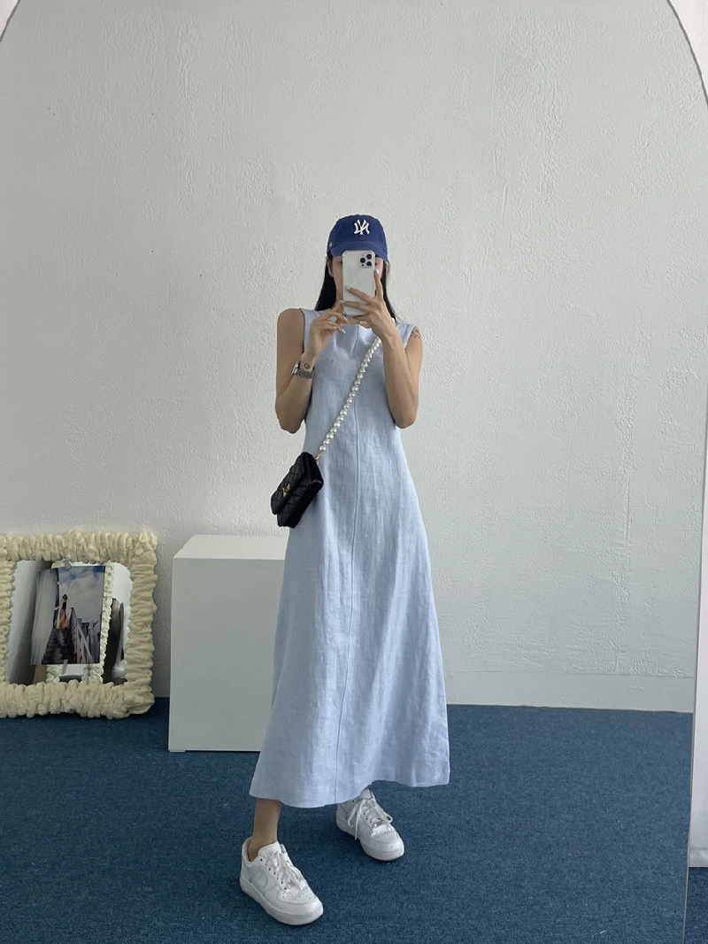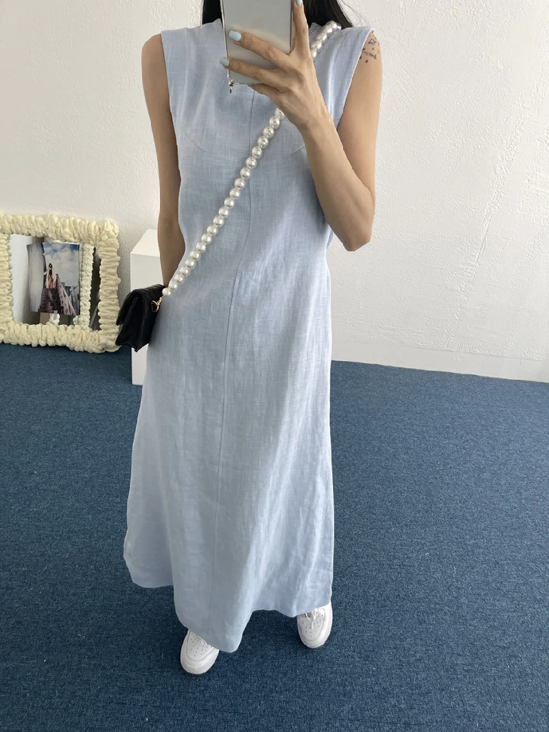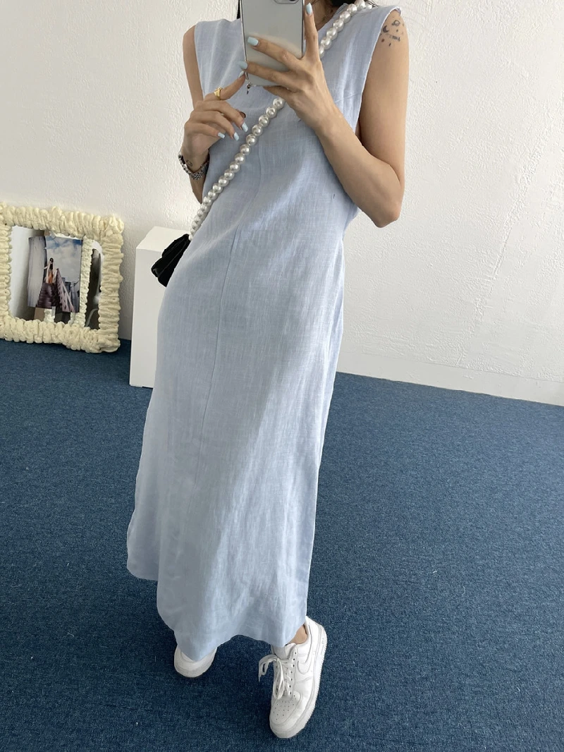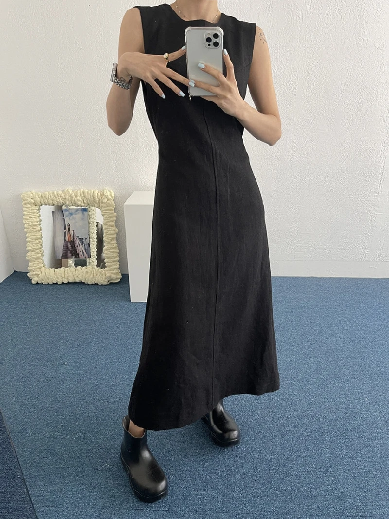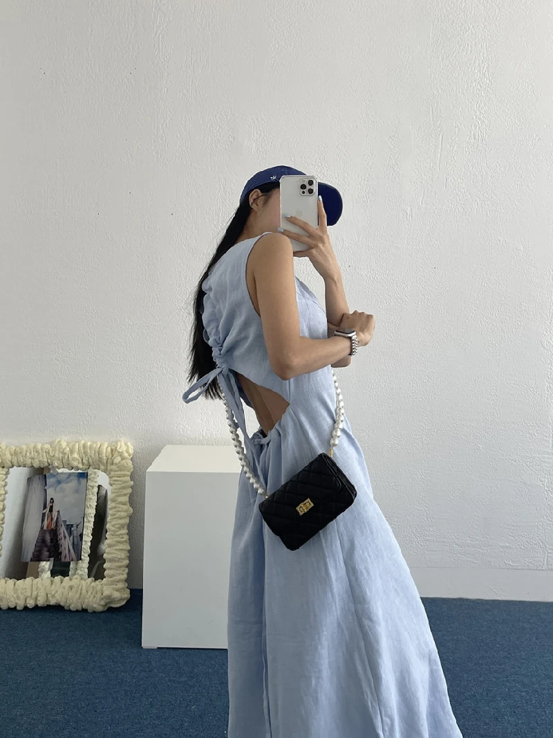 Yipinpay Neck Back Lace Up Ruffle Open Back Sleeveless Dress Women Casual Vestidos Mujer Black White Vest Minimalism Summer Dress