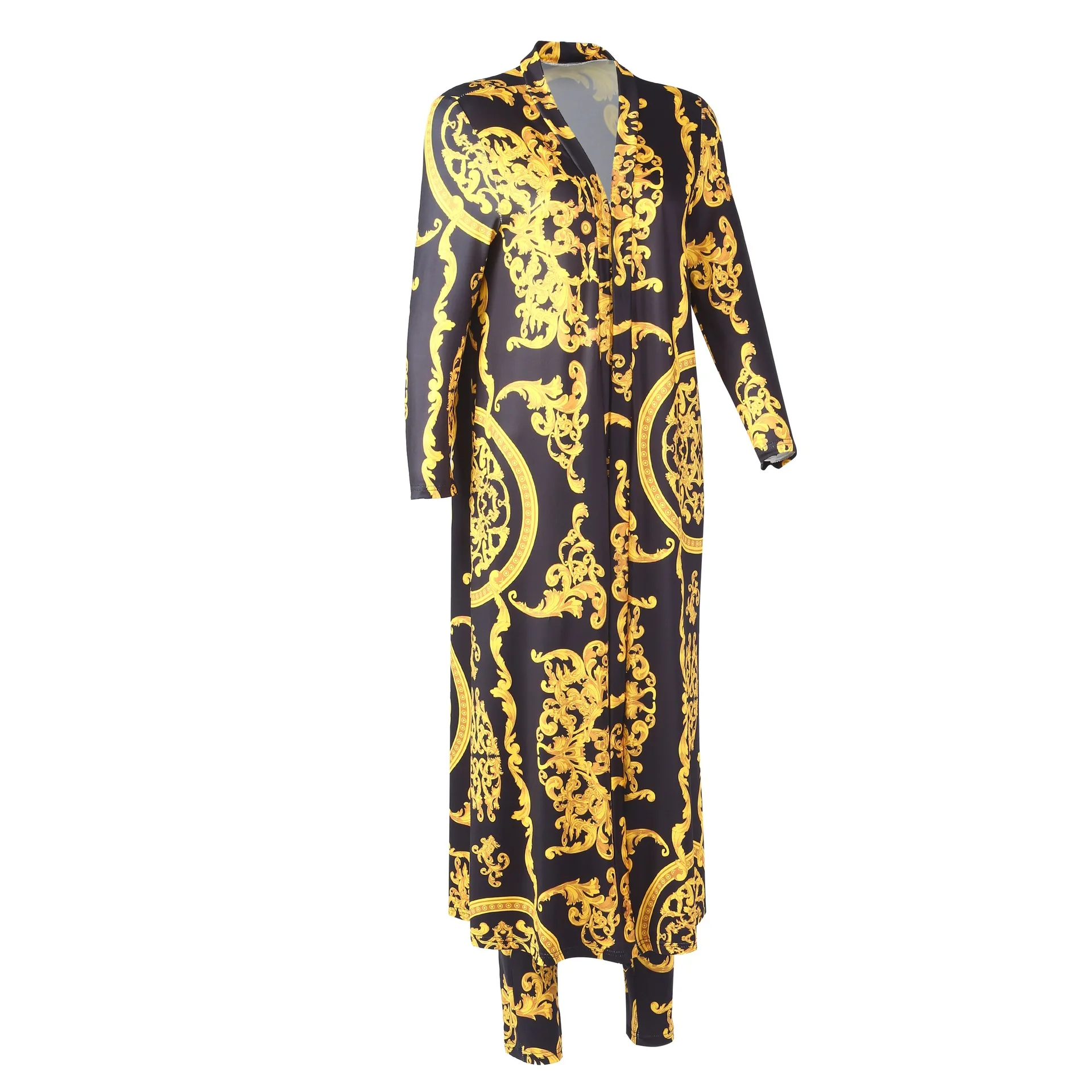 Yipinpay New African Print Elastic Bazin Baggy Pants Rock Style Dashiki SLeeve Famous Suit For Lady/women coat and leggings 2pcs/se