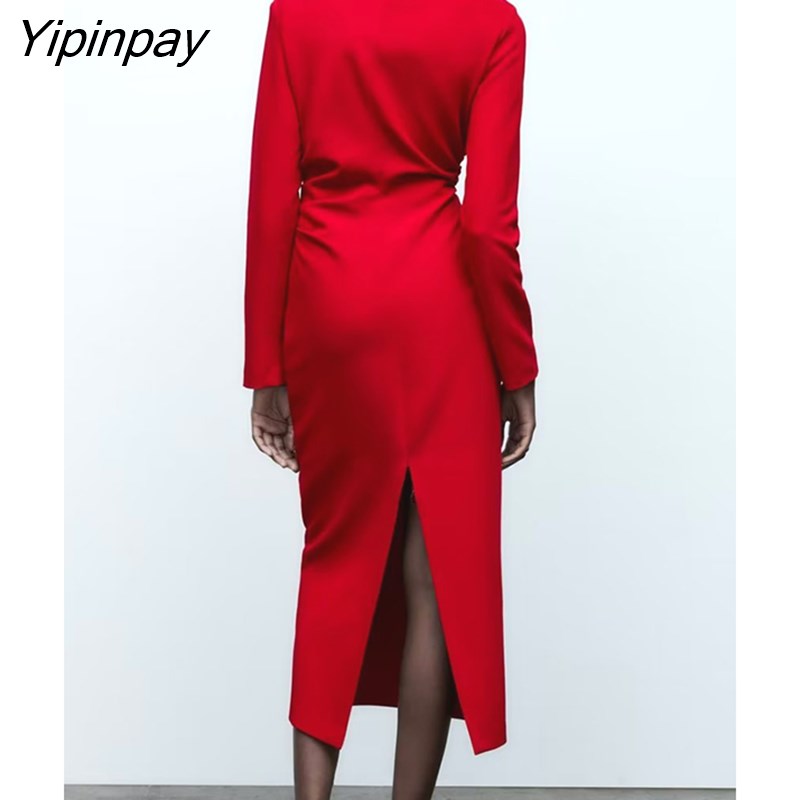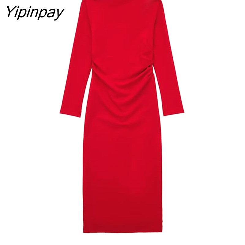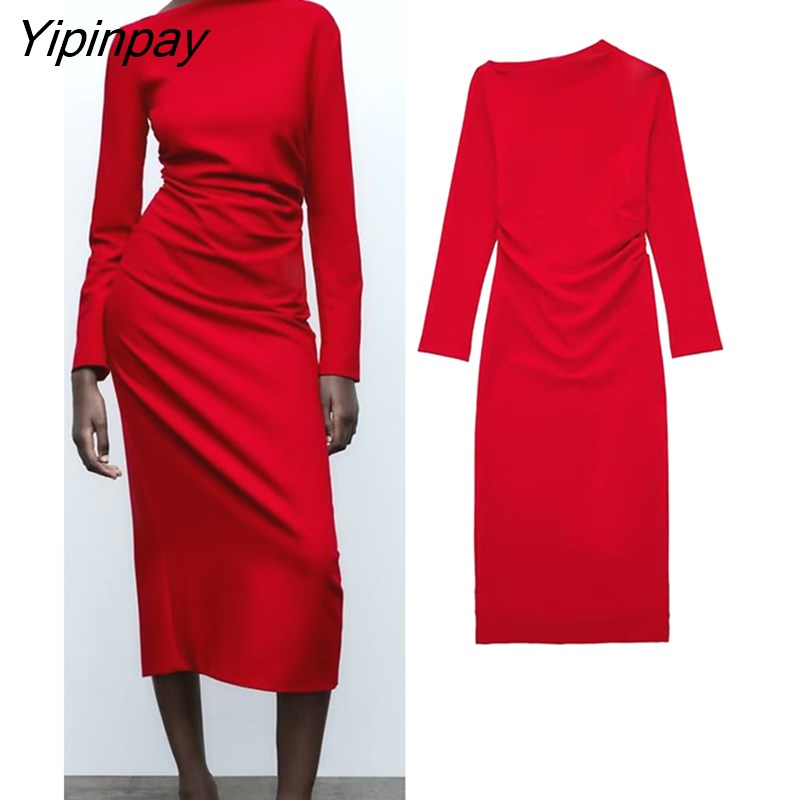 Yipinpay New Autumn Women Elegant Long Dresses 2023 Female Fashion Asymmetrical Collar Vestidos Long Sleeve Soft Pullovers