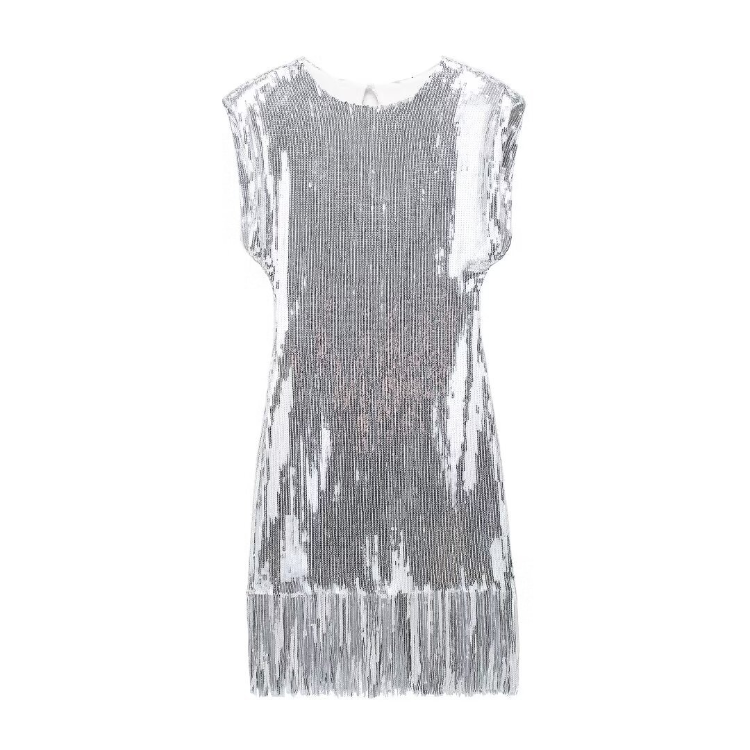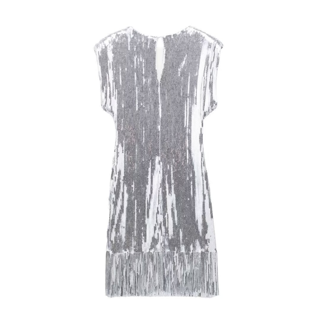 Yipinpay New Beaded Tassel Trim Mini Dress 6318251