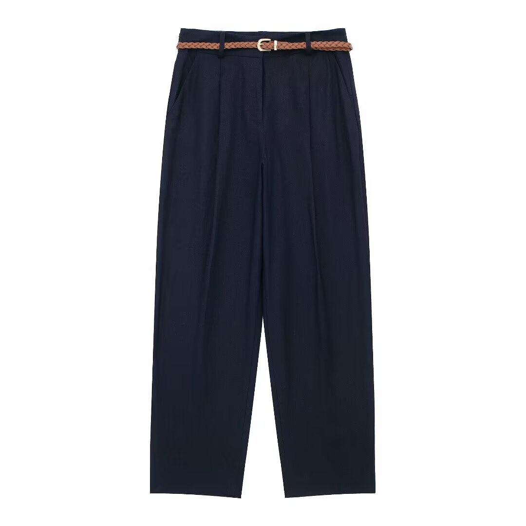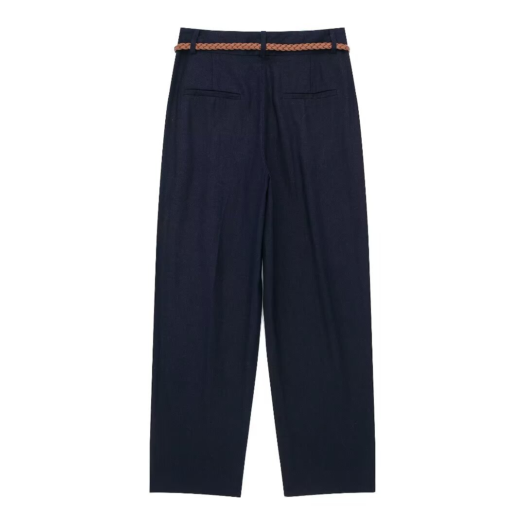 Yipinpay New Braided Ribbon Decorative Blended Straight Leg Pants 2753028