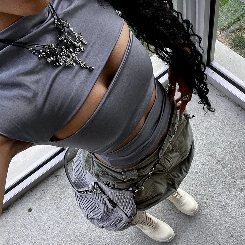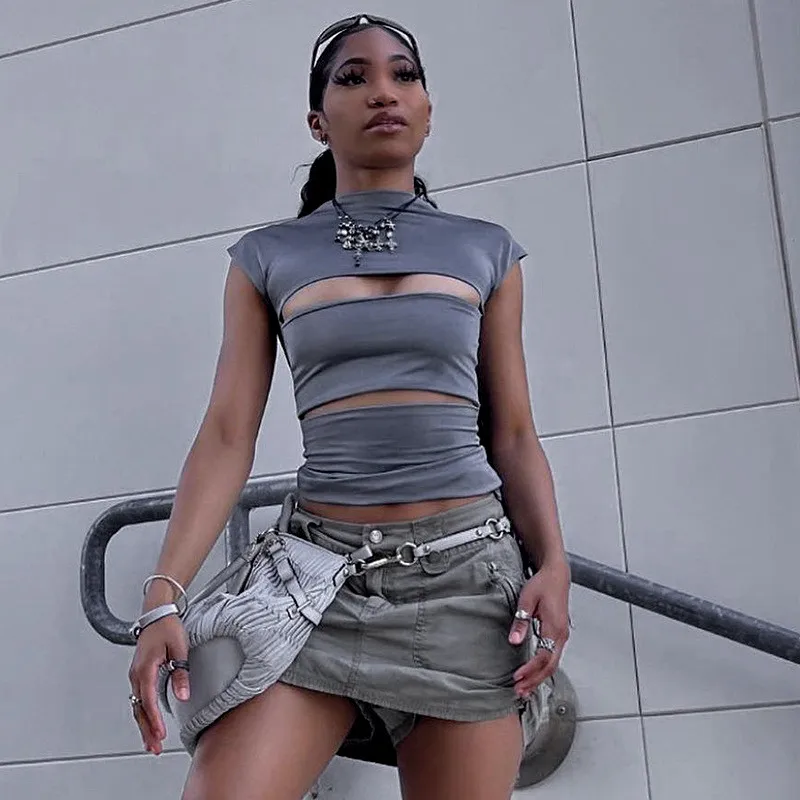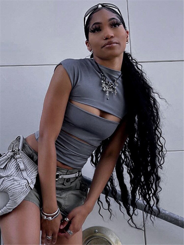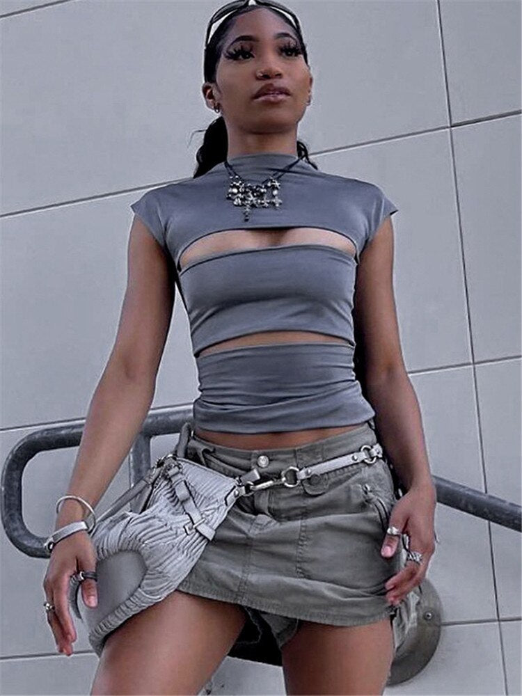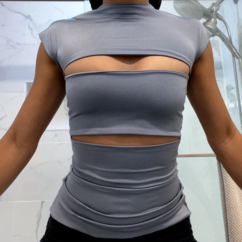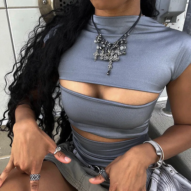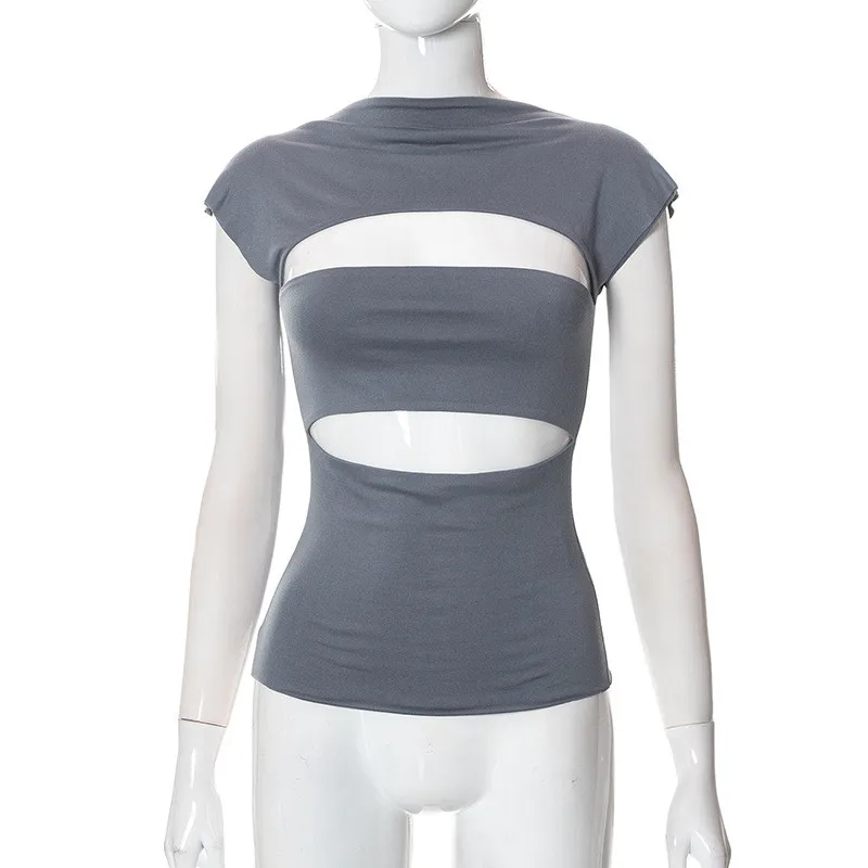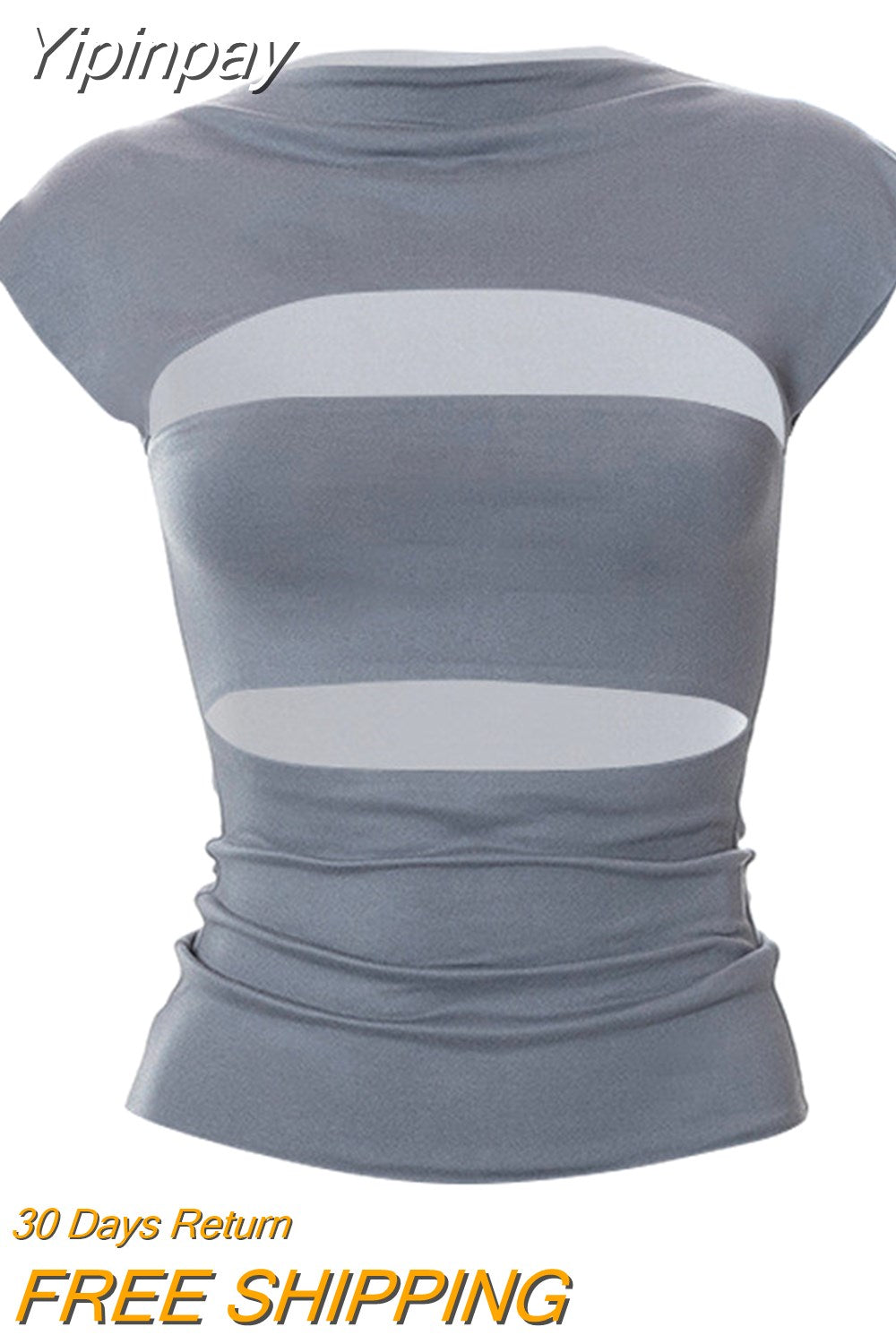 Yipinpay New Casual Hollow Out Blouse Women Autumn Solid Bodycon T shirt Ladies Street Office Women O neck Clothing