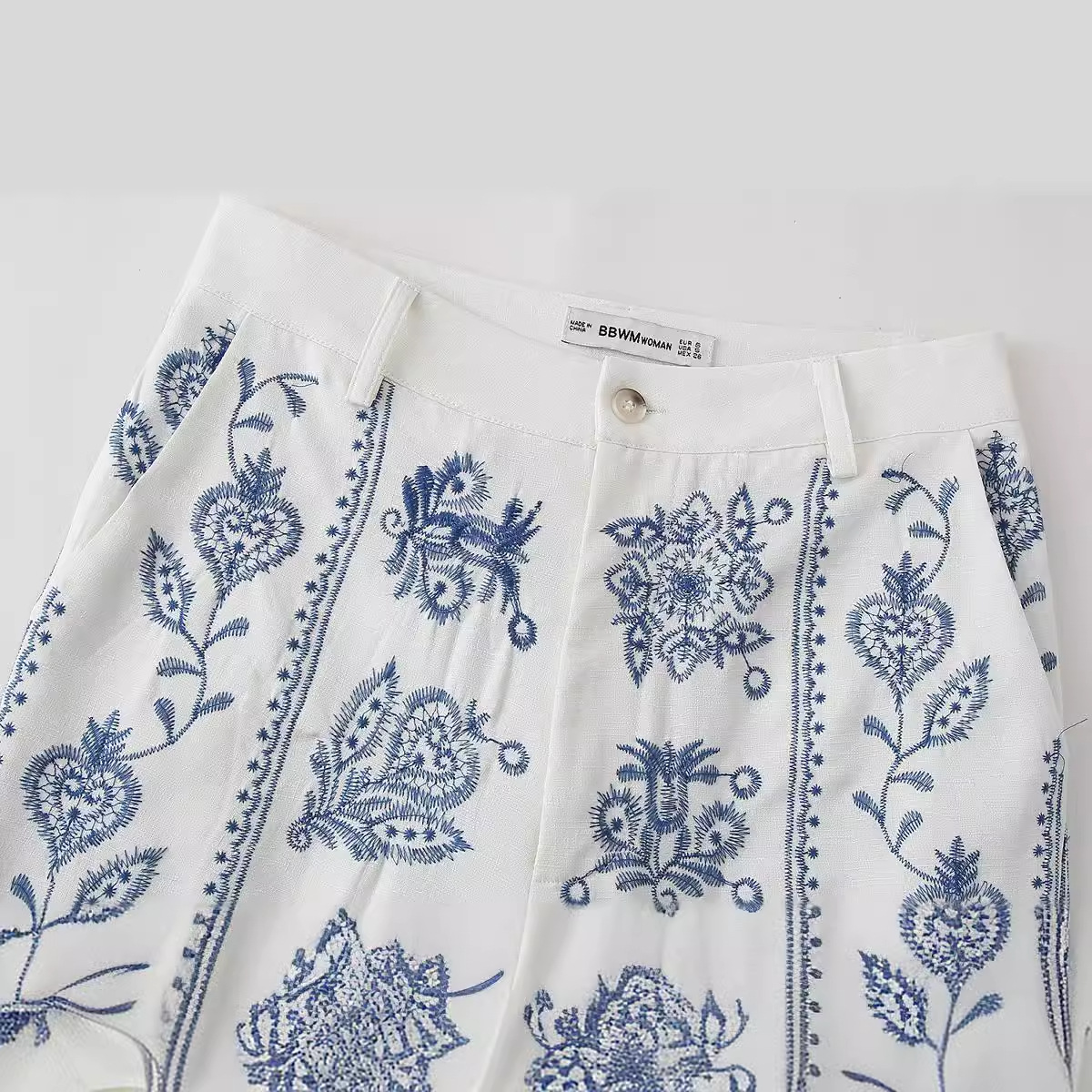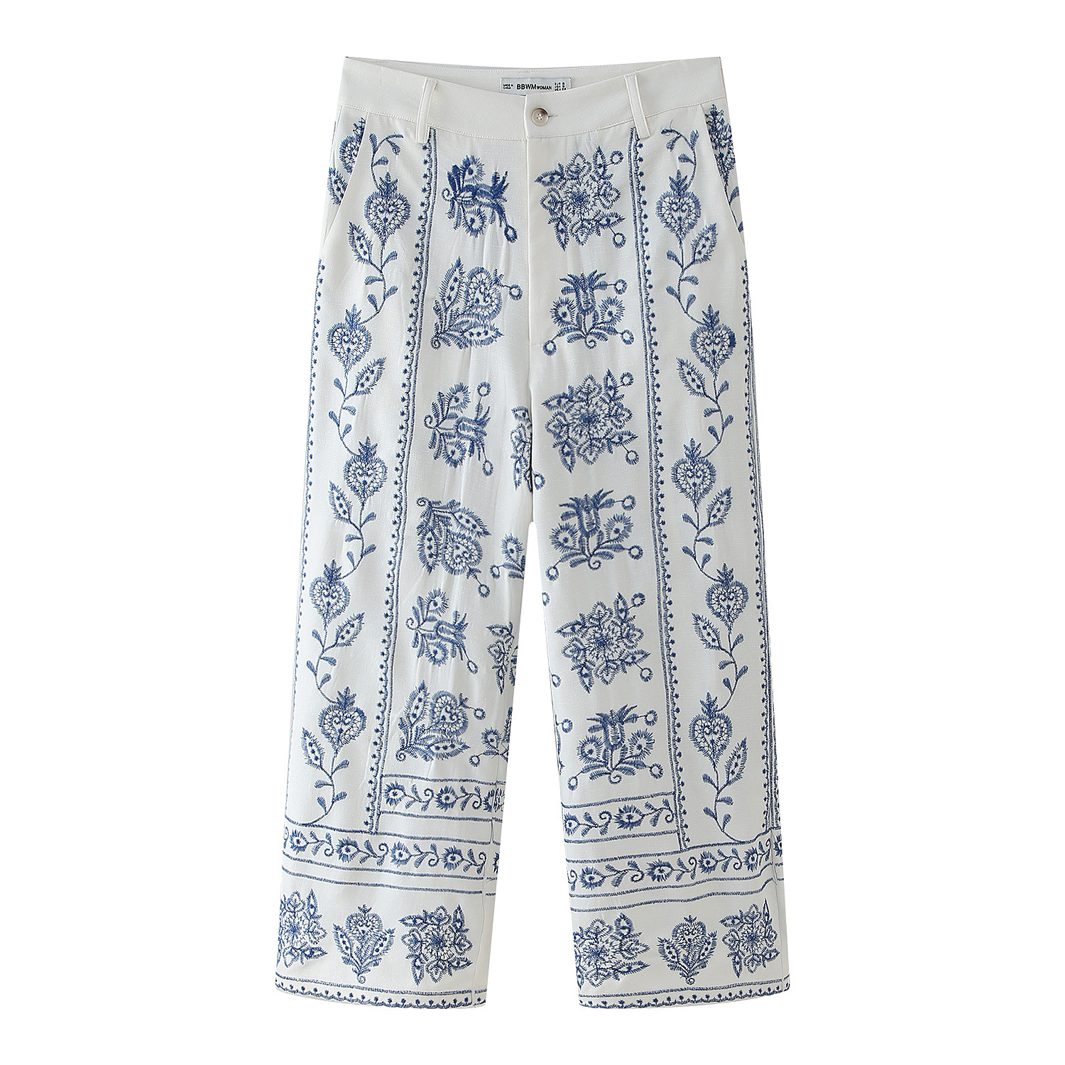 Yipinpay New Embroidery Fashion Baggy Trousers Wide-Legged Pants 2731240