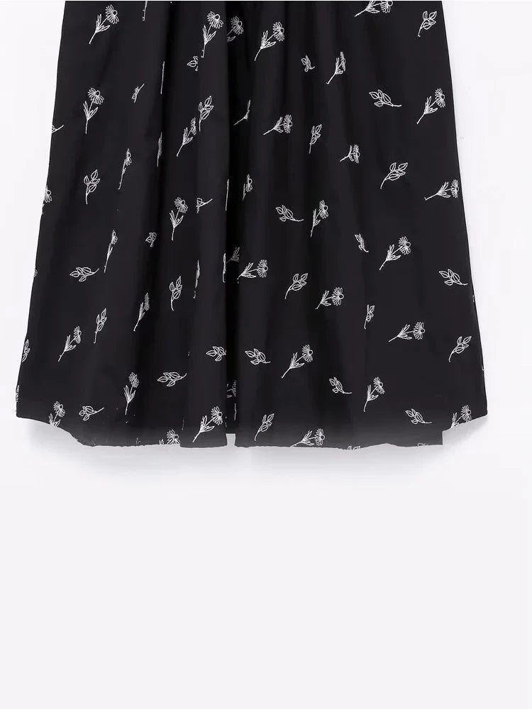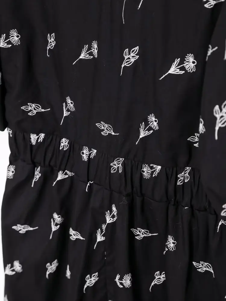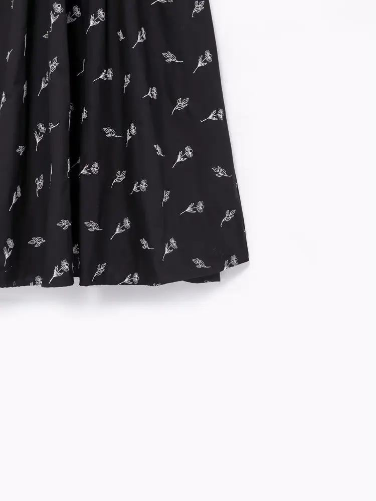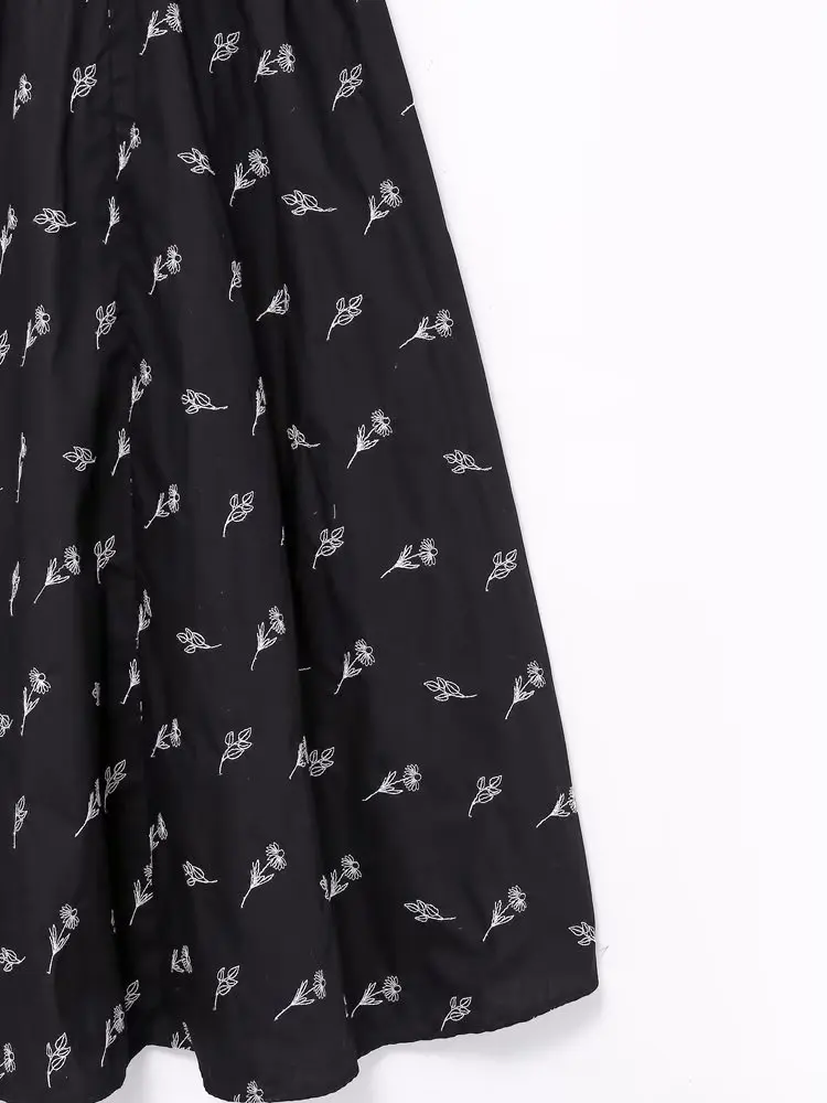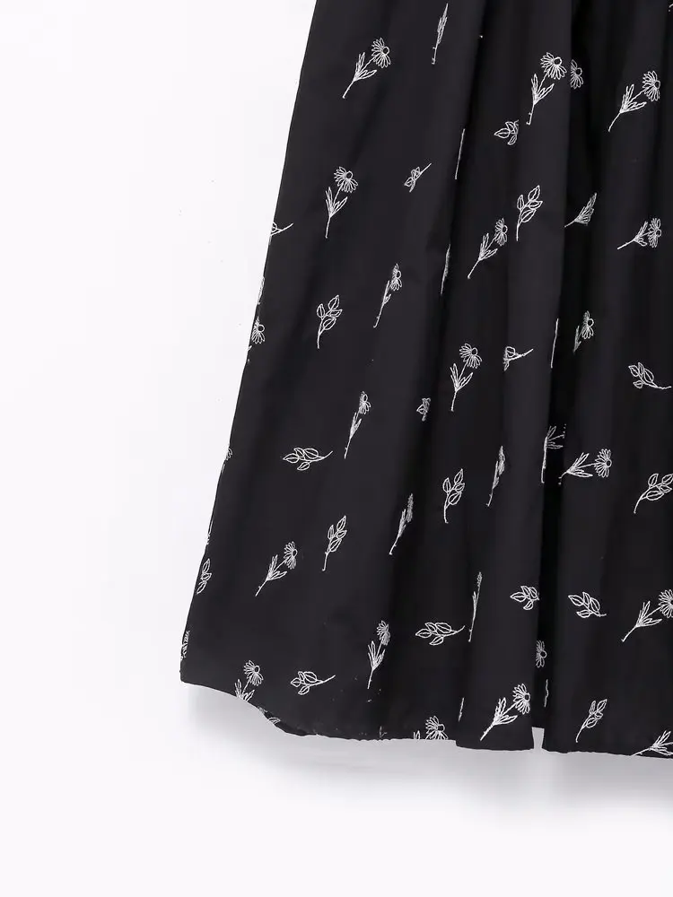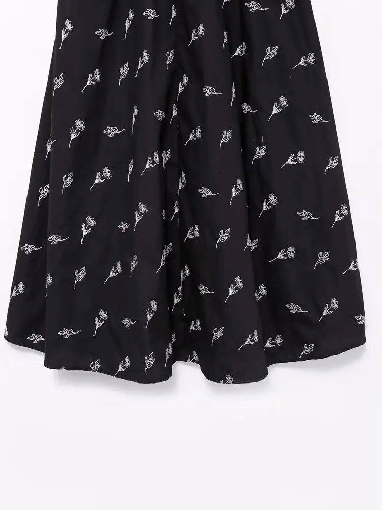 Yipinpay New Fashion Women Floral Embroidery Black Midi Dress Vintage Puff Sleeve O Neck Female Dress