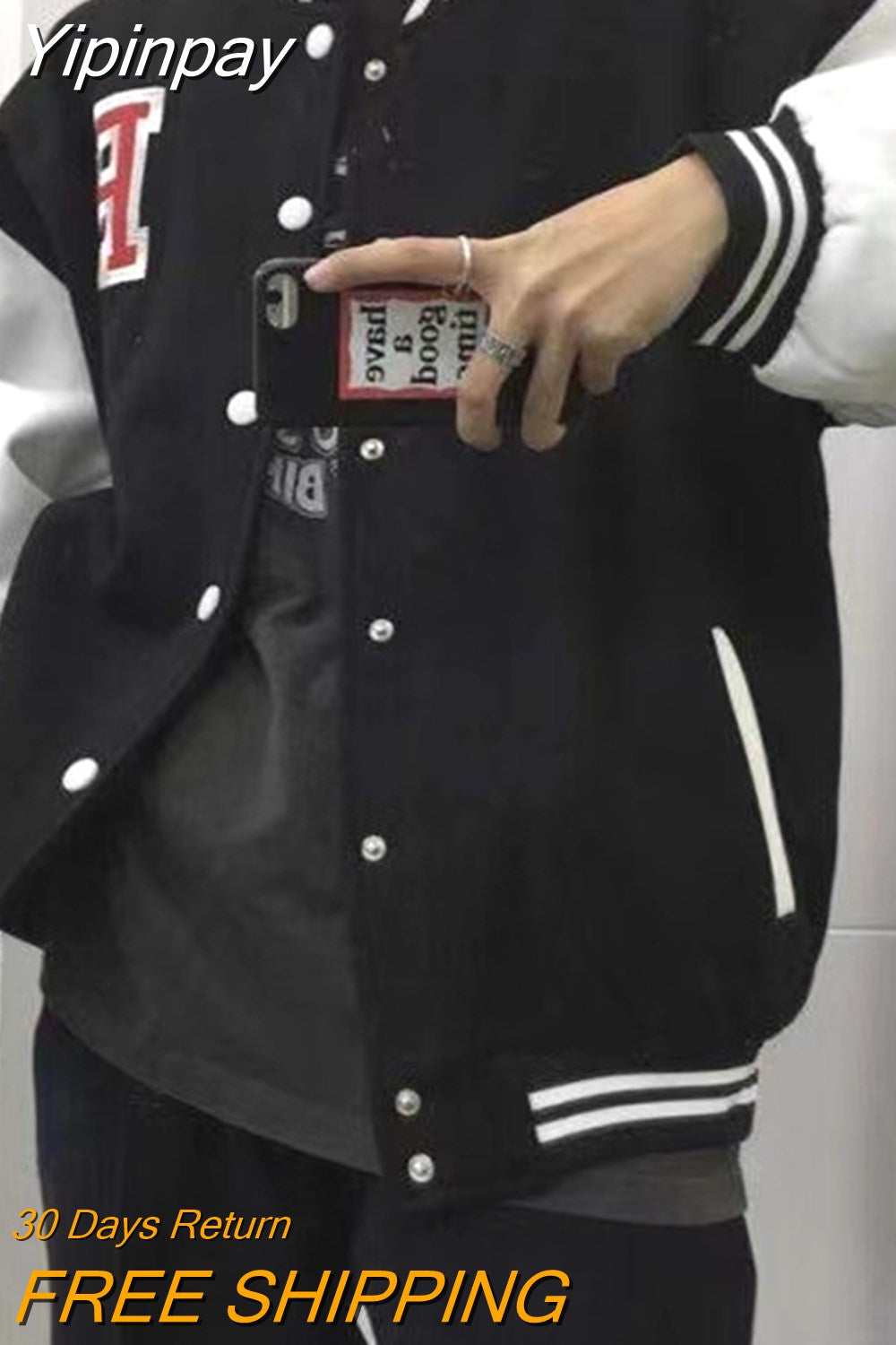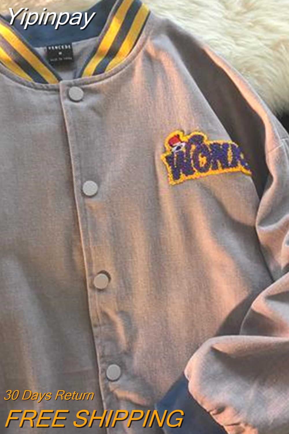 Yipinpay new letter embroidery jackets coat women's Y2K street retro all-match baseball uniform couple casual loose jackets coat top