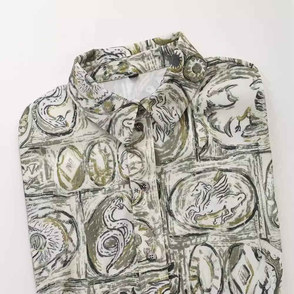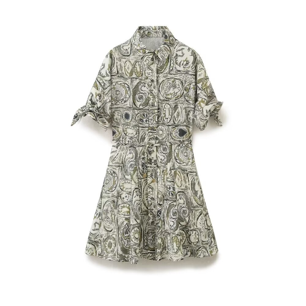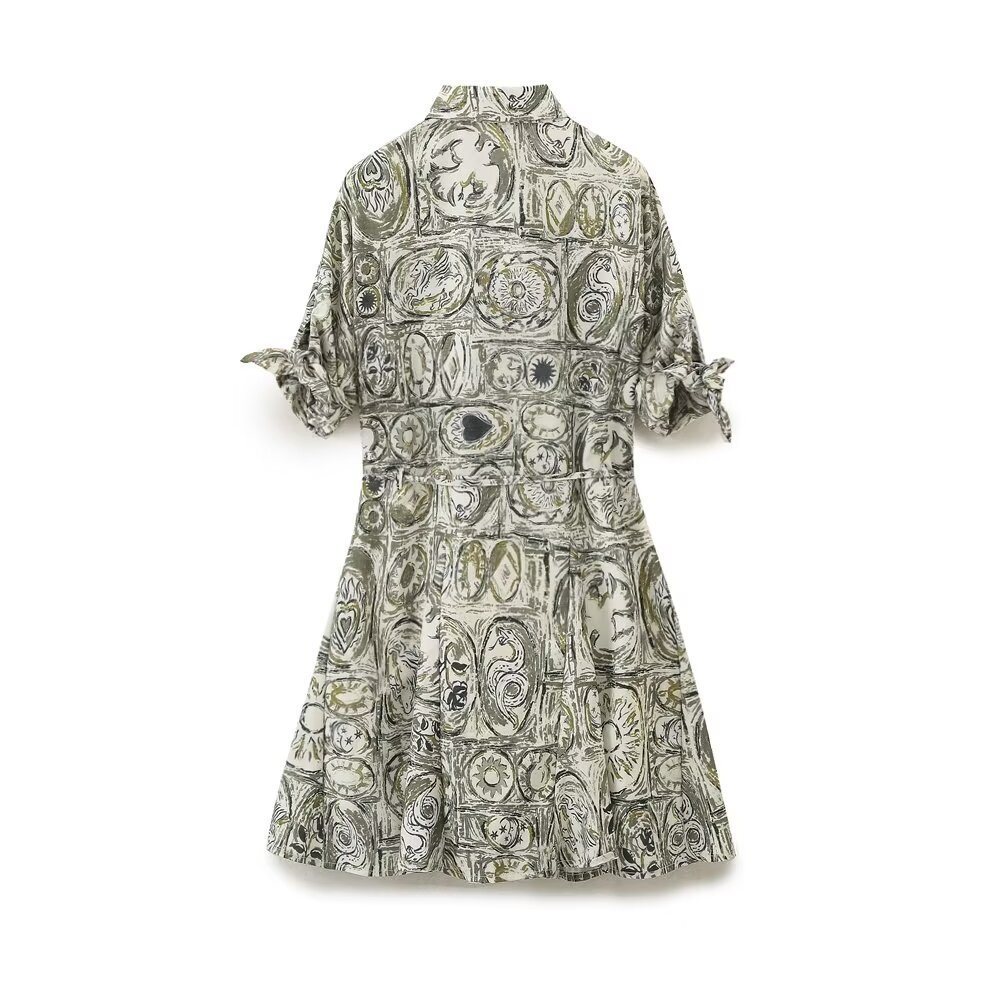 Yipinpay New Printed Lapel Shirt Dress With Belt Cuffs Bow Tie For Women 2183047