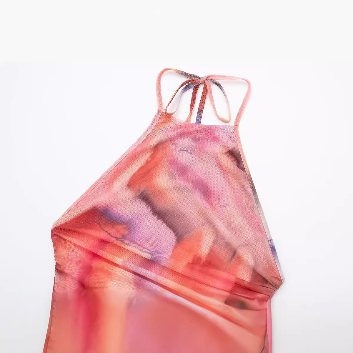 Yipinpay New Printed Silk Mesh Pleated Midi Dress 7752419