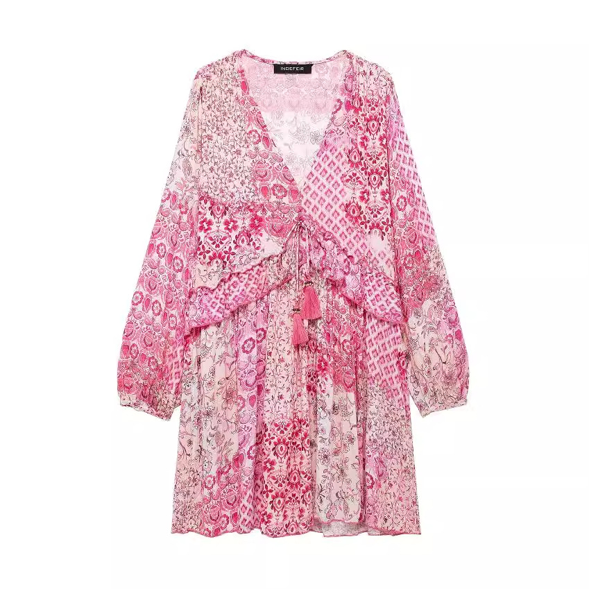 Yipinpay New Quilt Printed Loose Mini Dress 5029151