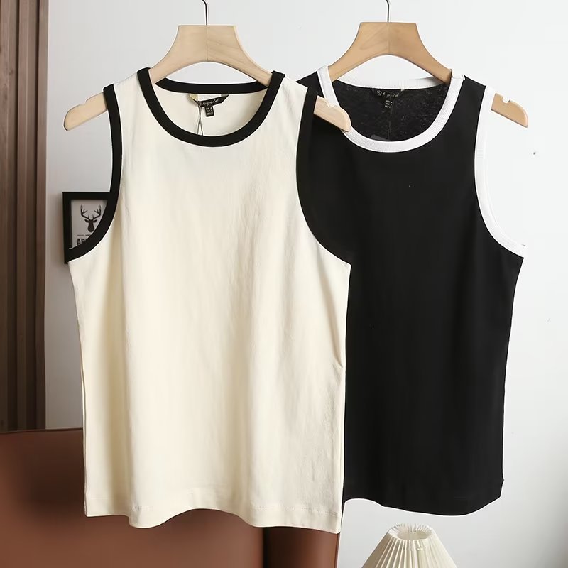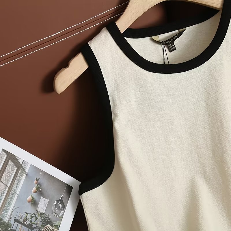 Yipinpay New Rice-White Sleeveless Spliced Slim Lady's Bottomed Vest T-Shirt