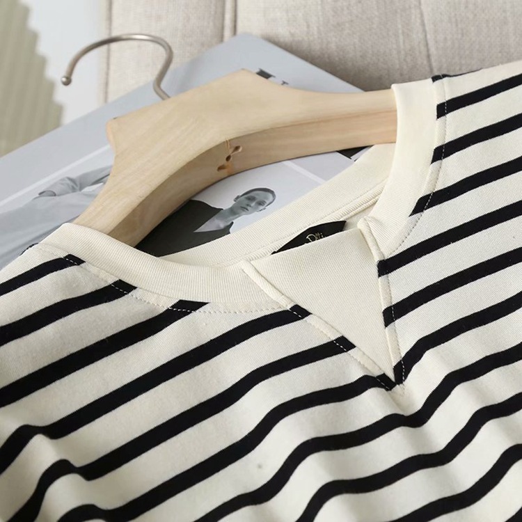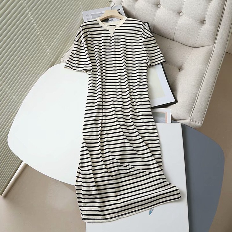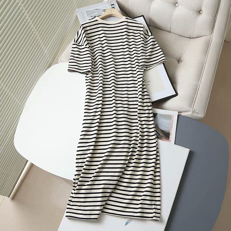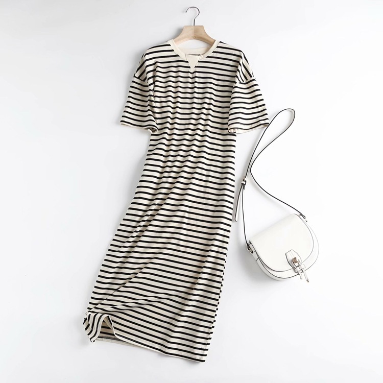 Yipinpay New Short-Sleeved Cotton Striped Simple Wind Dress In Summer