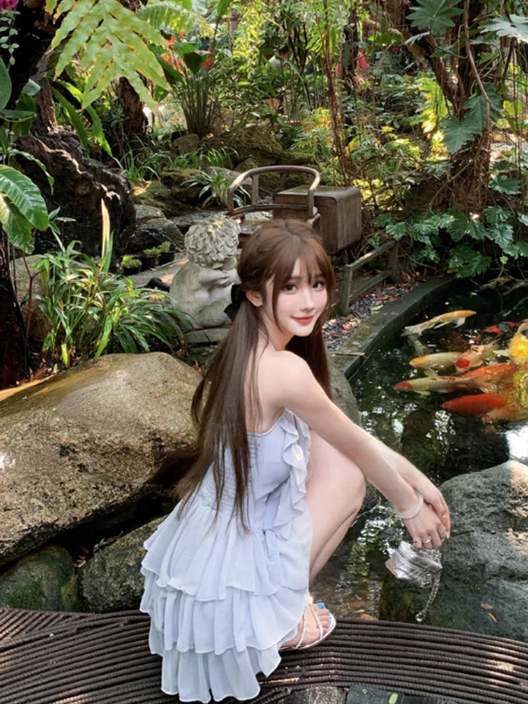 Yipinpay New Solid Sweet Y2k Mini Dress Beach Chiffon Sexy Sleeveless French Elegant Dress Casuasl One Piece Dress Korean Fashion