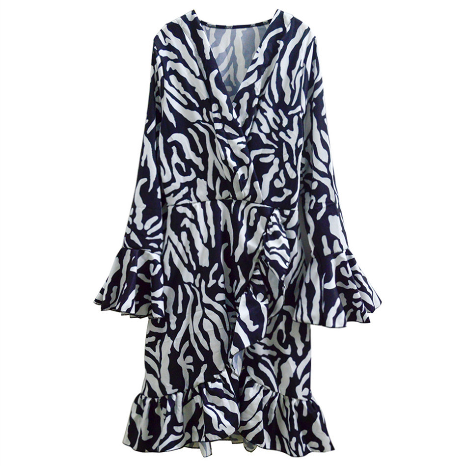 Yipinpay New Spring And Summer Independent Station Women's Black-And-White Striped Flared Sleeve Irregular Dress