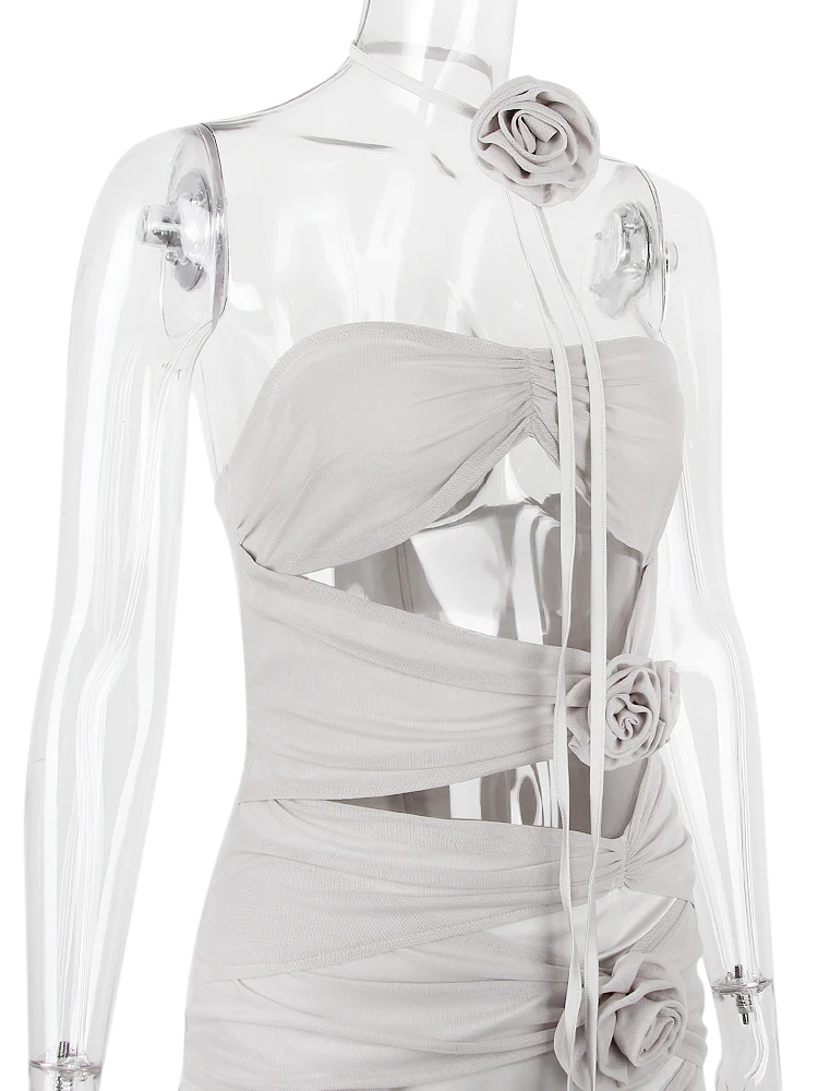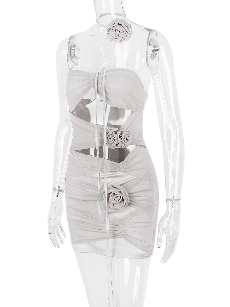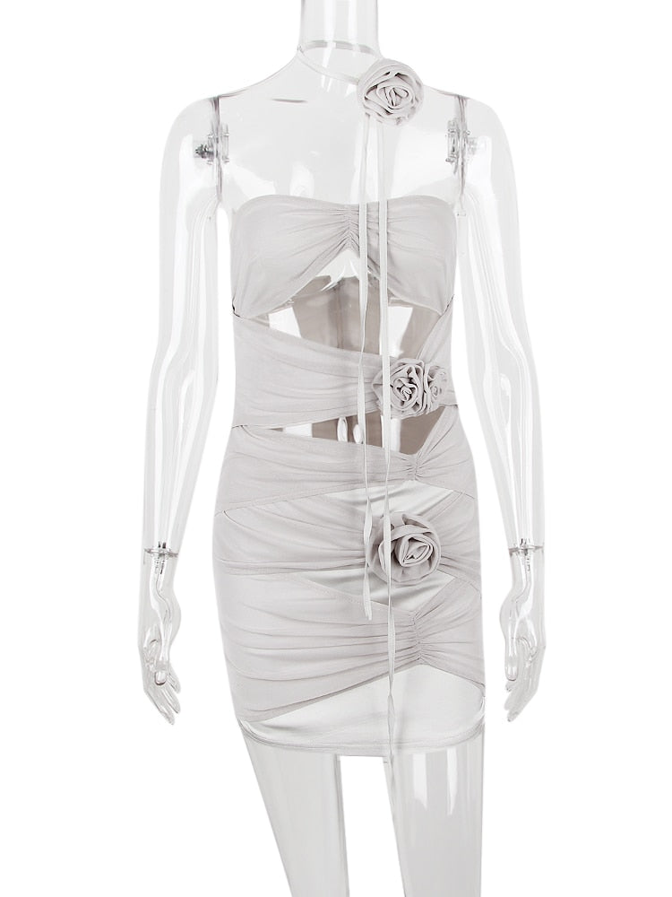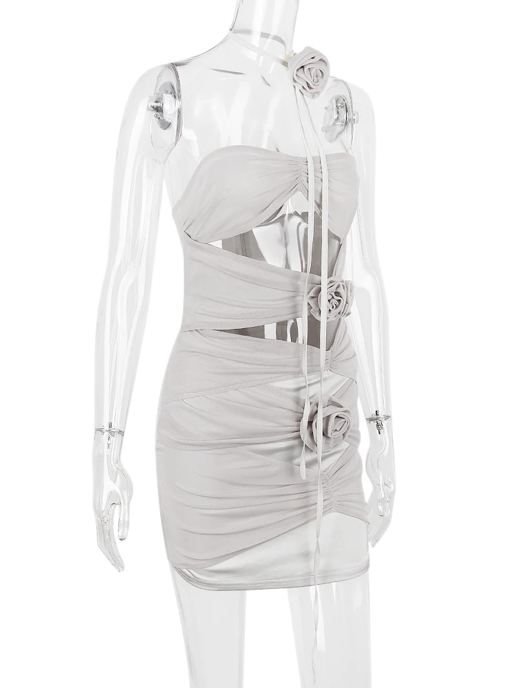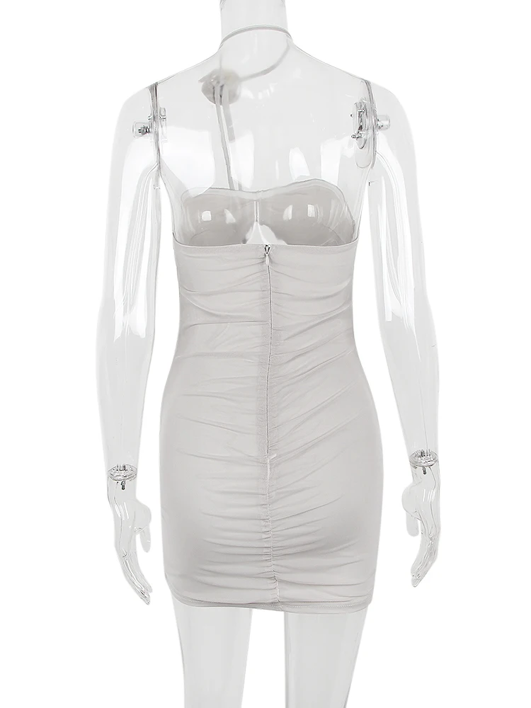 Yipinpay New Tube Mini Dress for Women Festival Celebrity Wear Elegant Sexy Cut Out Mesh Ruched Bodycon Night Club Party Dress