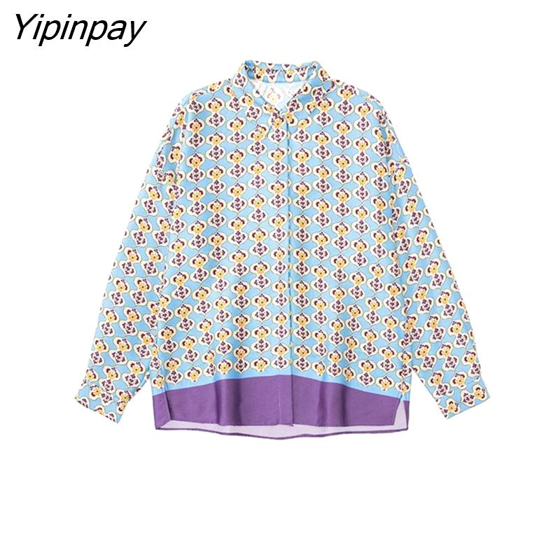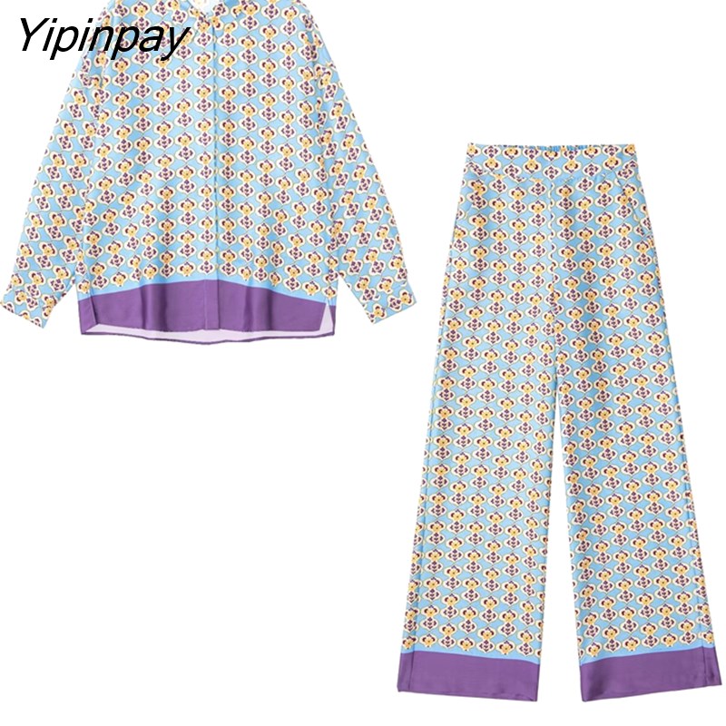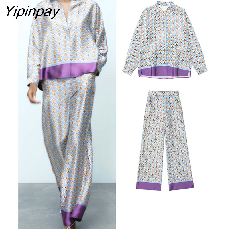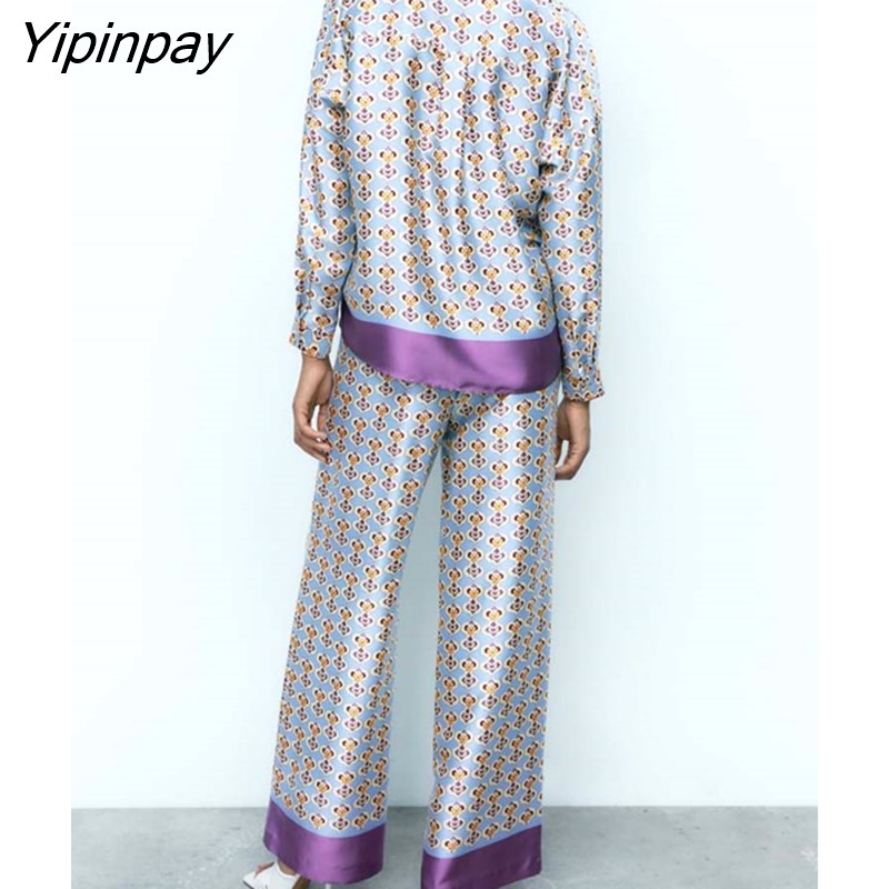 Yipinpay New Woman 2 Pieces Sets 2023 Shirts + Pants Suit Fashion Long Sleeve Single Breasted Blouse Trousers Casual Set