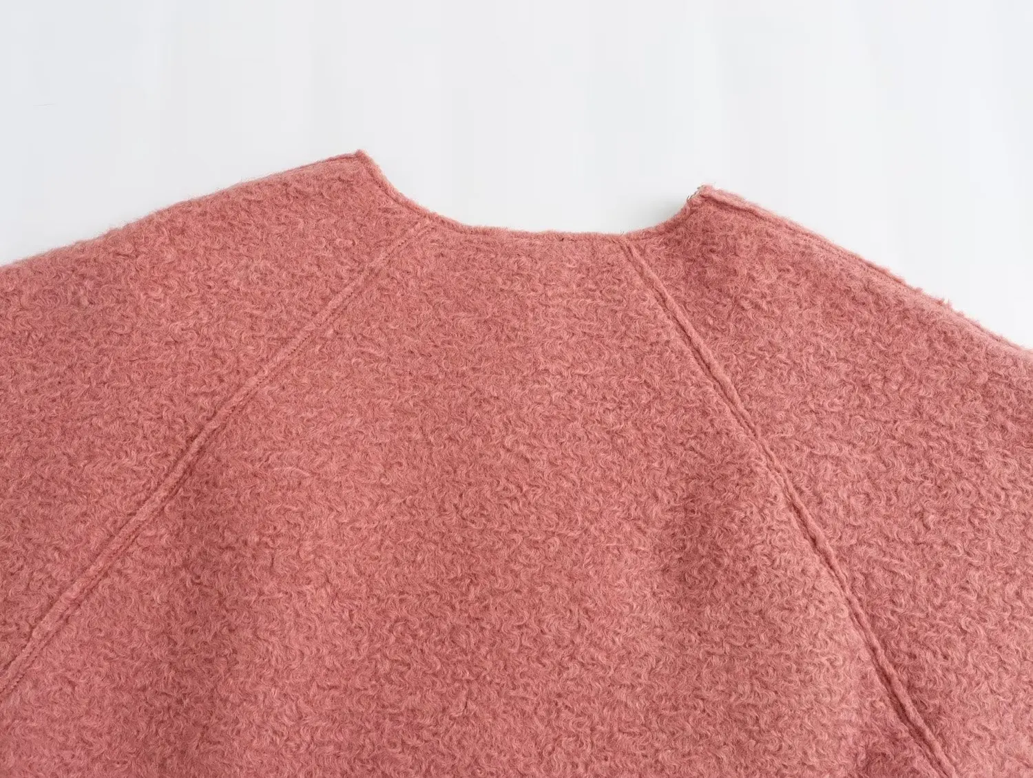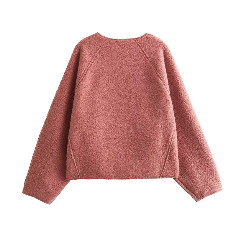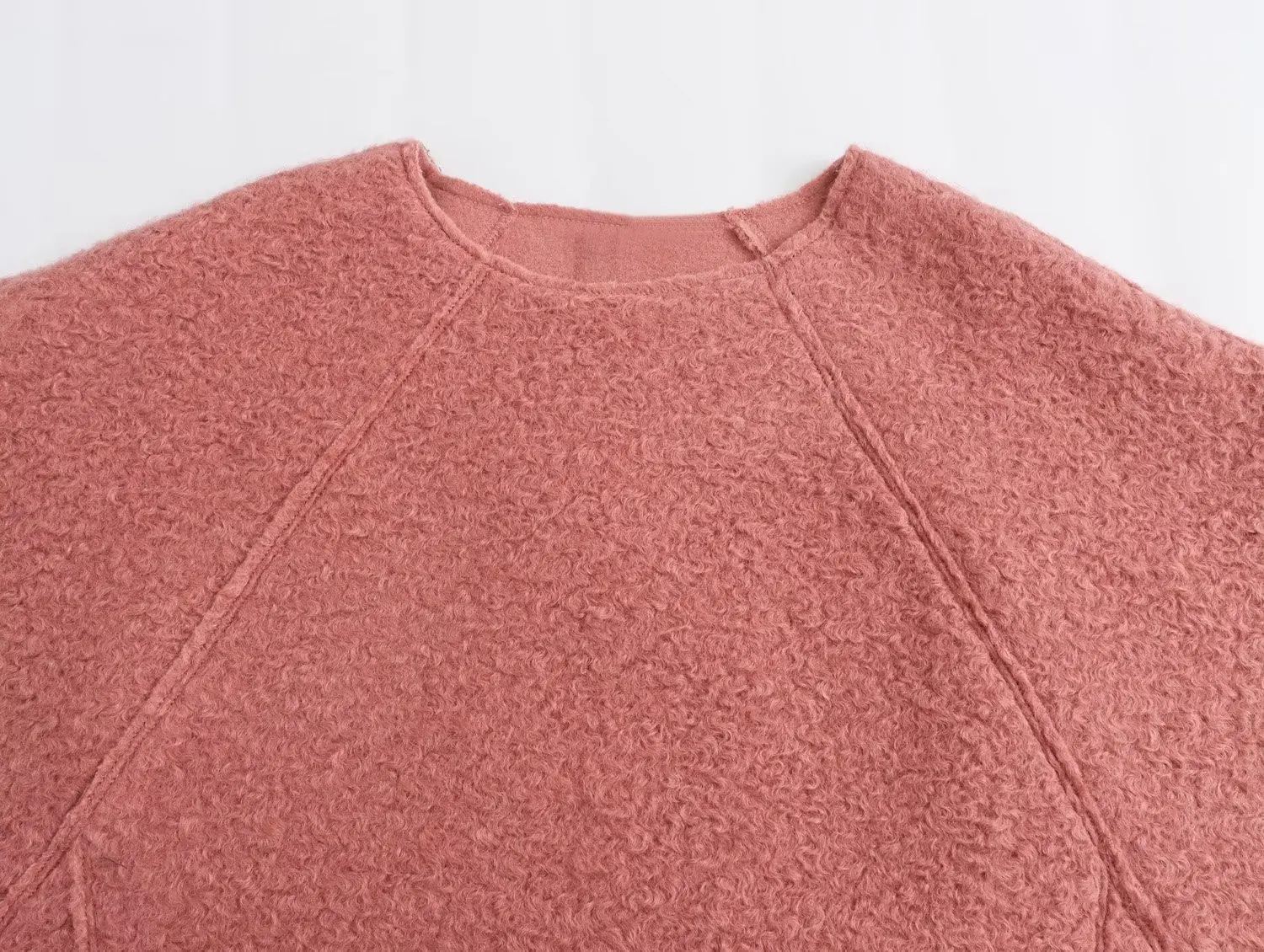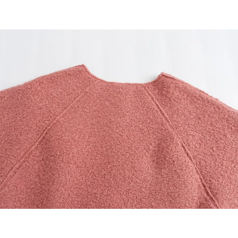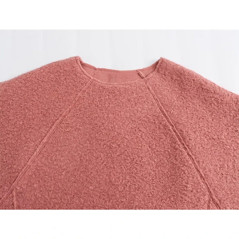 Yipinpay New Women Chalk Pink Oversize Boucle Sweatshirt O Neck Long Sleeve Female Autumn Winter Pullover Tops