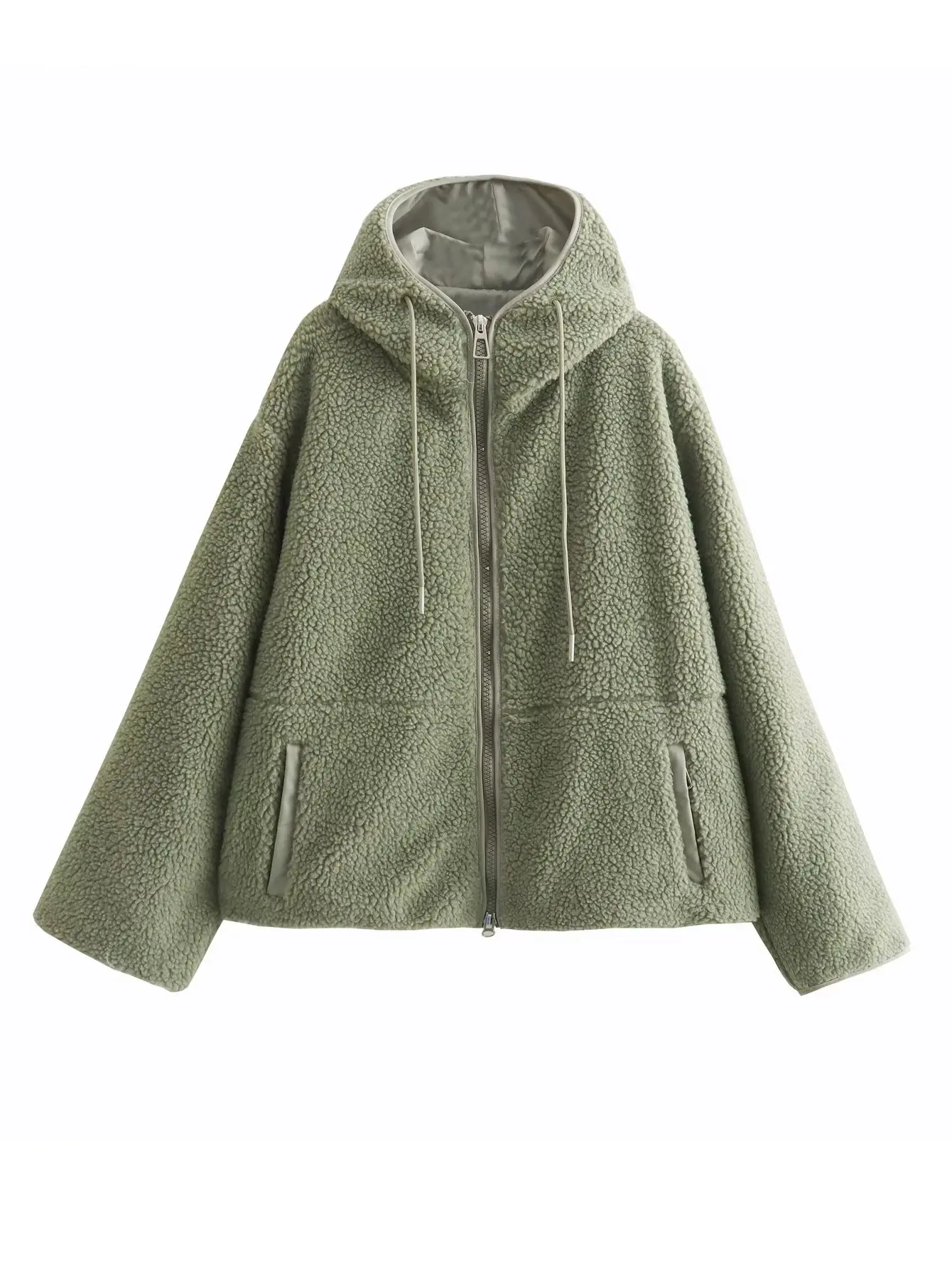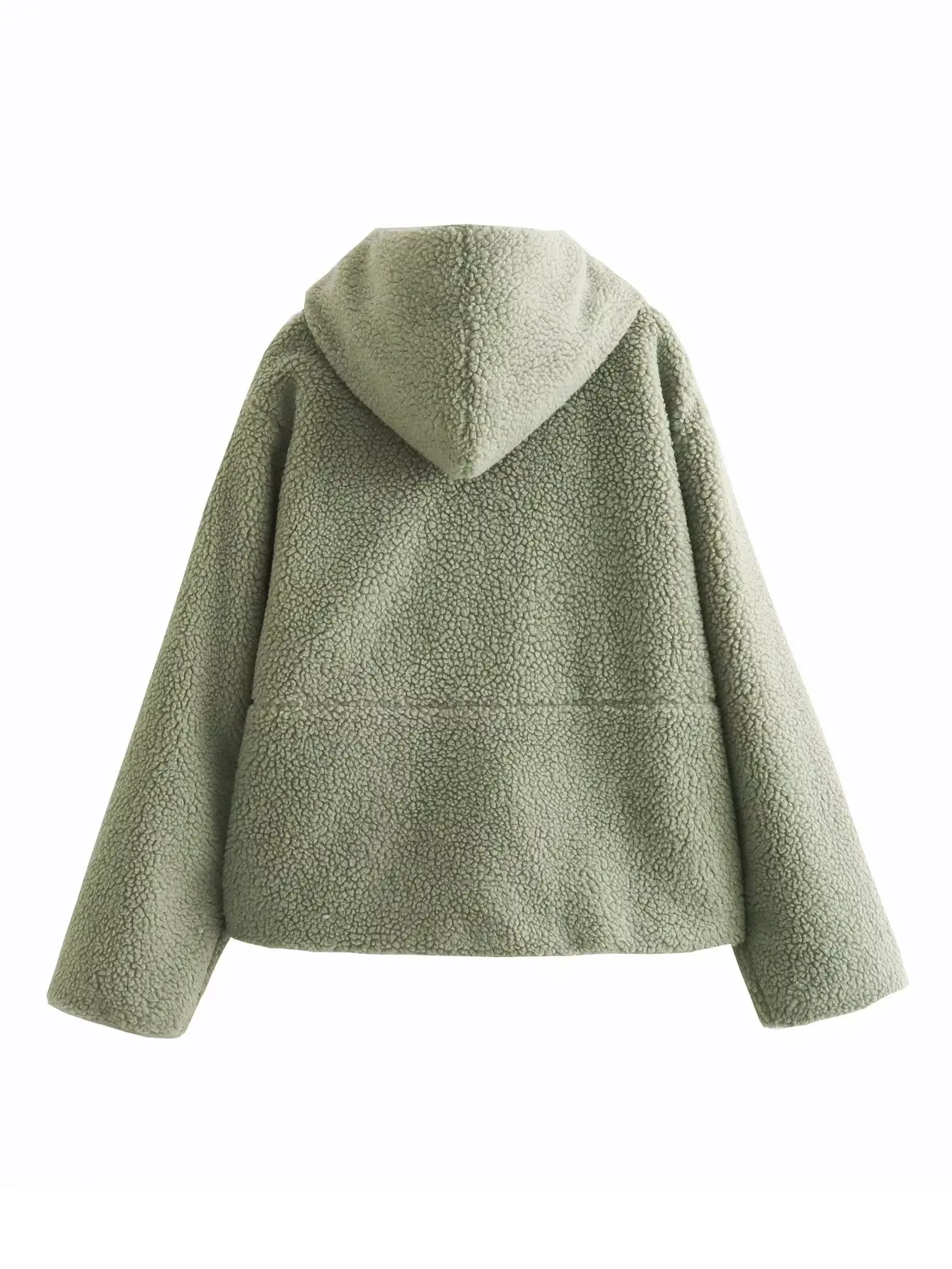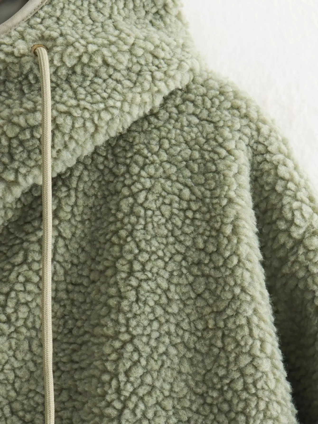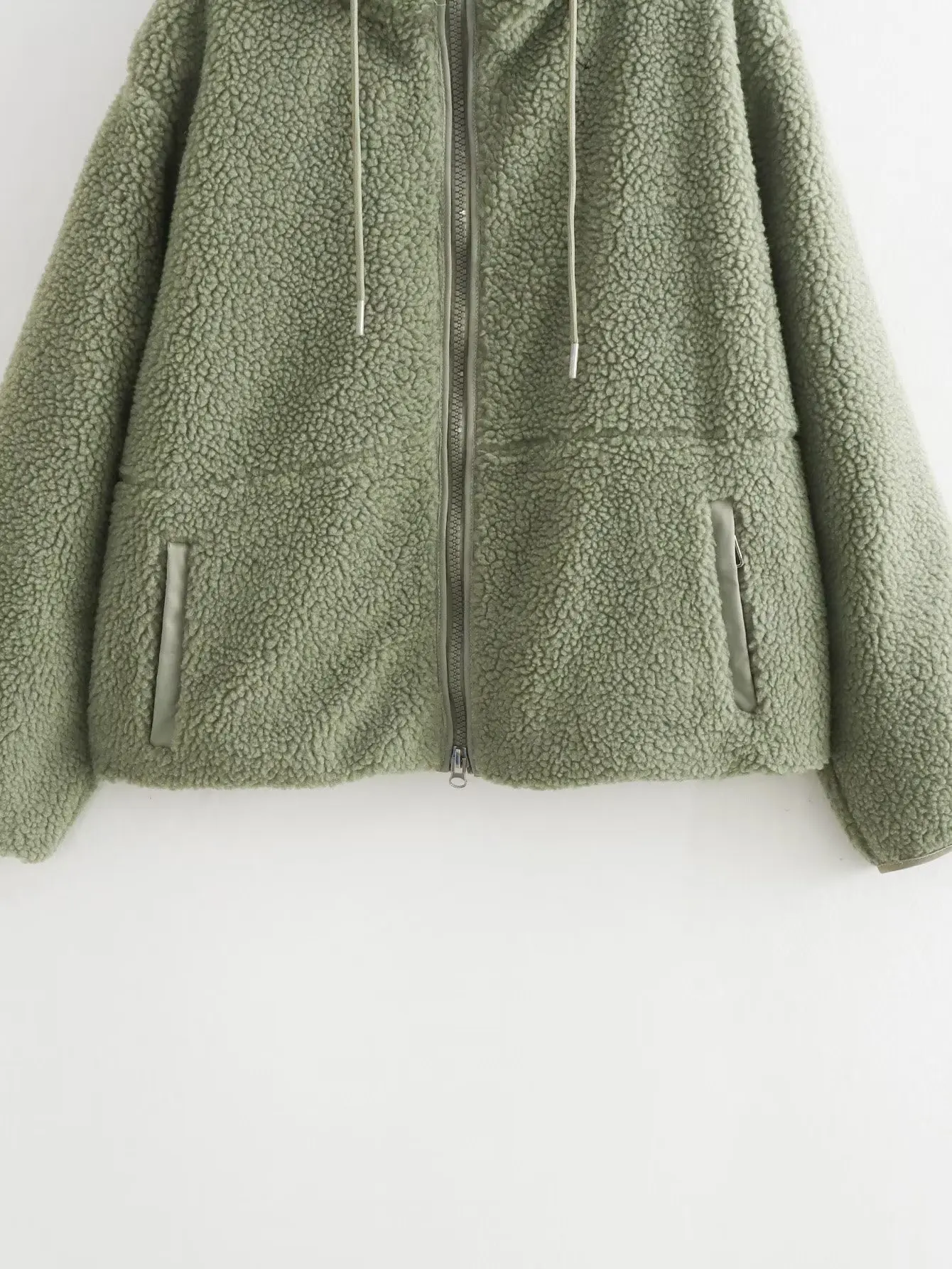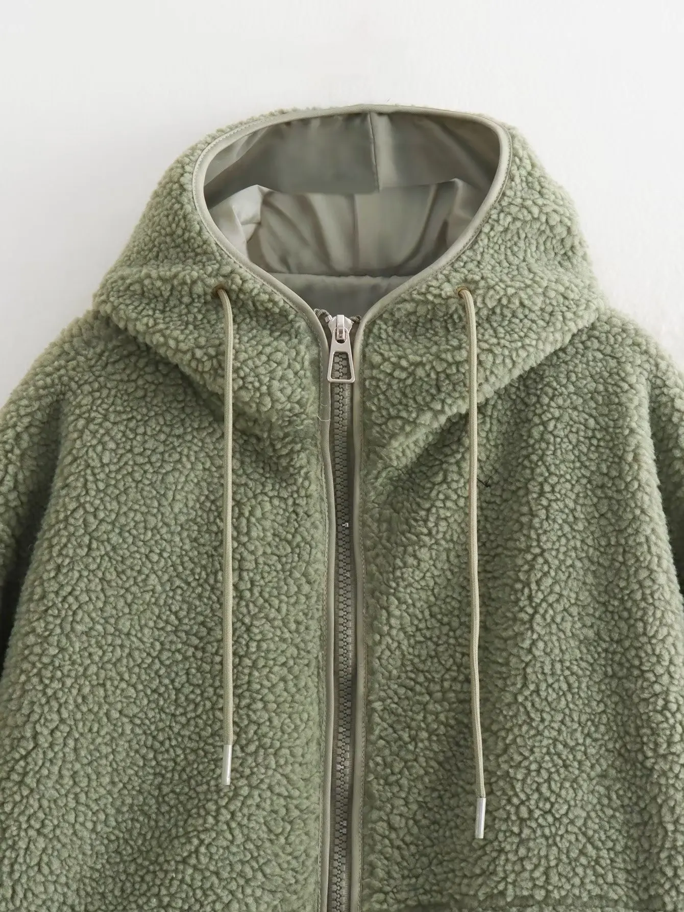 Yipinpay New Women Hooded Lambswool Coat Long Sleeve Female Autumn Winter Loose Warm Outerwear