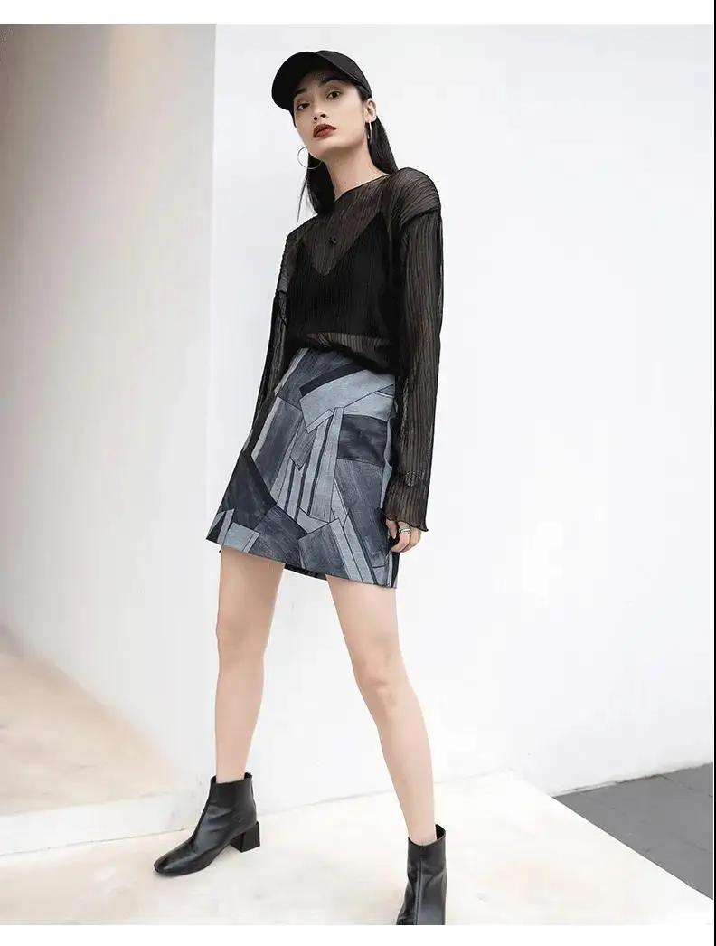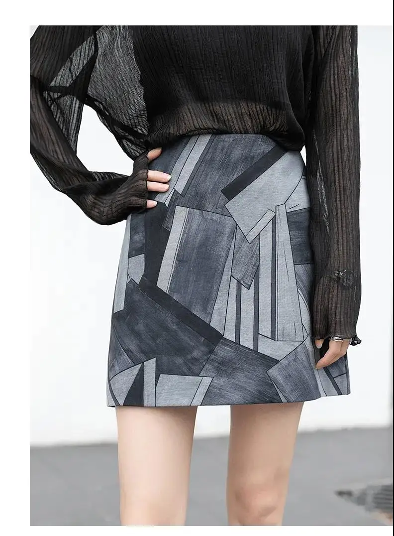 Yipinpay New Women Skirt Irregular Print Casual Mini Skirt Korean Style Women High Waist A-line Fashion Female Punk Skirt
