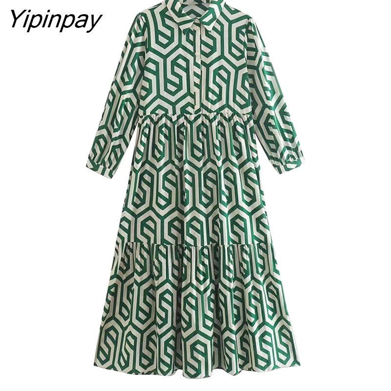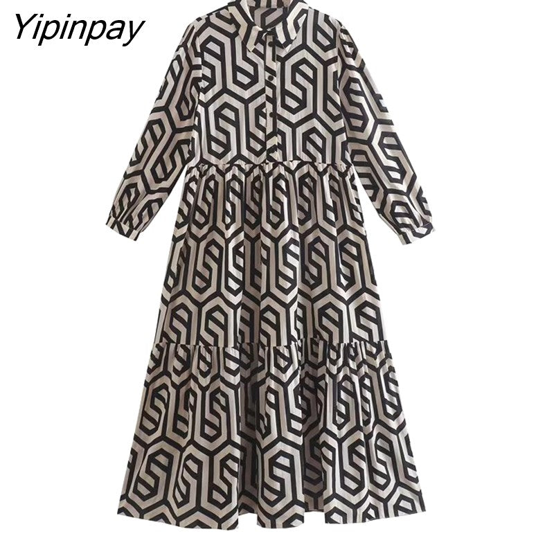 Yipinpay New Women Summer Print Dress Vintage Female Party Mid-Calf Geometric Loose Vestidos Half Sleeve High Waist Vestidos Mujer