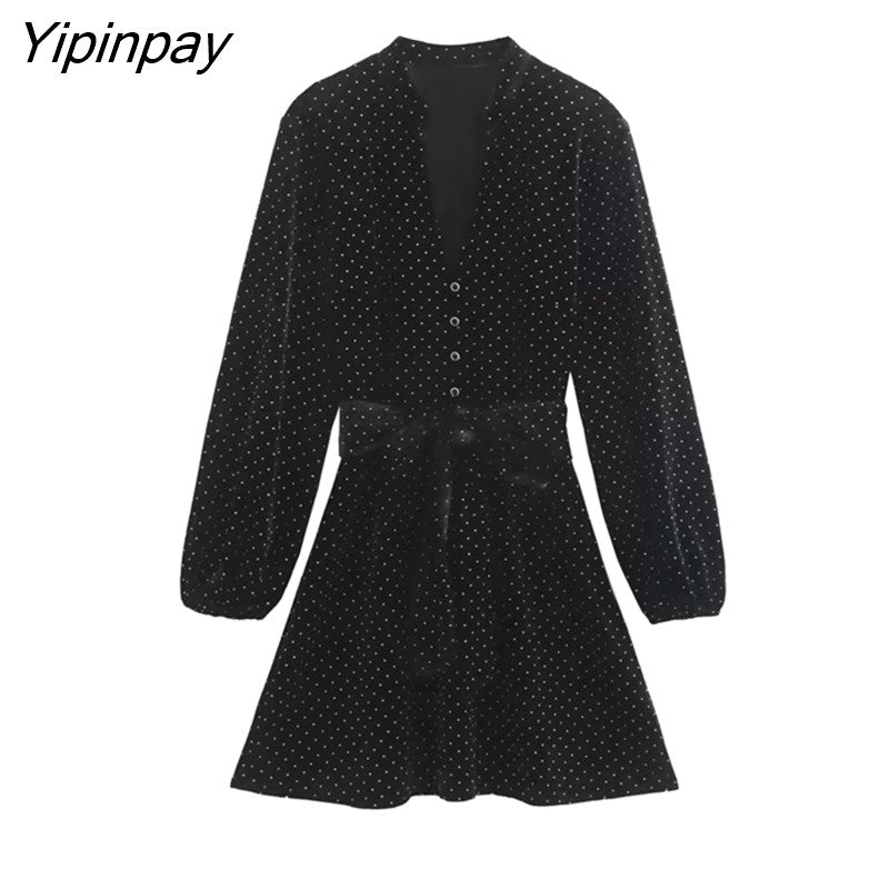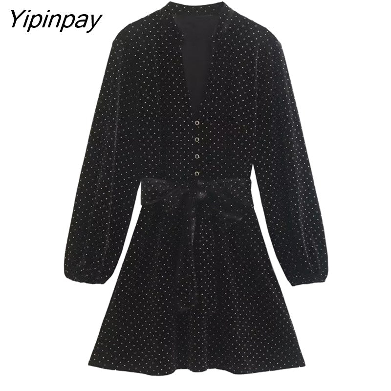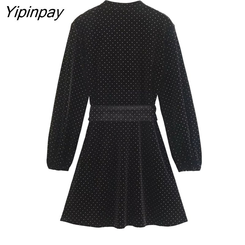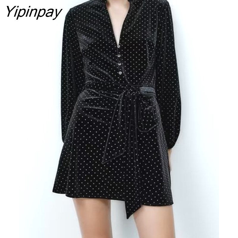 Yipinpay New Women Velvet Mini Dresses With Belt 2023 Spring Autumn Elegant Ladies Soft Dresses Long Sleeve A-line Vestidos