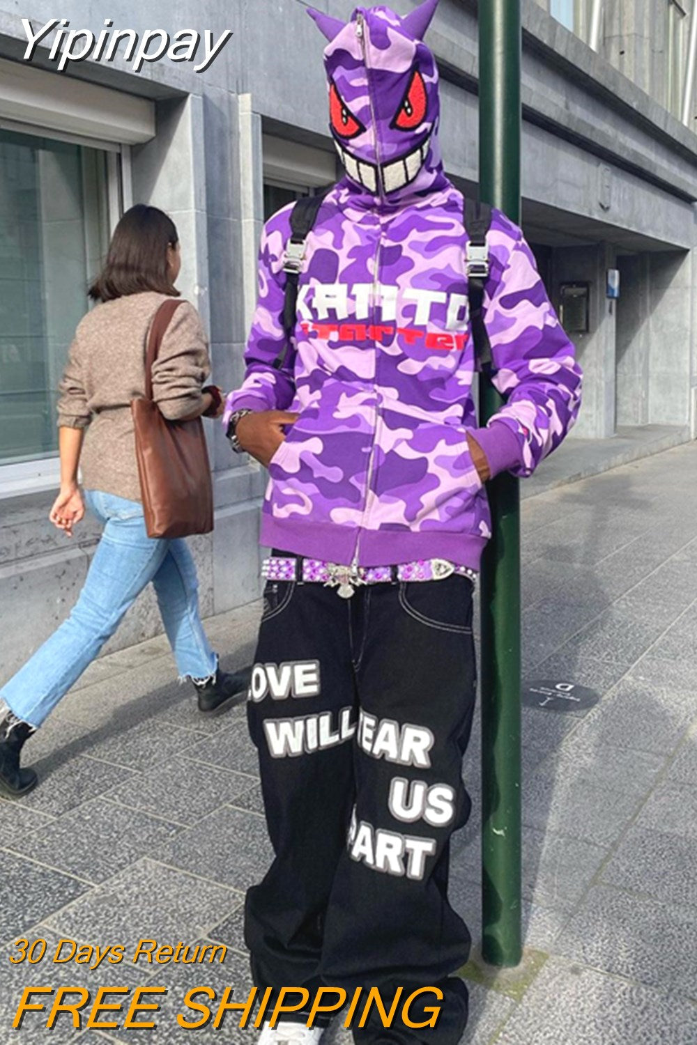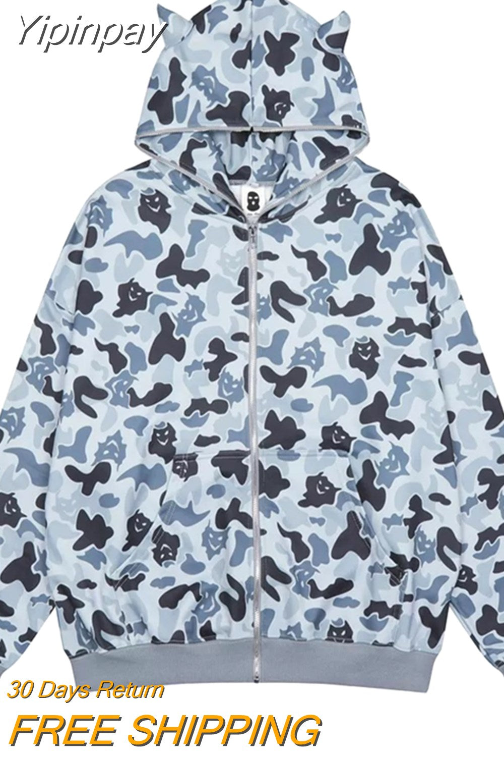 Yipinpay New Y2K Hoodie Hip Hop Camouflage Print Oversized Zipper Hooded Sweatshirt Harajuku Street Punk Rock Jacket Tops Streetwear