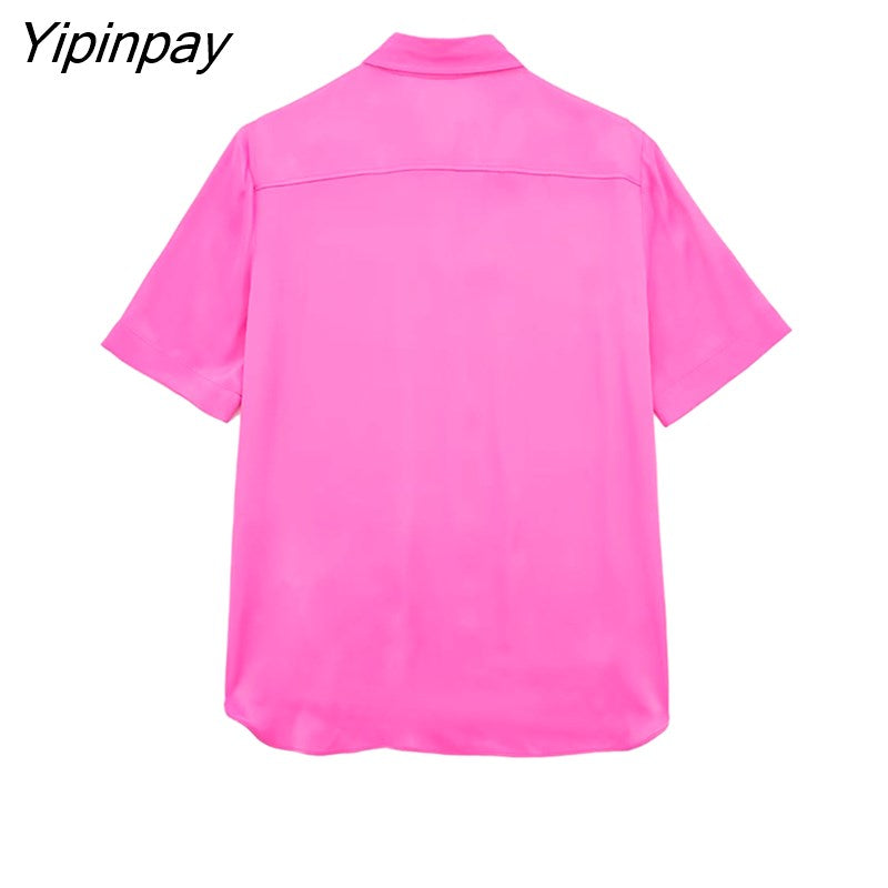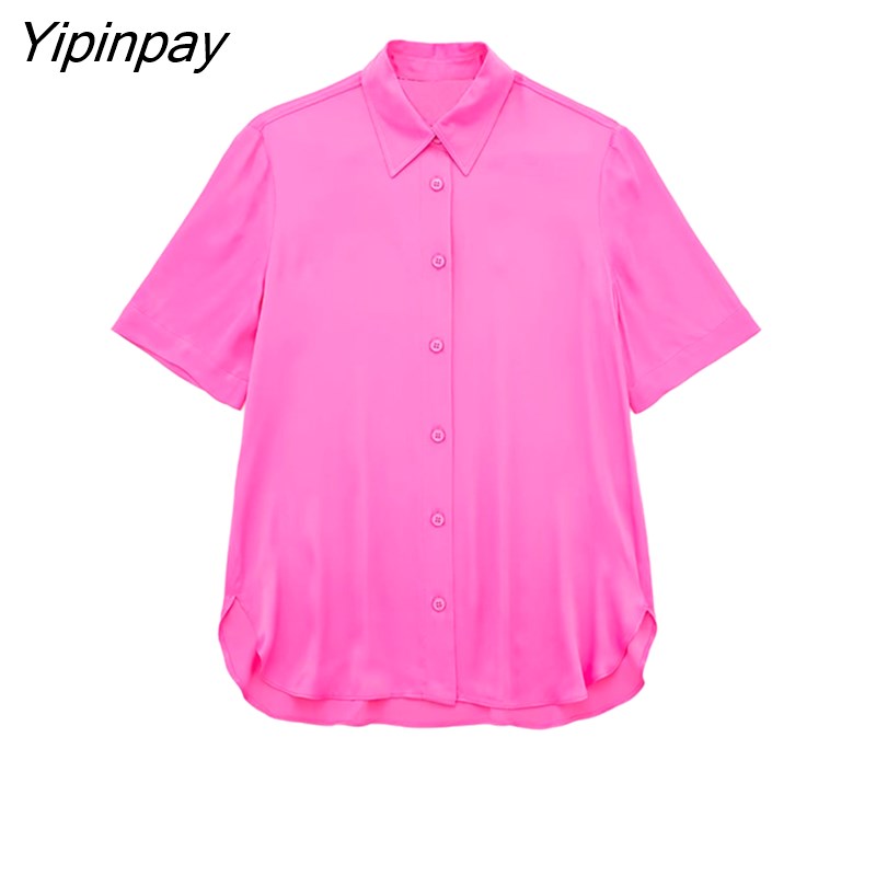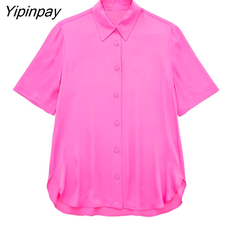 Yipinpay Newest Summer Women Solid Blouses Shirt 2023 Causal Short Sleeved Turn Down Collar Tops Vintage Single Breasted T-Shirts