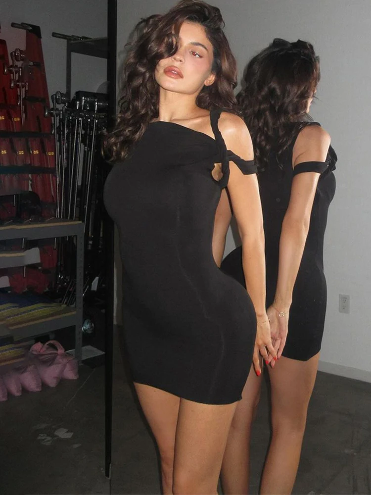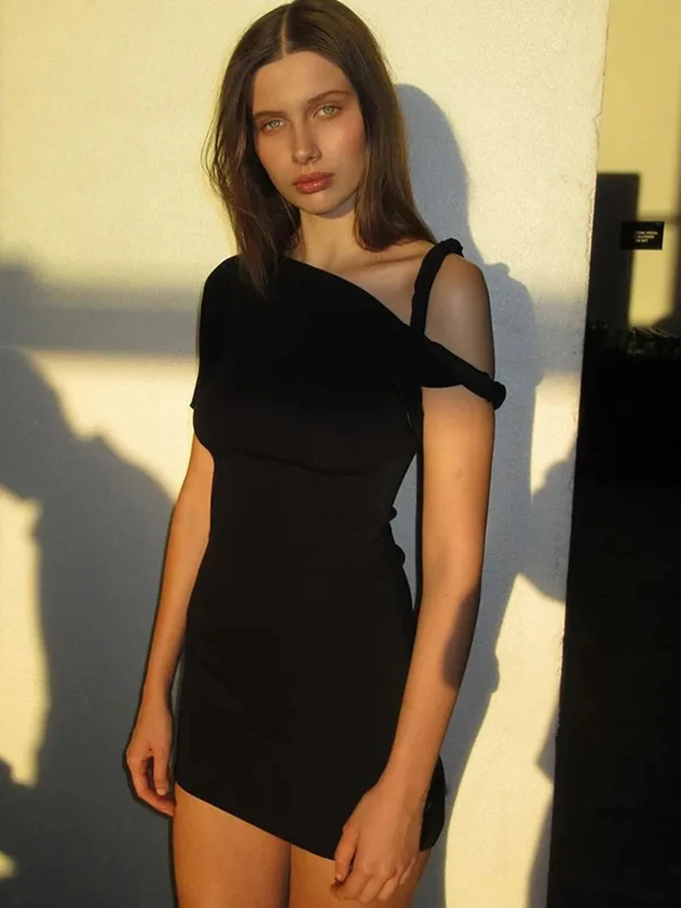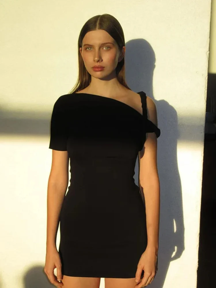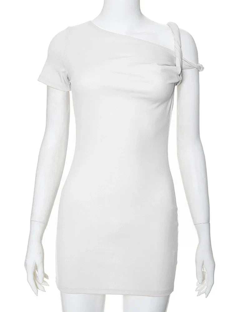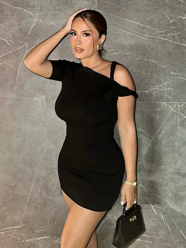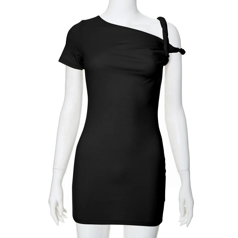 Yipinpay Off-Shoulder Bandage Summer Mini Dress For Women One-Shoulder Slim Fashion Elegant Patchwork Y2k Dress Female Mini Dress