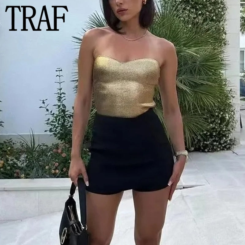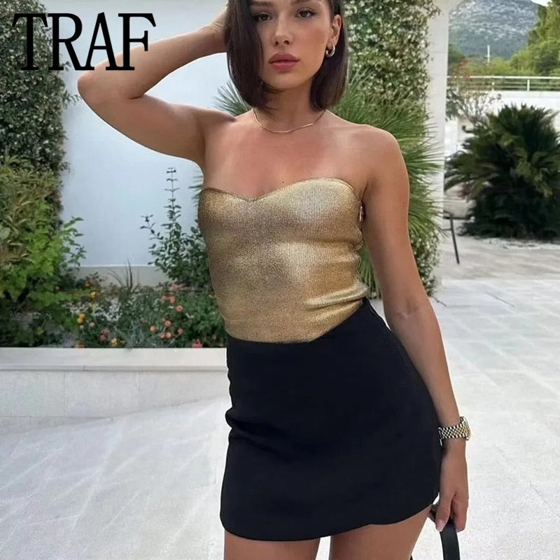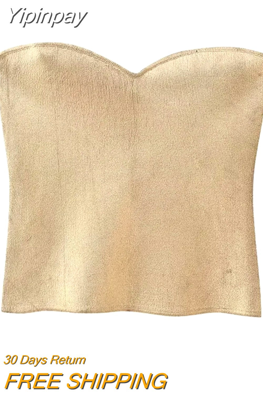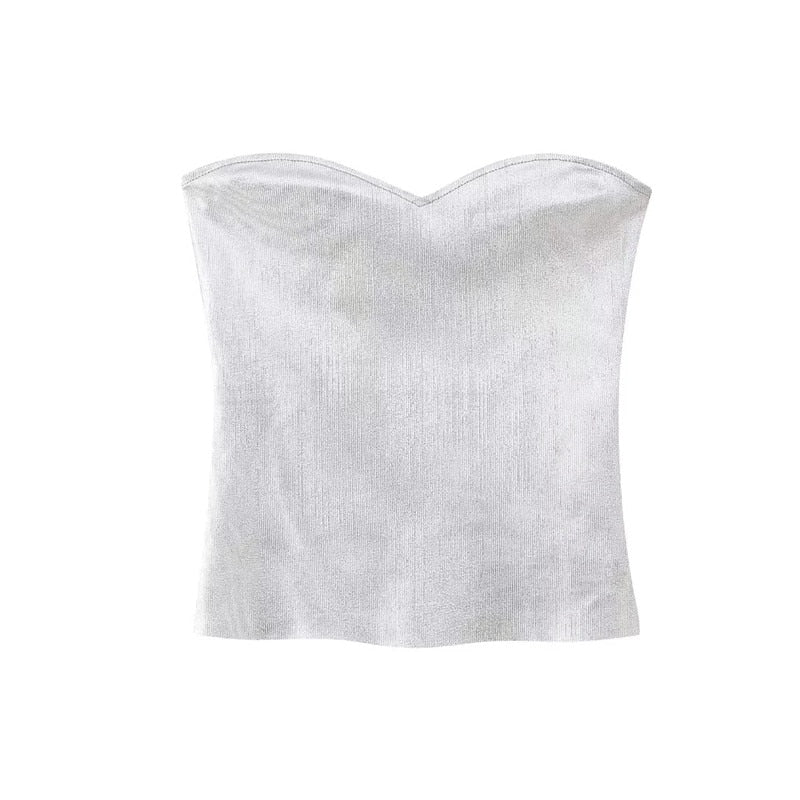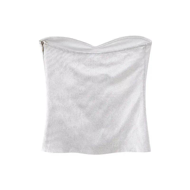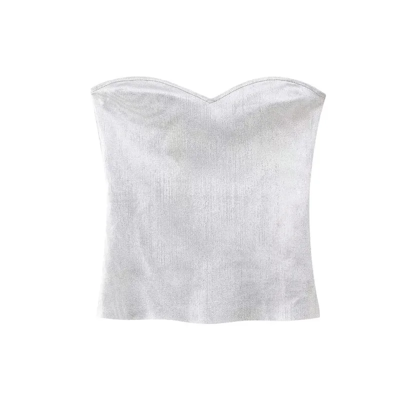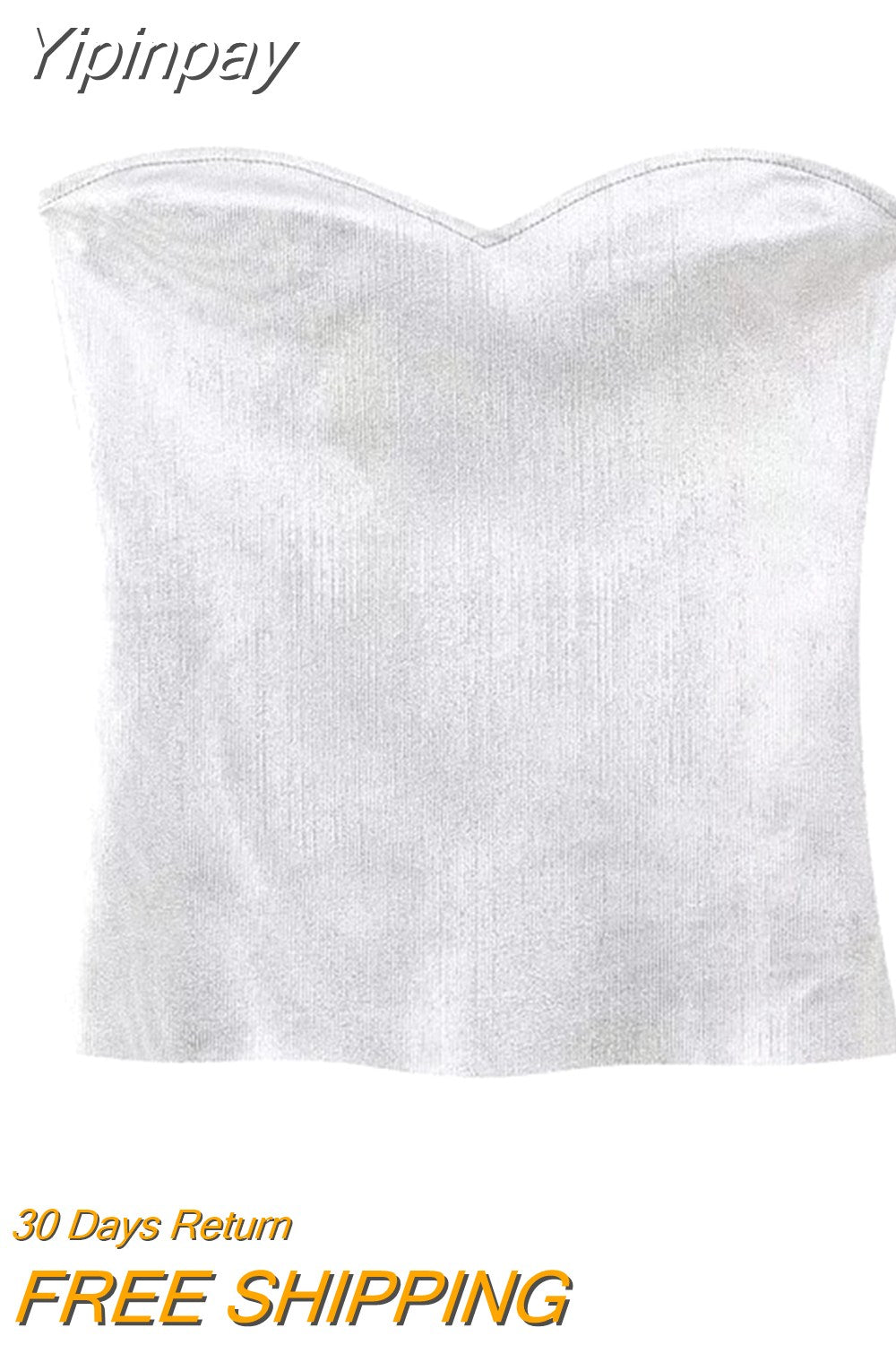 Yipinpay Off Shoulder Corset Tops For Women Silver Knit Crop Top Female Backless Sexy Tube Tops Summer Sleeveless Bustier Top Woman