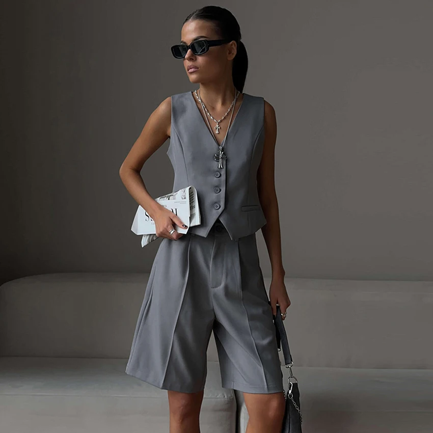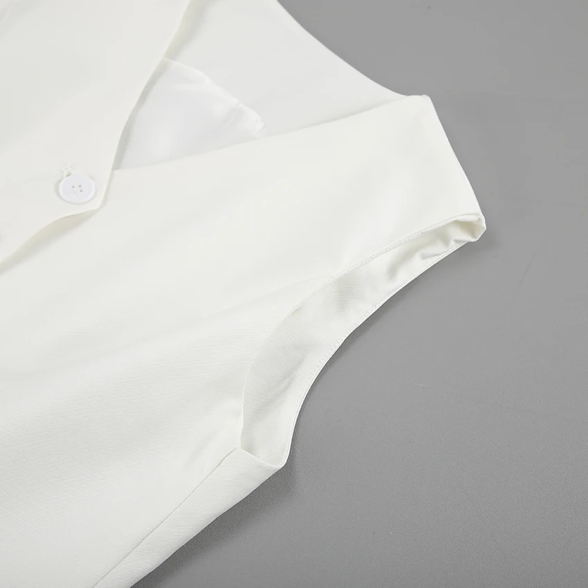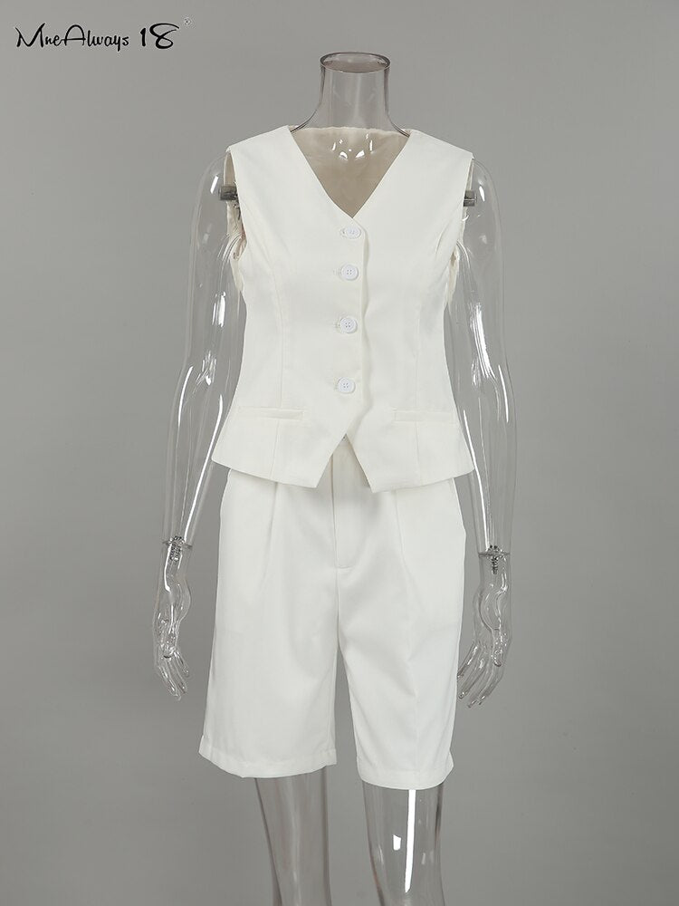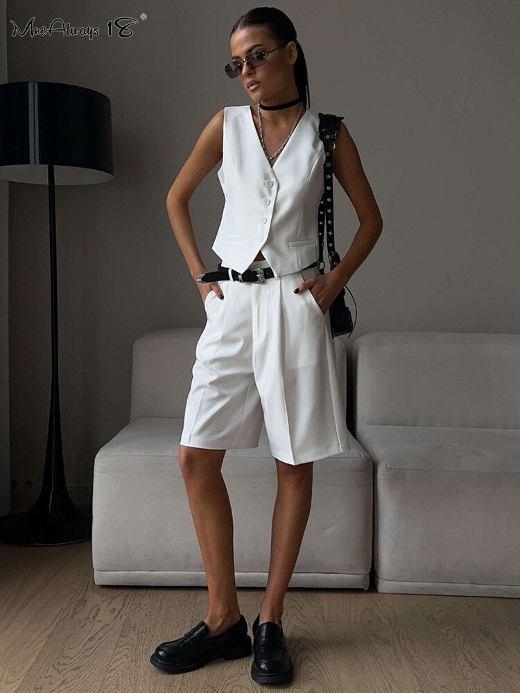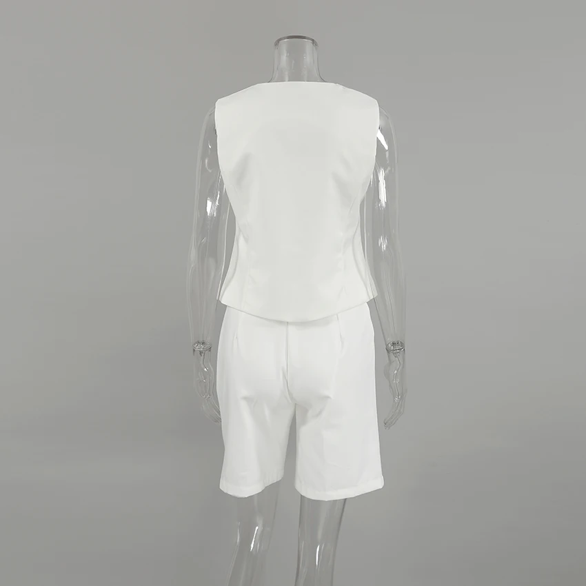 Yipinpay Office Ladies White Shorts Suits 2 Pieces Vest Tops And Wide Legs Shorts Sets Women 2023 Pleated Outfits Two Pieces