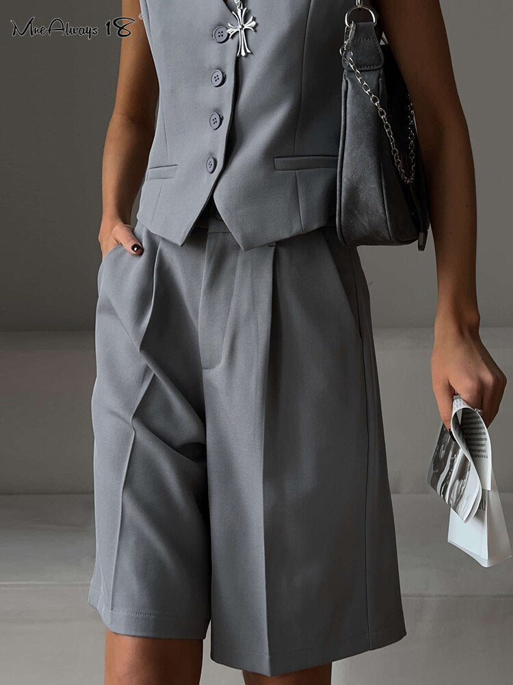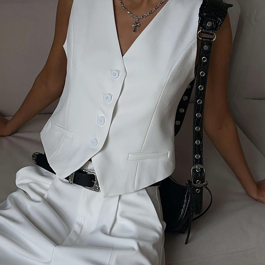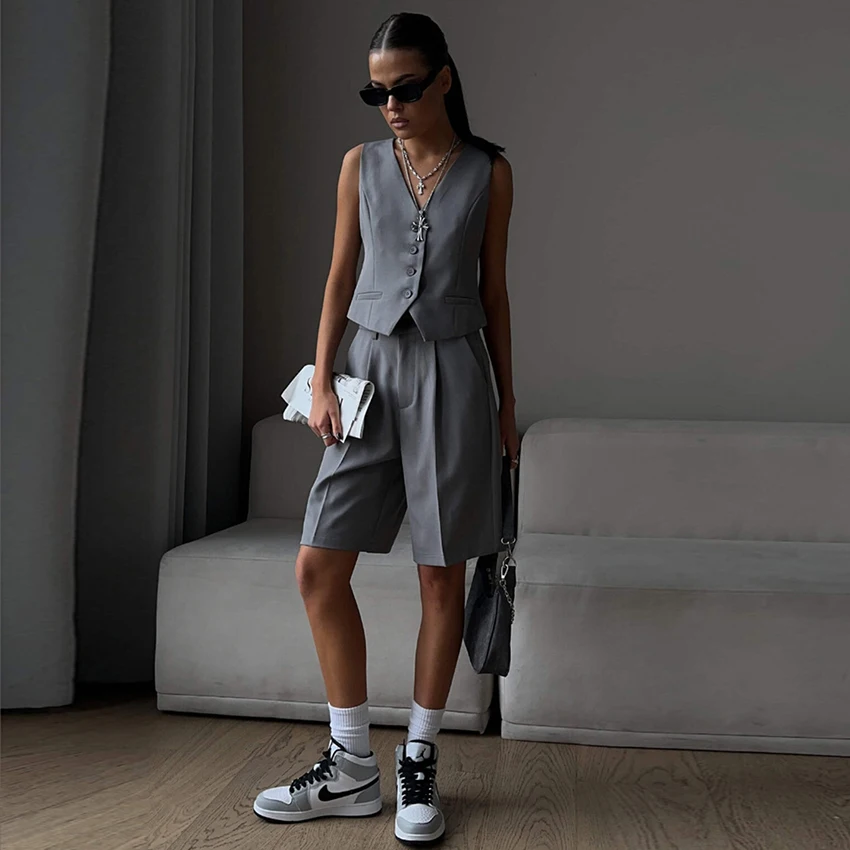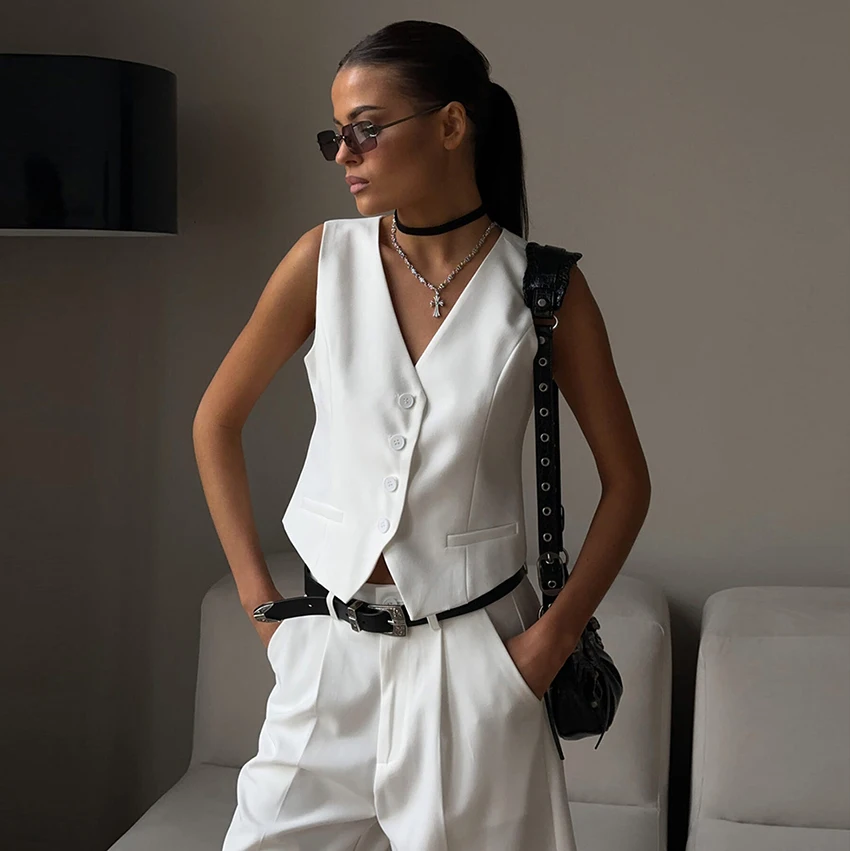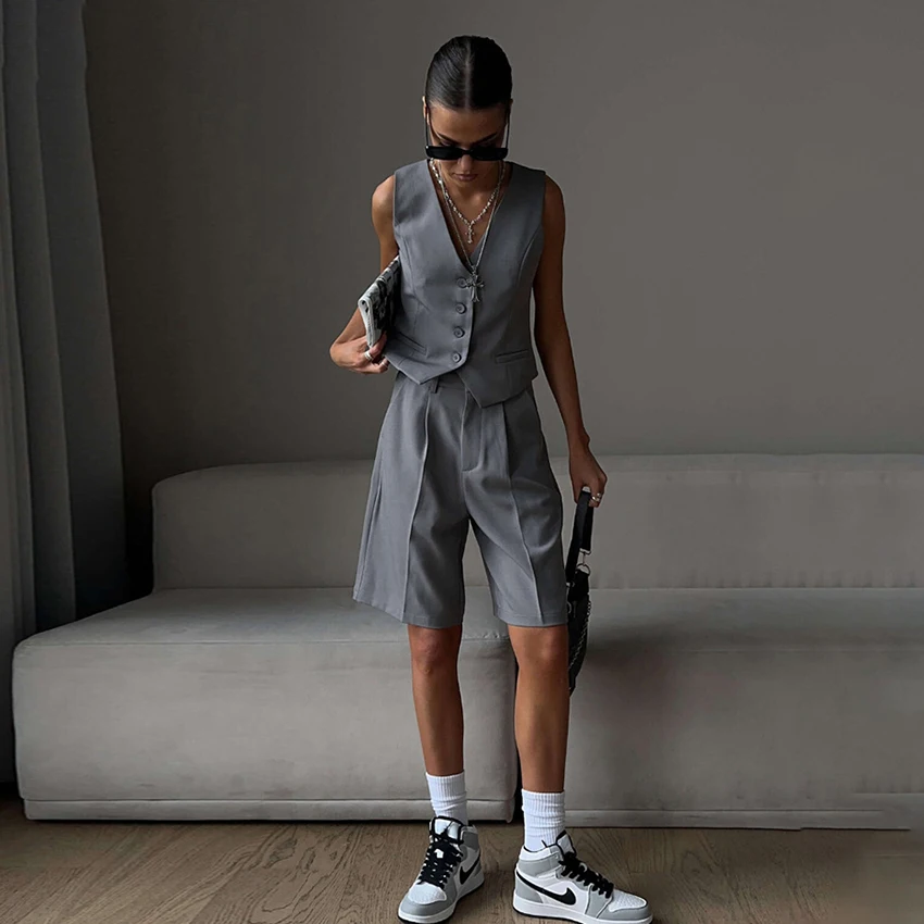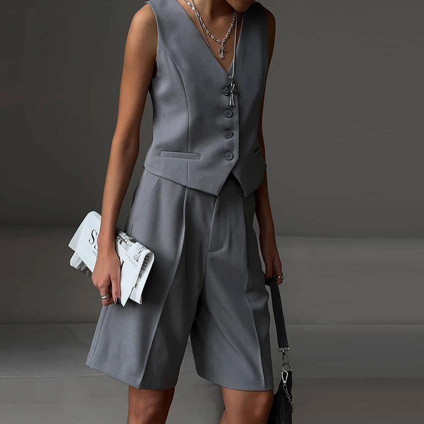 Yipinpay Office Ladies White Shorts Suits 2 Pieces Vest Tops And Wide Legs Shorts Sets Women 2023 Pleated Outfits Two Pieces