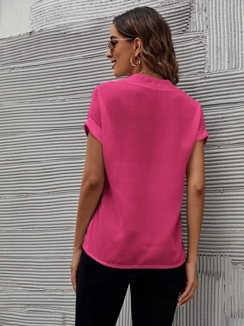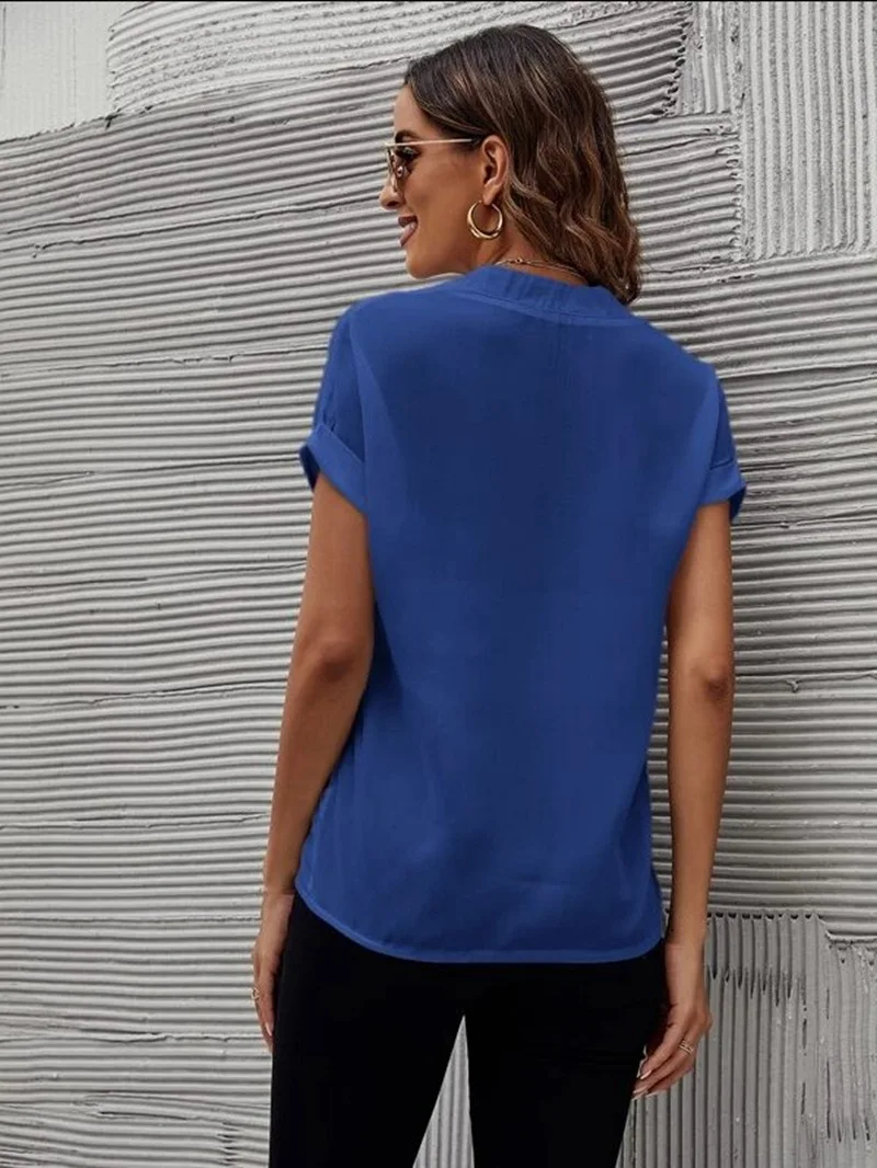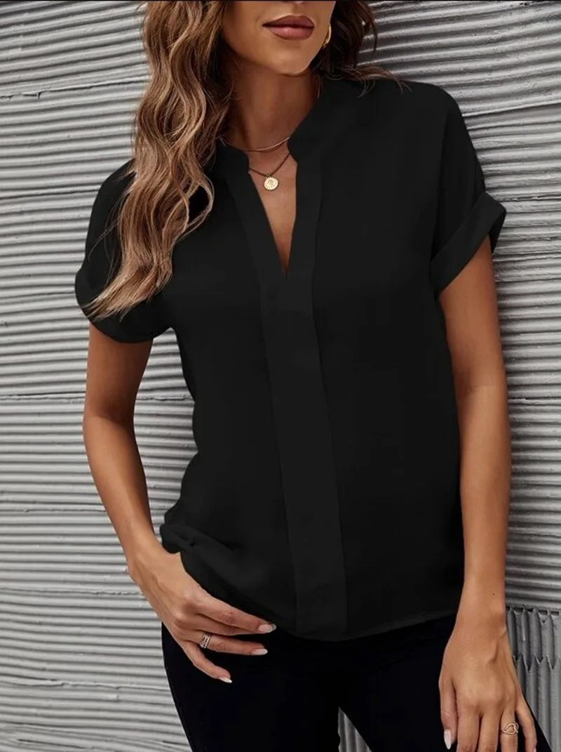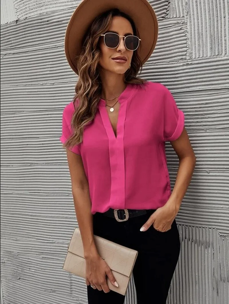 Yipinpay Office Lady White Chiffon Women Shirt 2024 Summer New Work V-Neck Short Sleeve Loose Women Casual Blouse Female Clothes