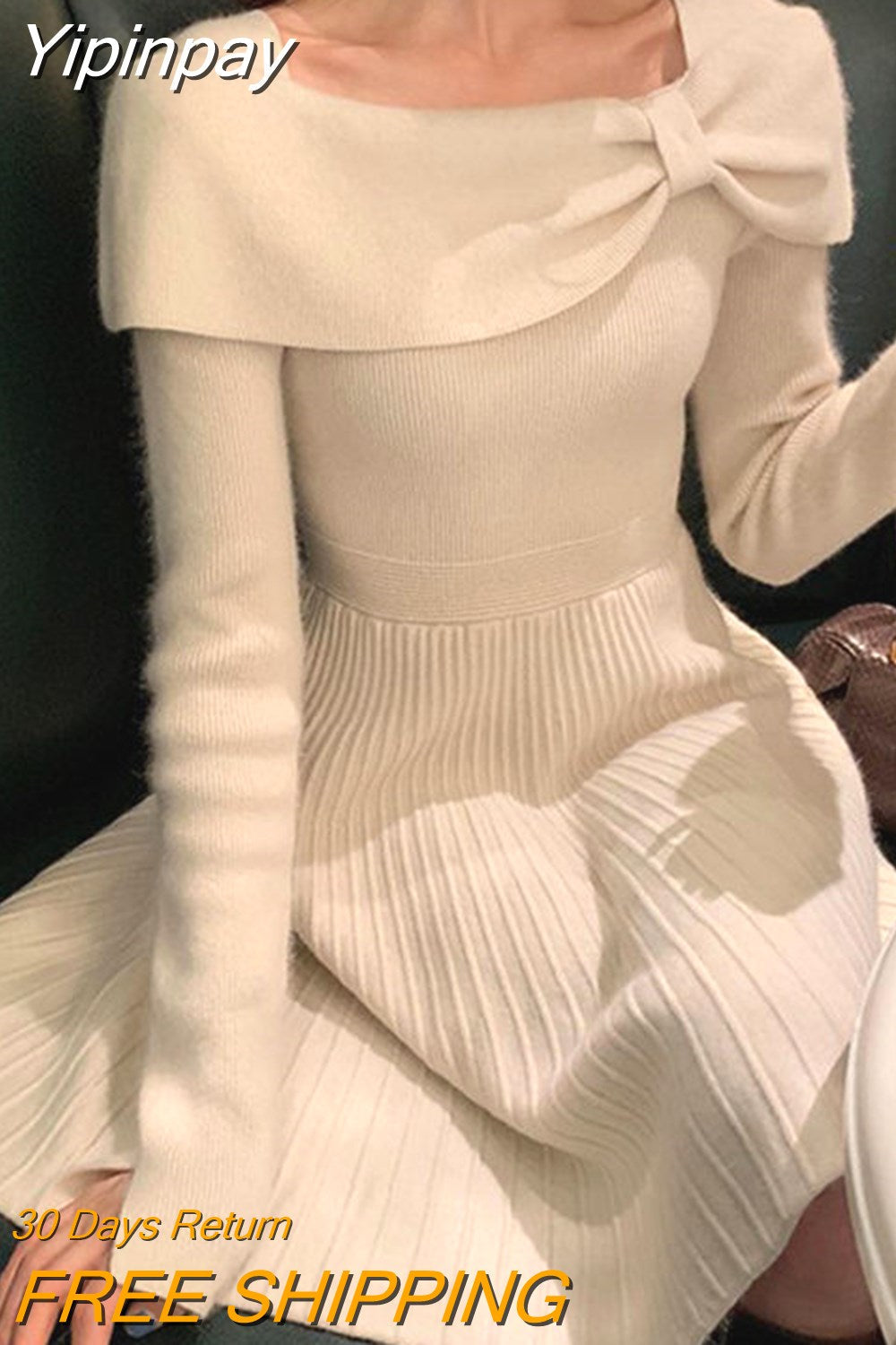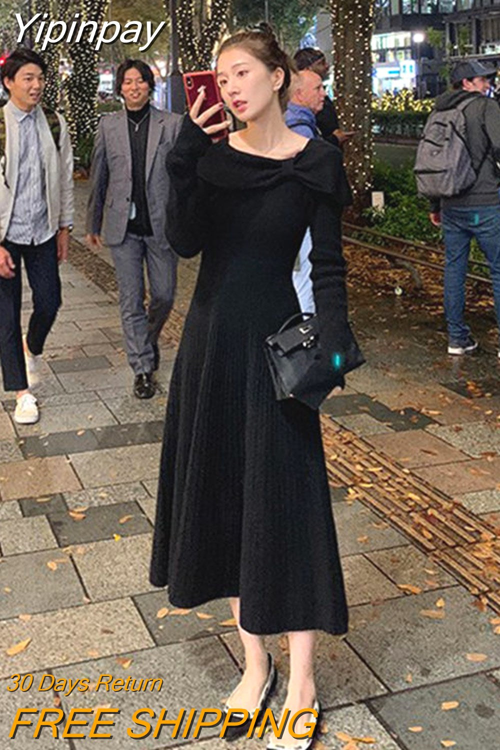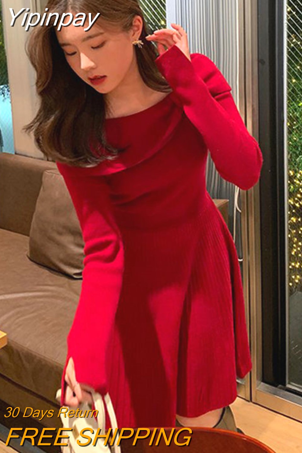 Yipinpay One Piece Dress Korean 2023 Autumn Long Sleeve Slim Sweater Dress Women Casual Elegant Office Knitted Dress Female Winter