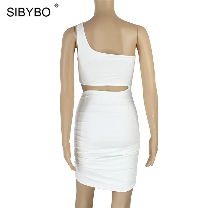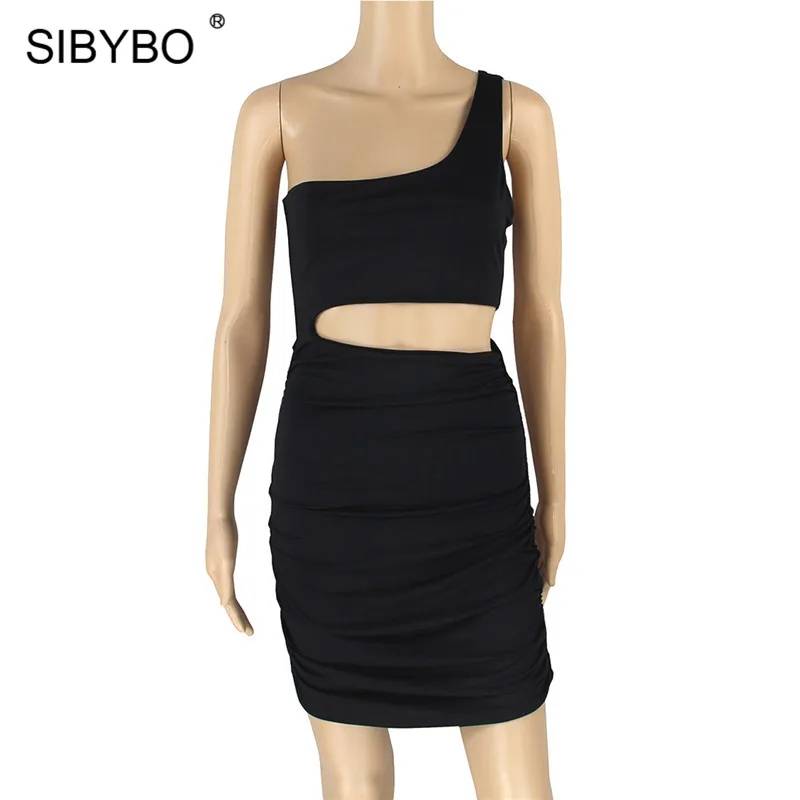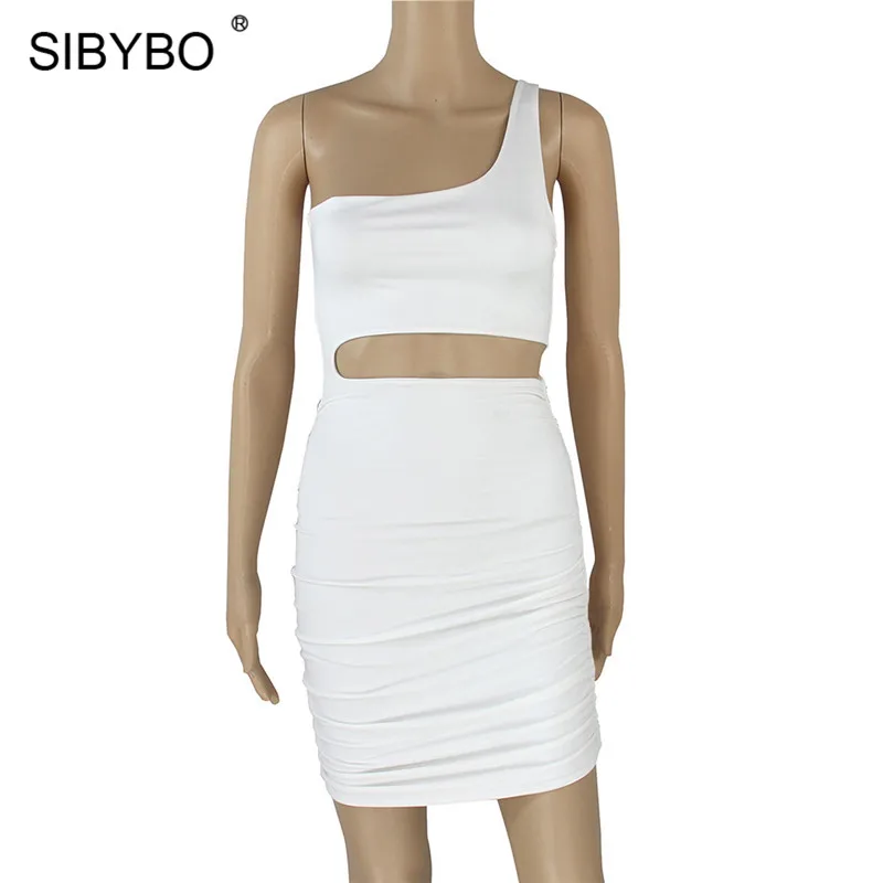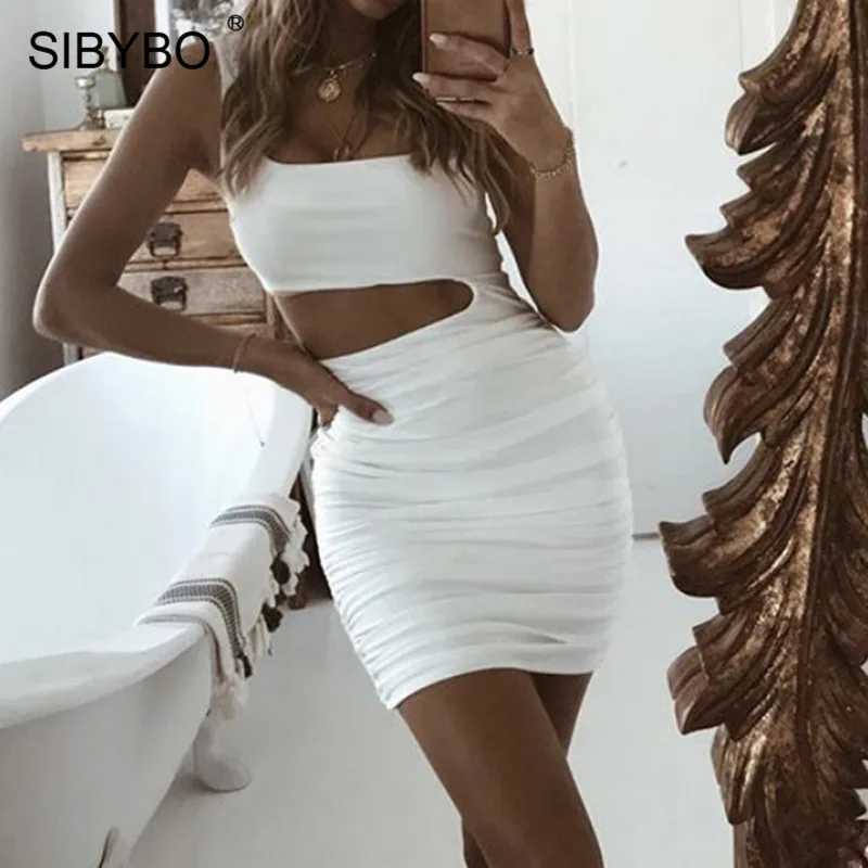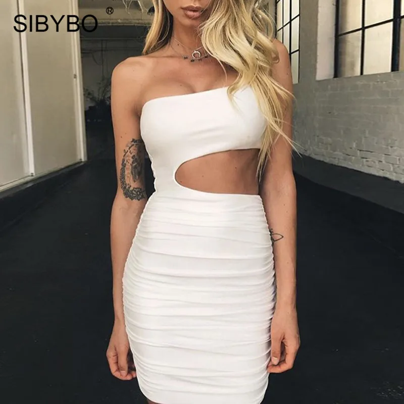 Yipinpay One Shoulder Hollow Out Summer Dress Casual Strapless Backless Sleeveless Mini Bodycon Dress Sheath Sexy Women Vestidos