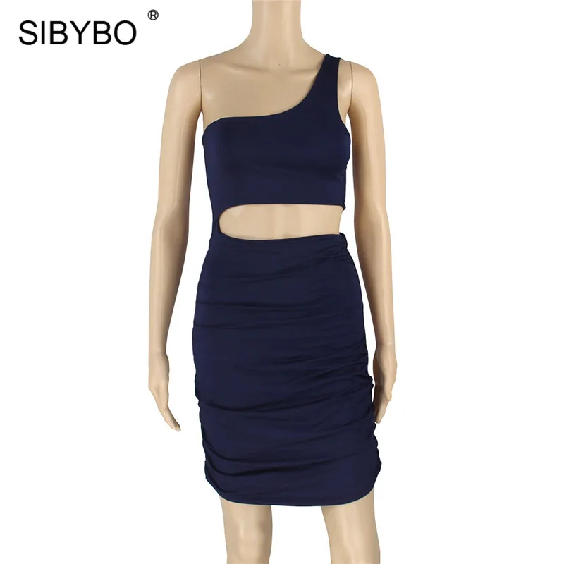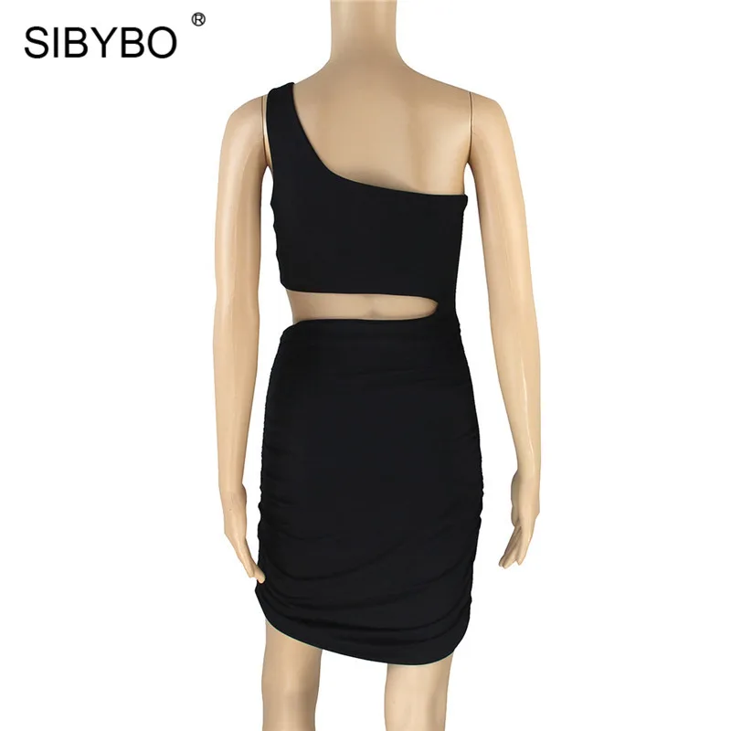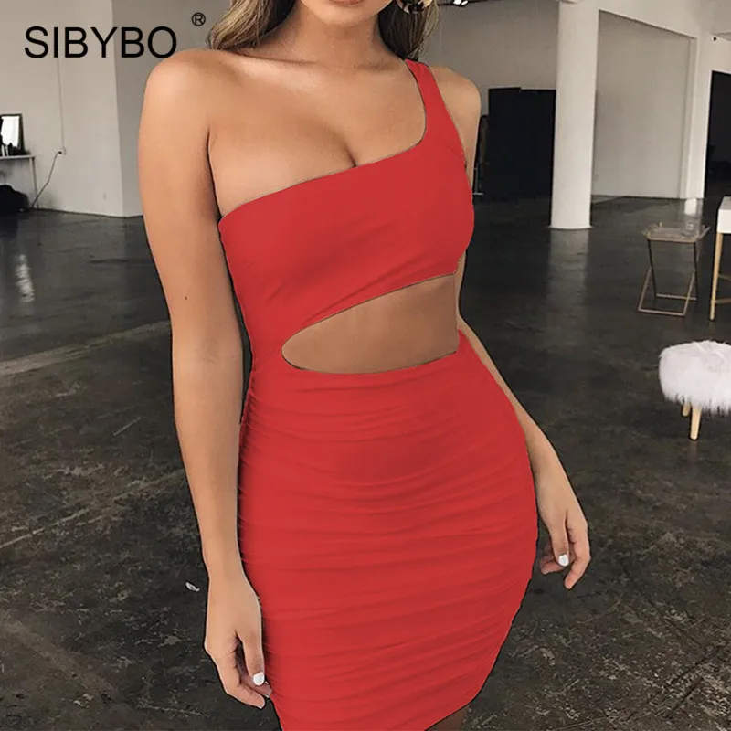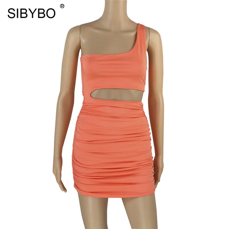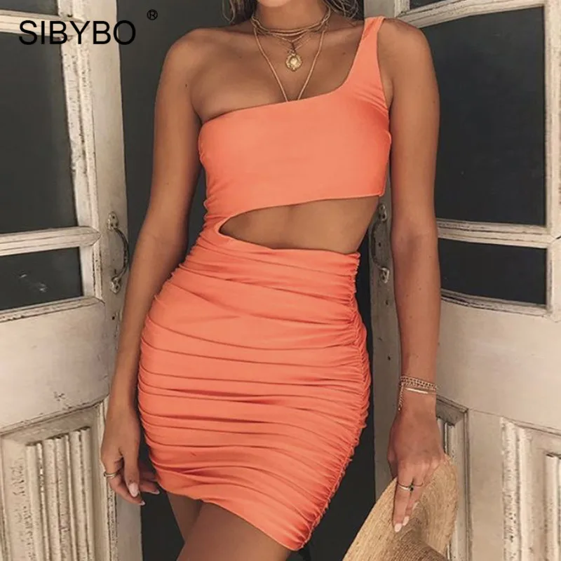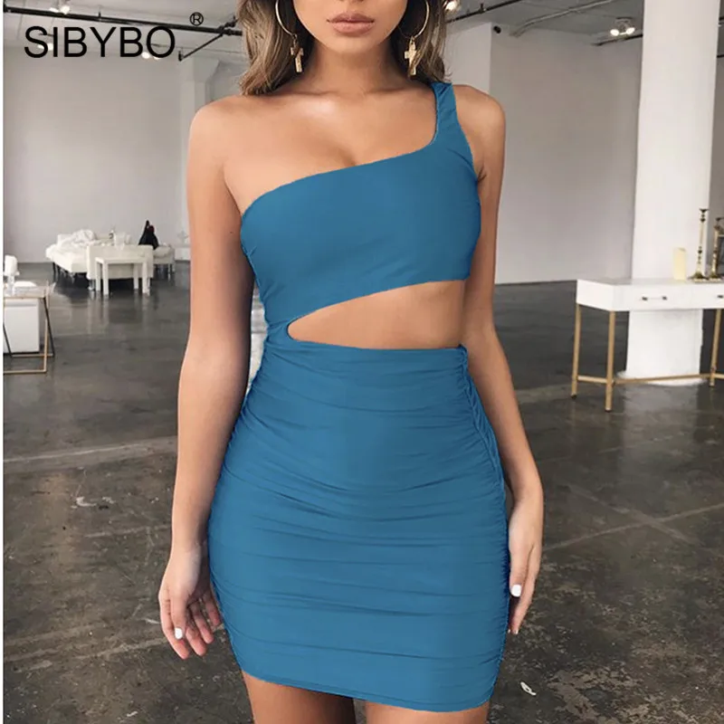 Yipinpay One Shoulder Hollow Out Summer Dress Casual Strapless Backless Sleeveless Mini Bodycon Dress Sheath Sexy Women Vestidos