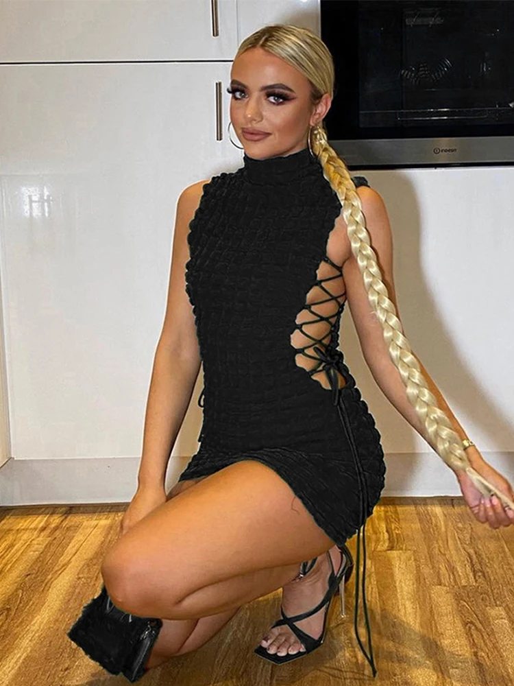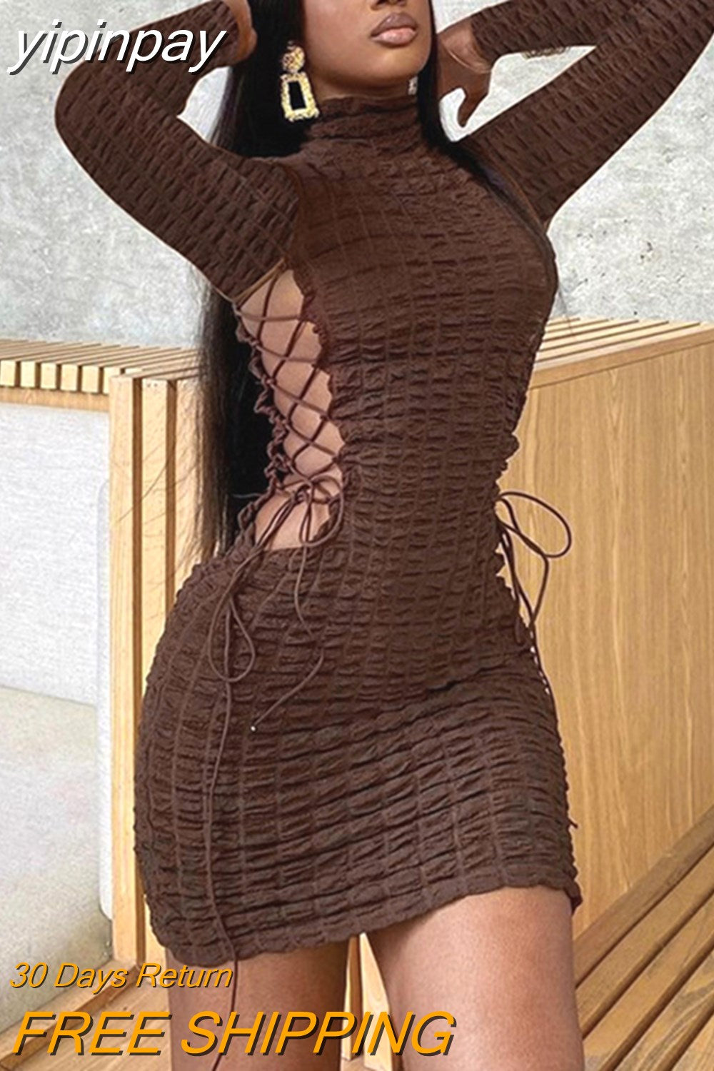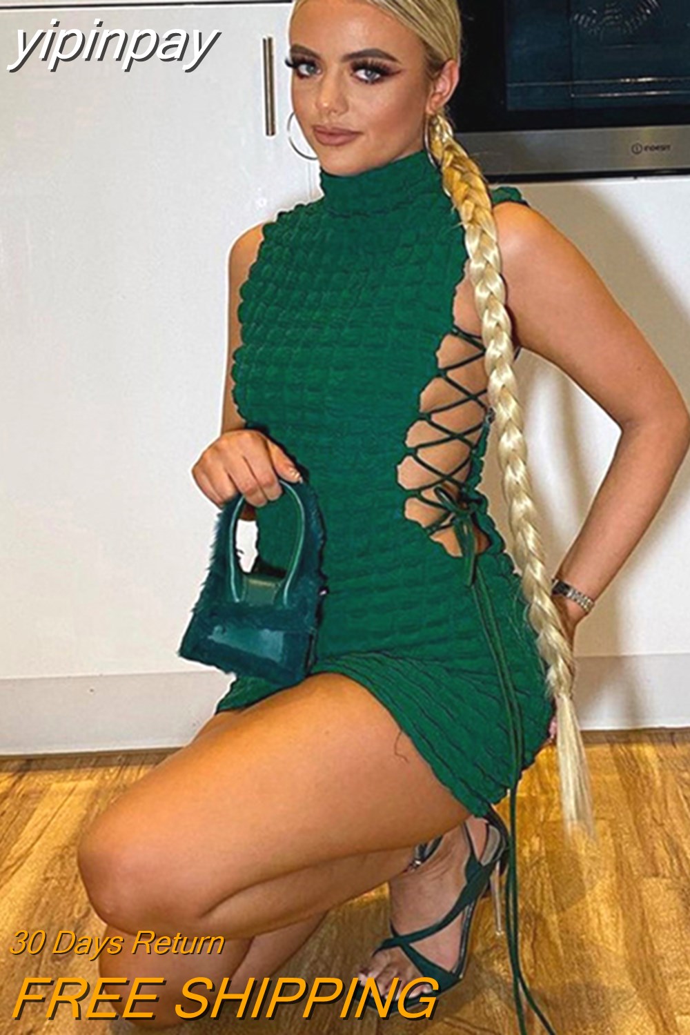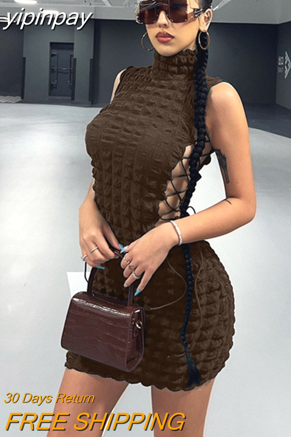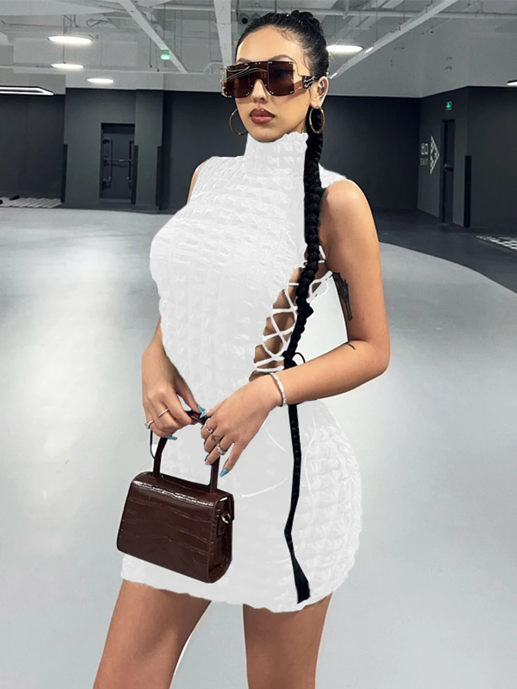yipinpay Out Skims Dress Women Y2K Mini Bodycon Bandage White Dress Spring Summer Stunning Stacked Streetwear Turtleneck Black Dress