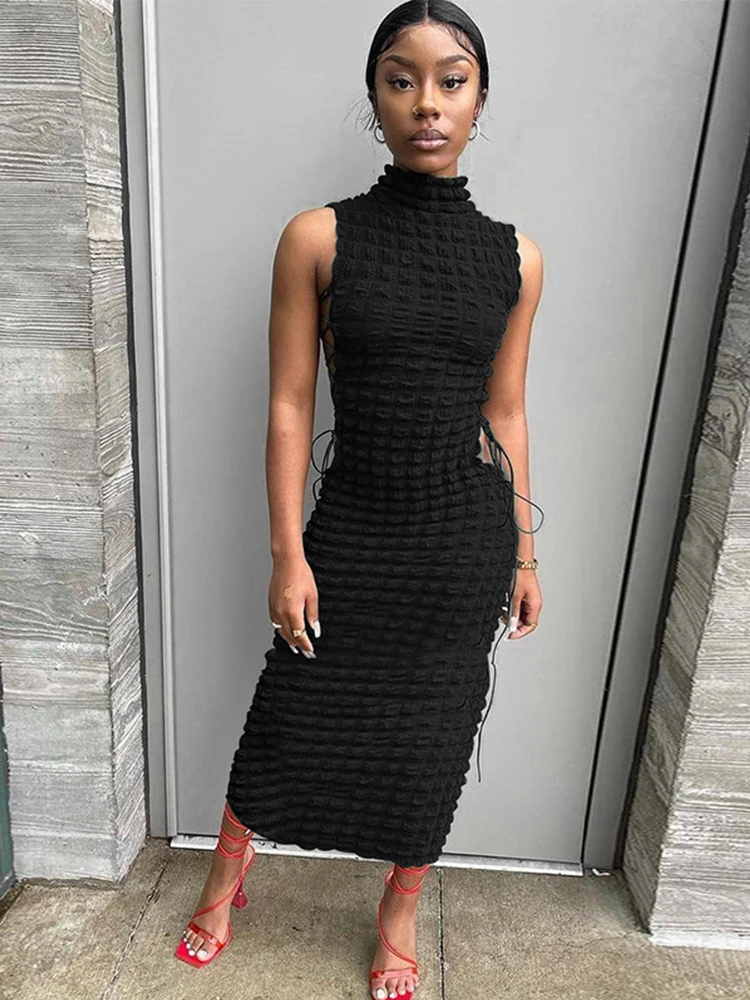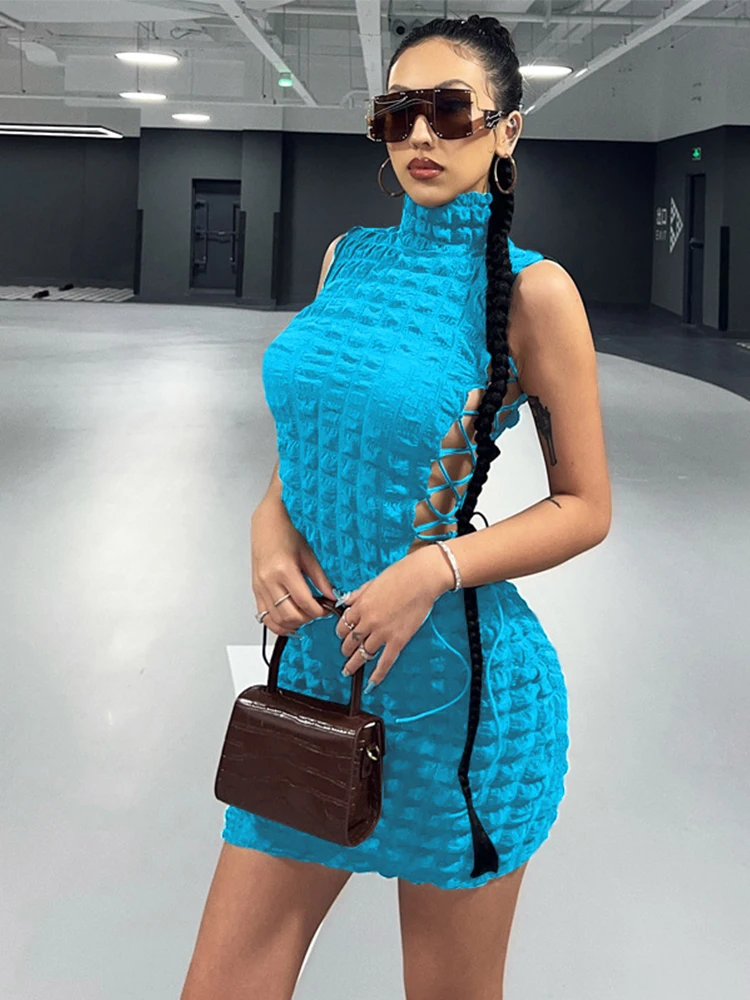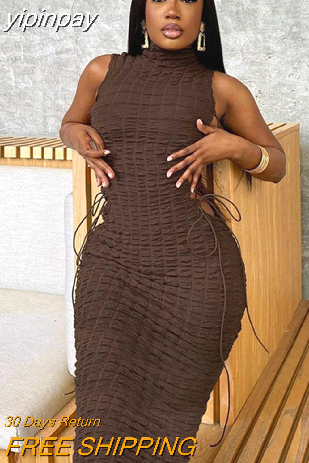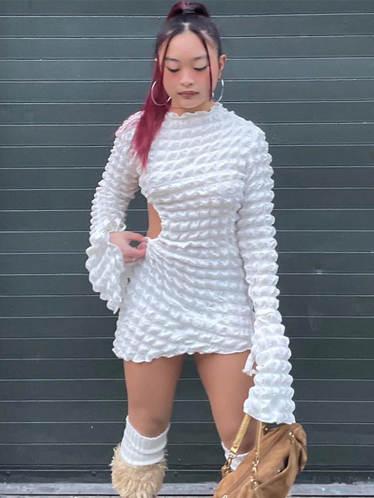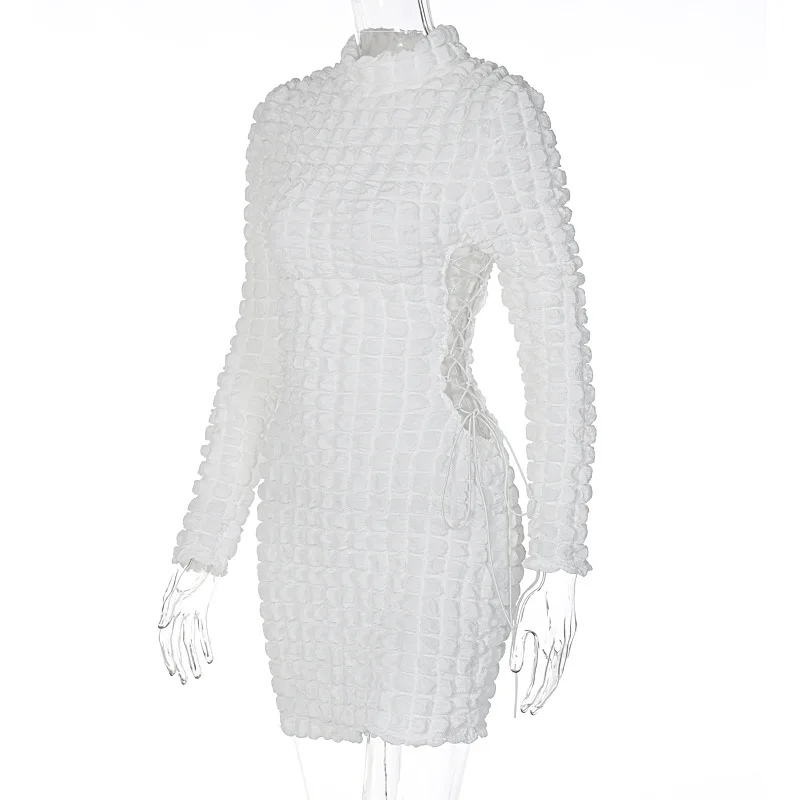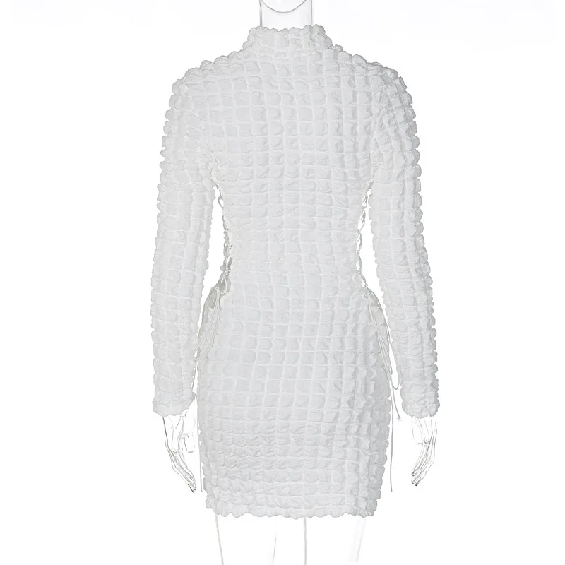 yipinpay Out Skims Dress Women Y2K Mini Bodycon Bandage White Dress Spring Summer Stunning Stacked Streetwear Turtleneck Black Dress