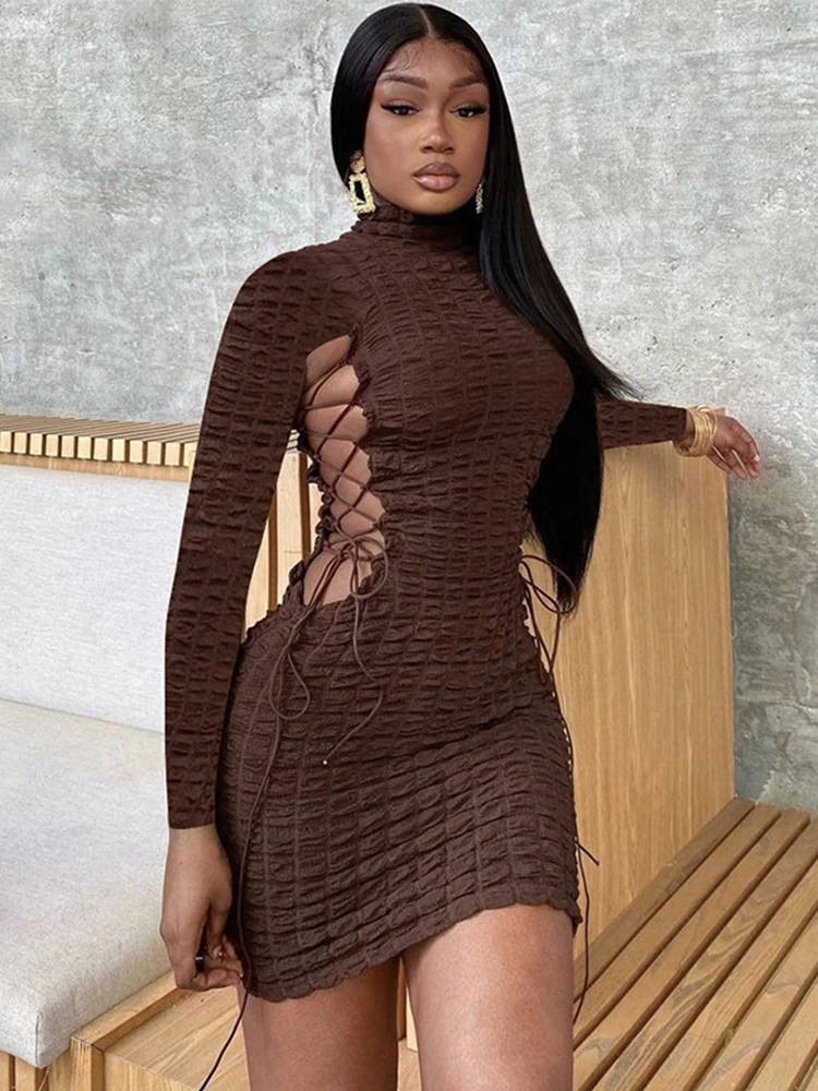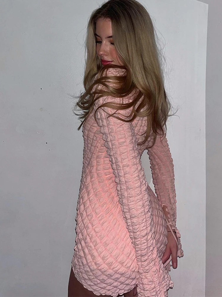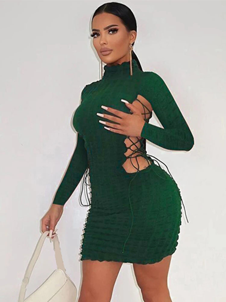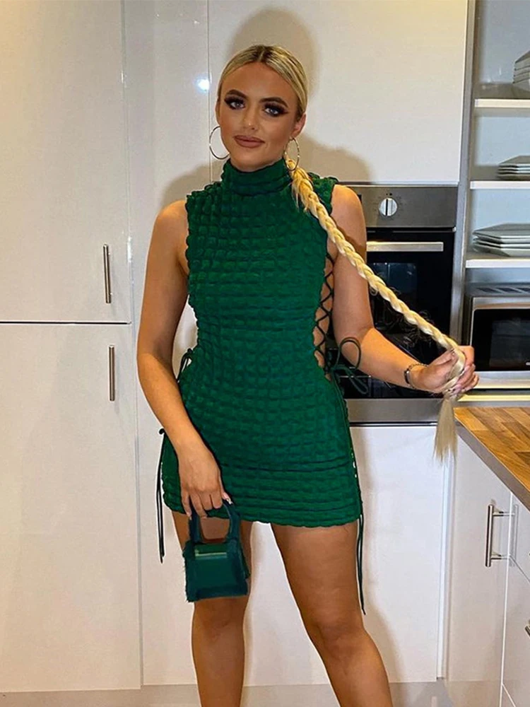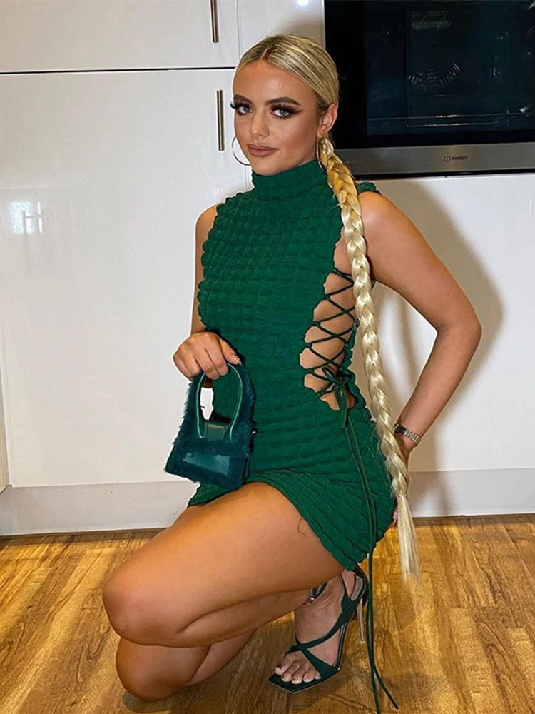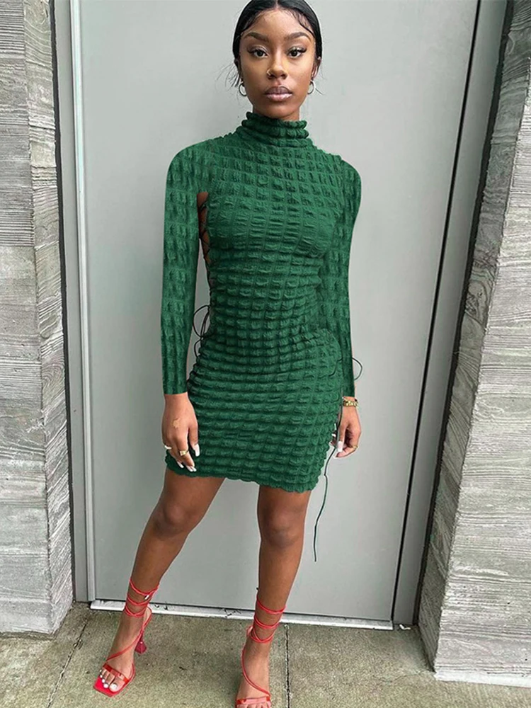 yipinpay Out Skims Dress Women Y2K Mini Bodycon Bandage White Dress Spring Summer Stunning Stacked Streetwear Turtleneck Black Dress