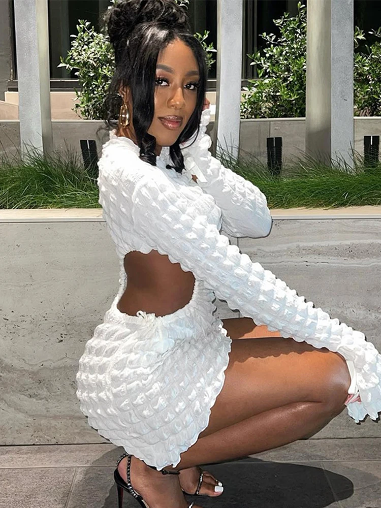 Bodycon Bandage White Dress: Stacked Mini Dress