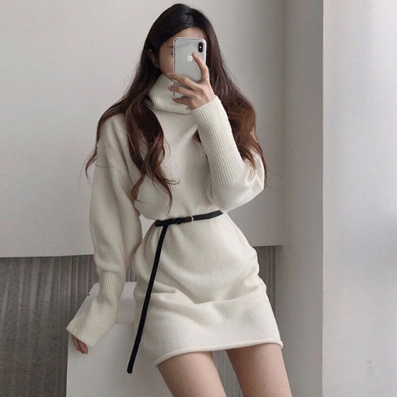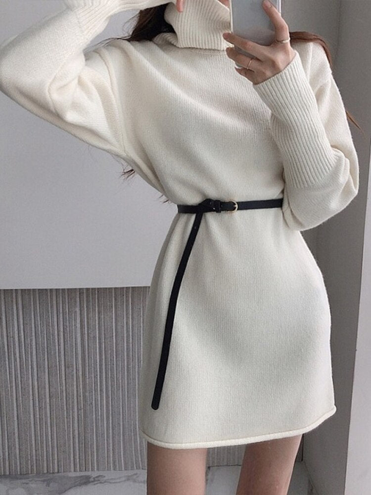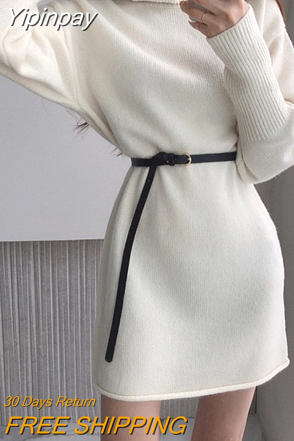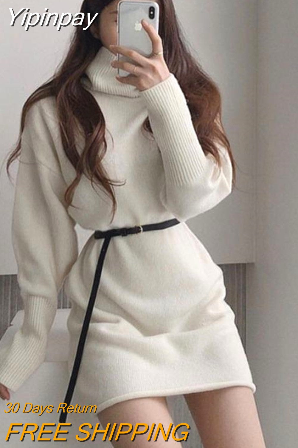 Yipinpay Oversized Sweater Dress Female Full Sleeve Casual Pullover Turtleneck Pullover Knitted Mini Dress Women Autumn Winter