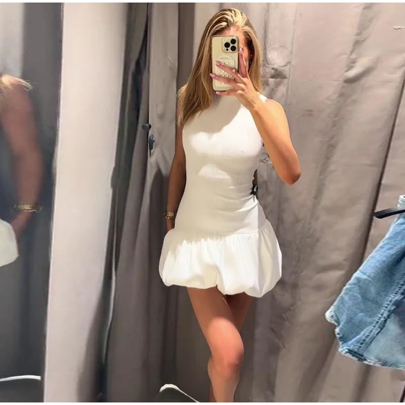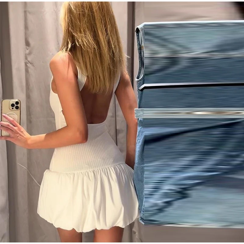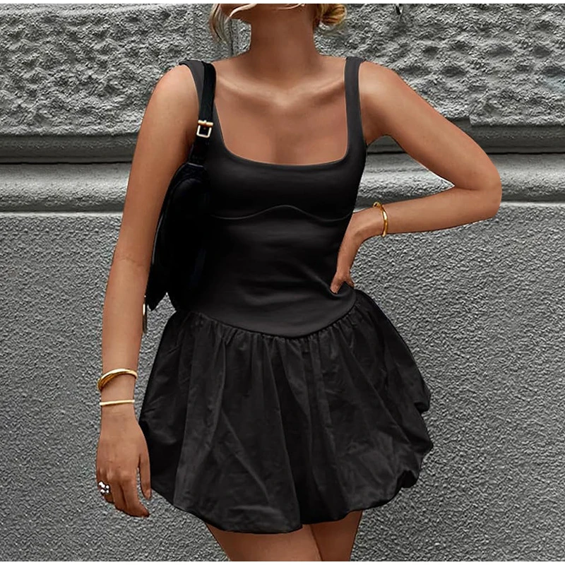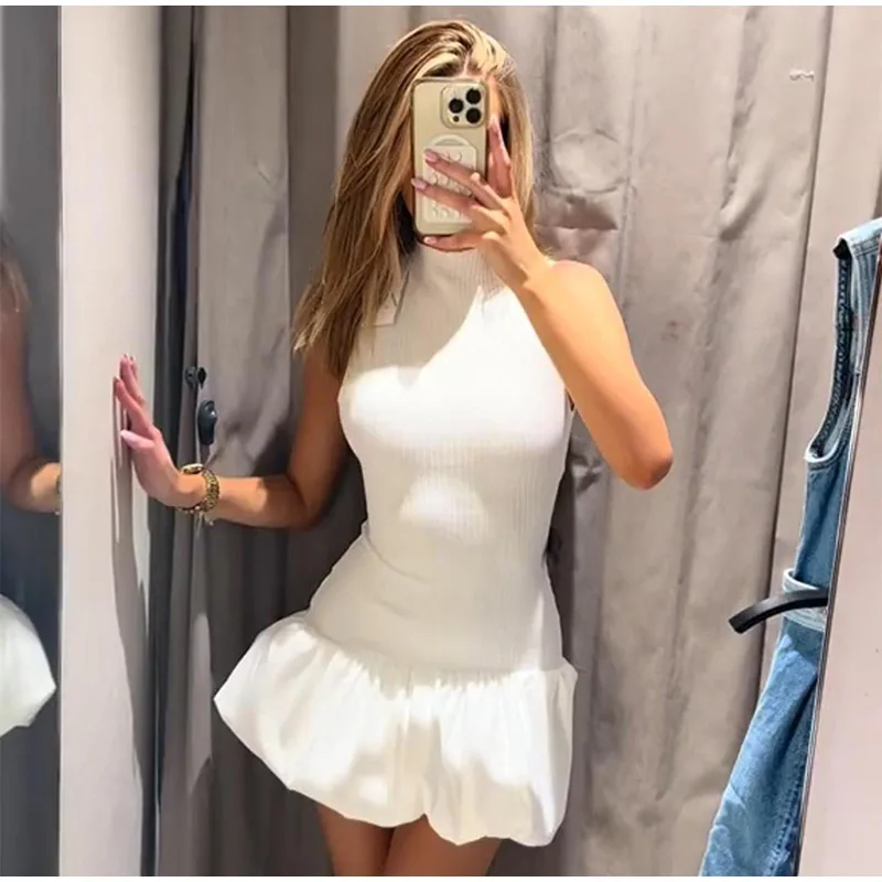 Yipinpay Patchwork Fluffy Mini Dress For Women 2024 Summer Beach Sleeveless Tank Short Dress Lady Chic Evening Party Vestidos