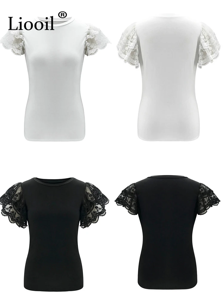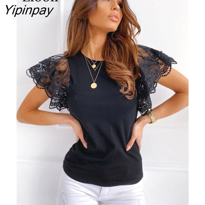 Yipinpay Patchwork Lace T Shirt Skinny Top For Women 2023 Summer Short Sleeve O Neck Black White Tees Streetwear Sexy Bodycon Tops