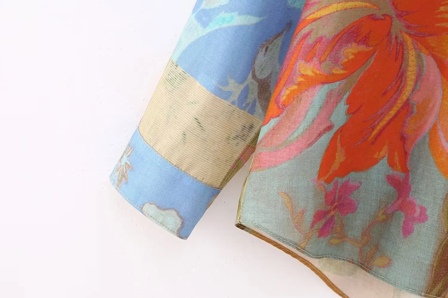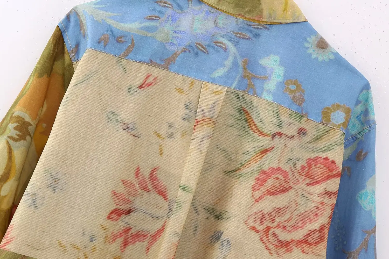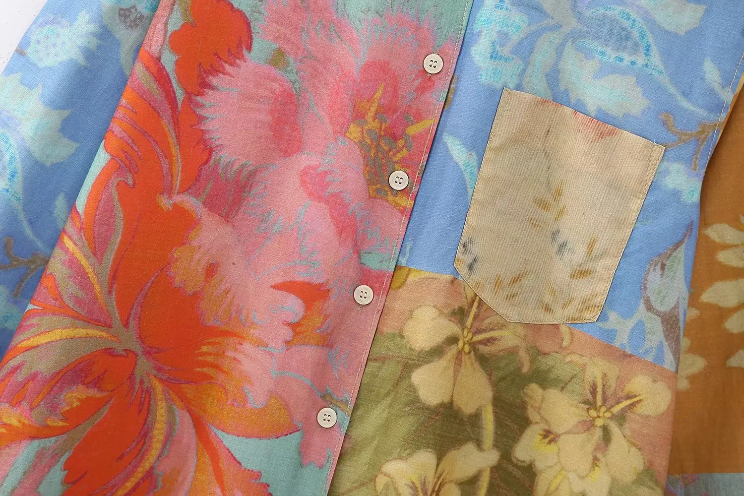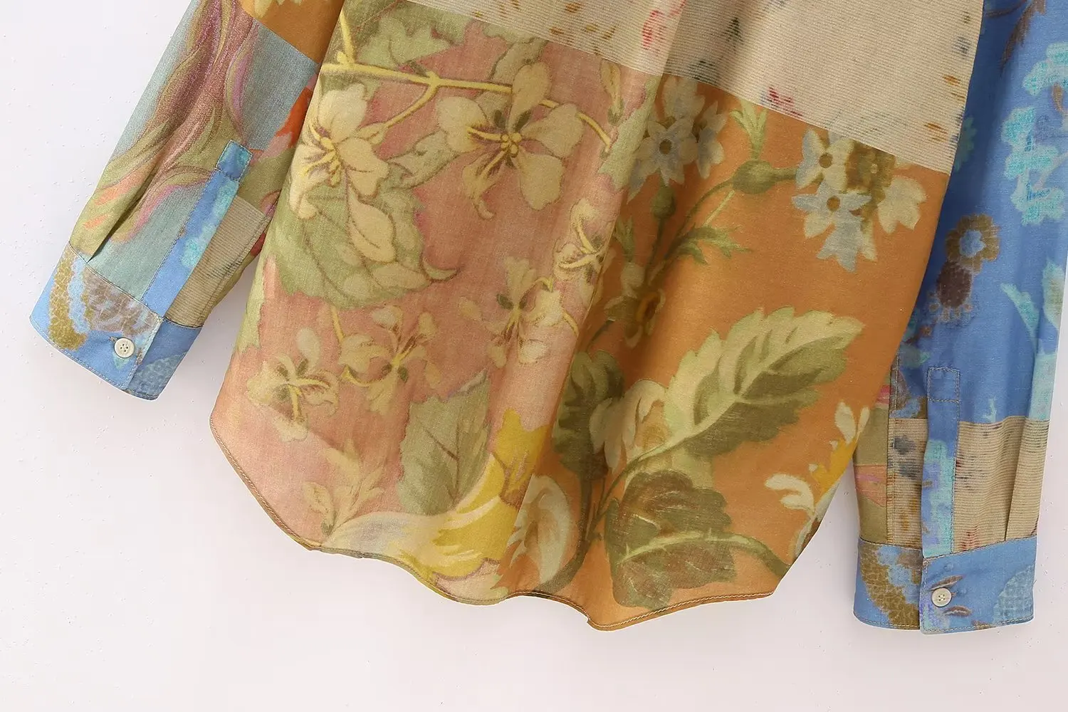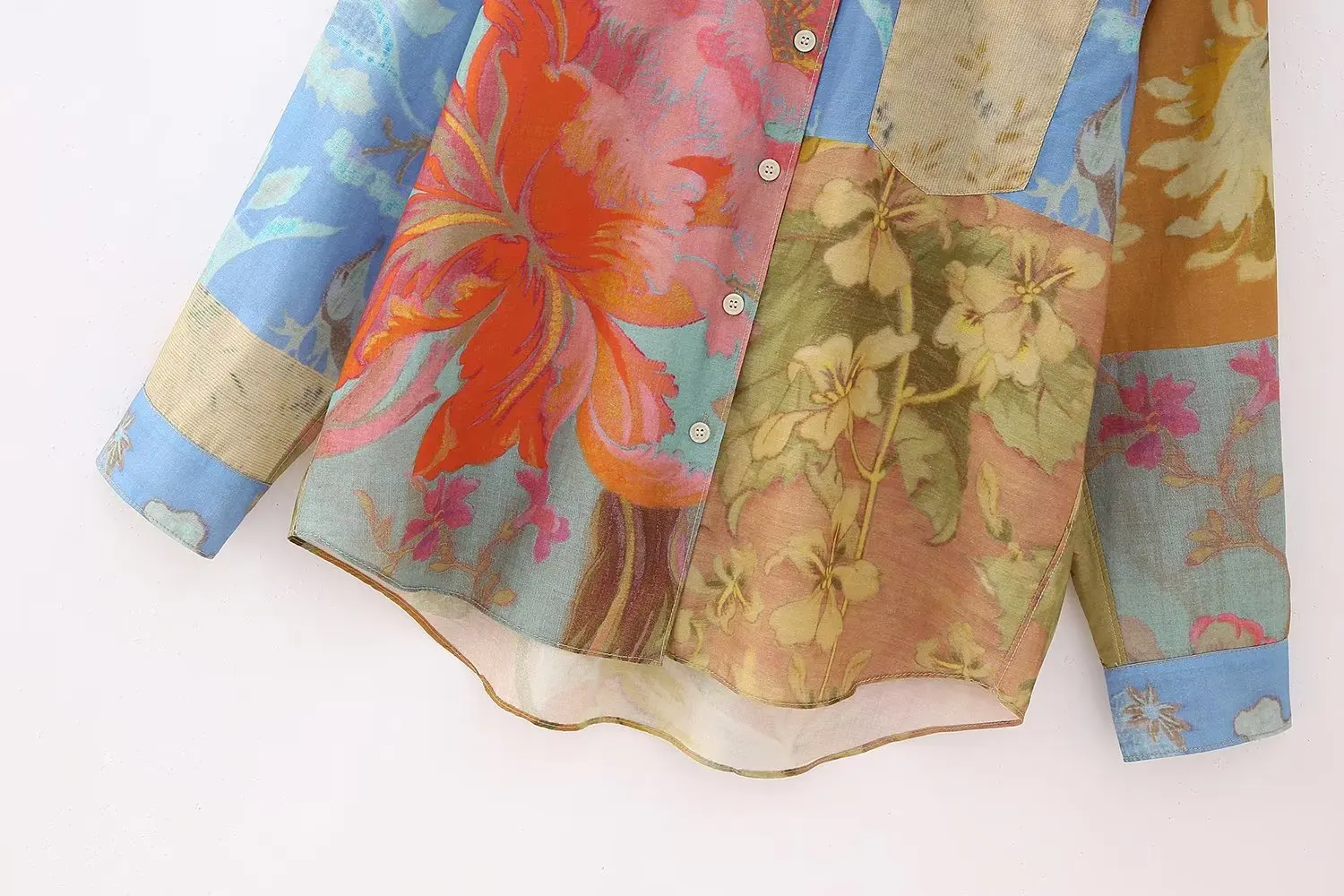 Yipinpay Patchwork Print Shirts And Blouses For Women Vintage Button Up Shirt Women Asymmetric Long Sleeve Top Female Summer Tops